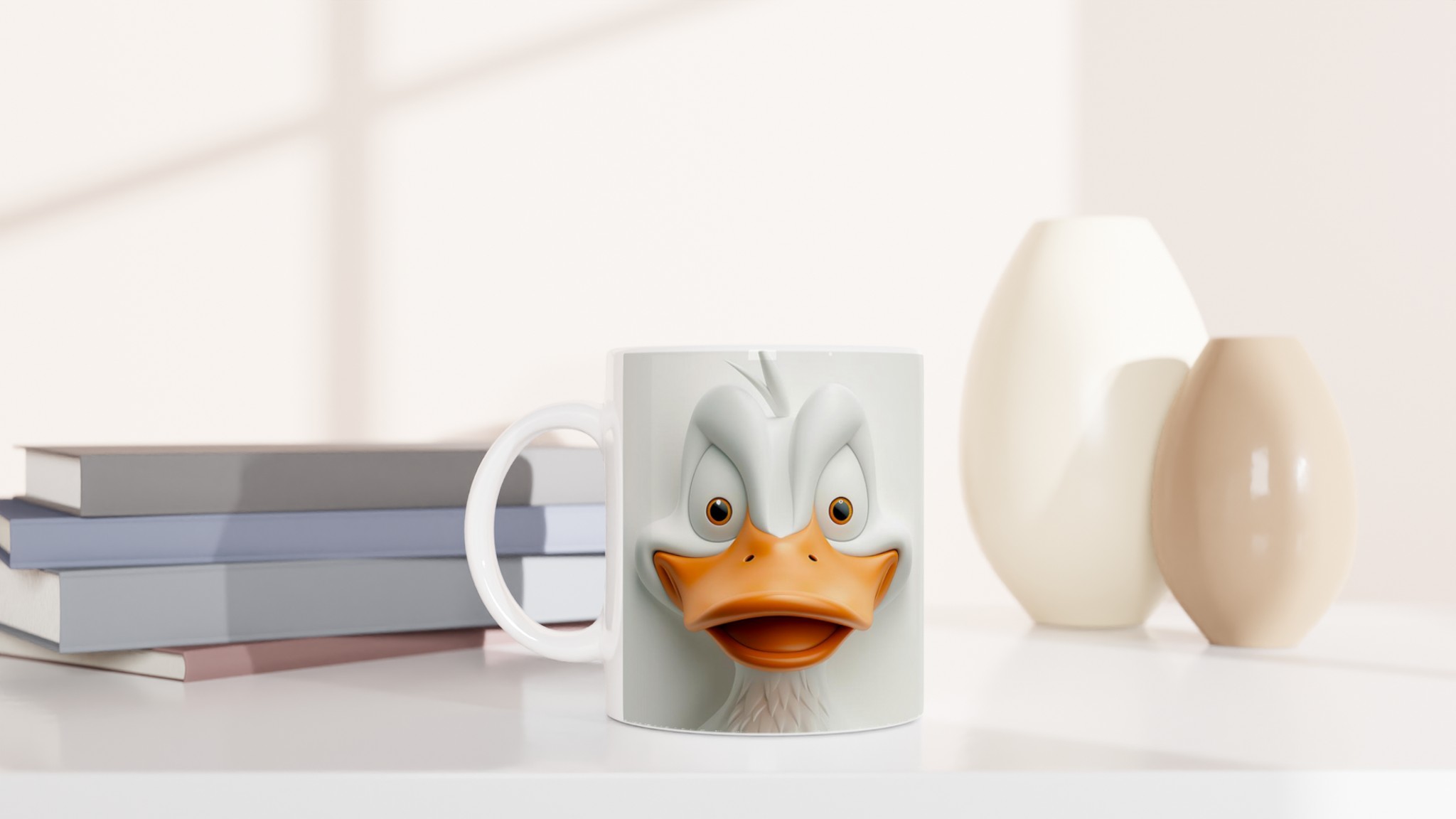 Lyft varje kaffestund med vår premium keramikmugg – stilren, hållbar och skapad för att låta ditt motiv glänsa. Denna unika mugg med sin lekfulla anka-design är perfekt för dig som älskar en touch av humor och karaktär i din vardag. Med sina uttrycksfulla ögon och glada uppsyn, är denna mugg garanterad att locka fram ett leende varje gång du tar en klunk.