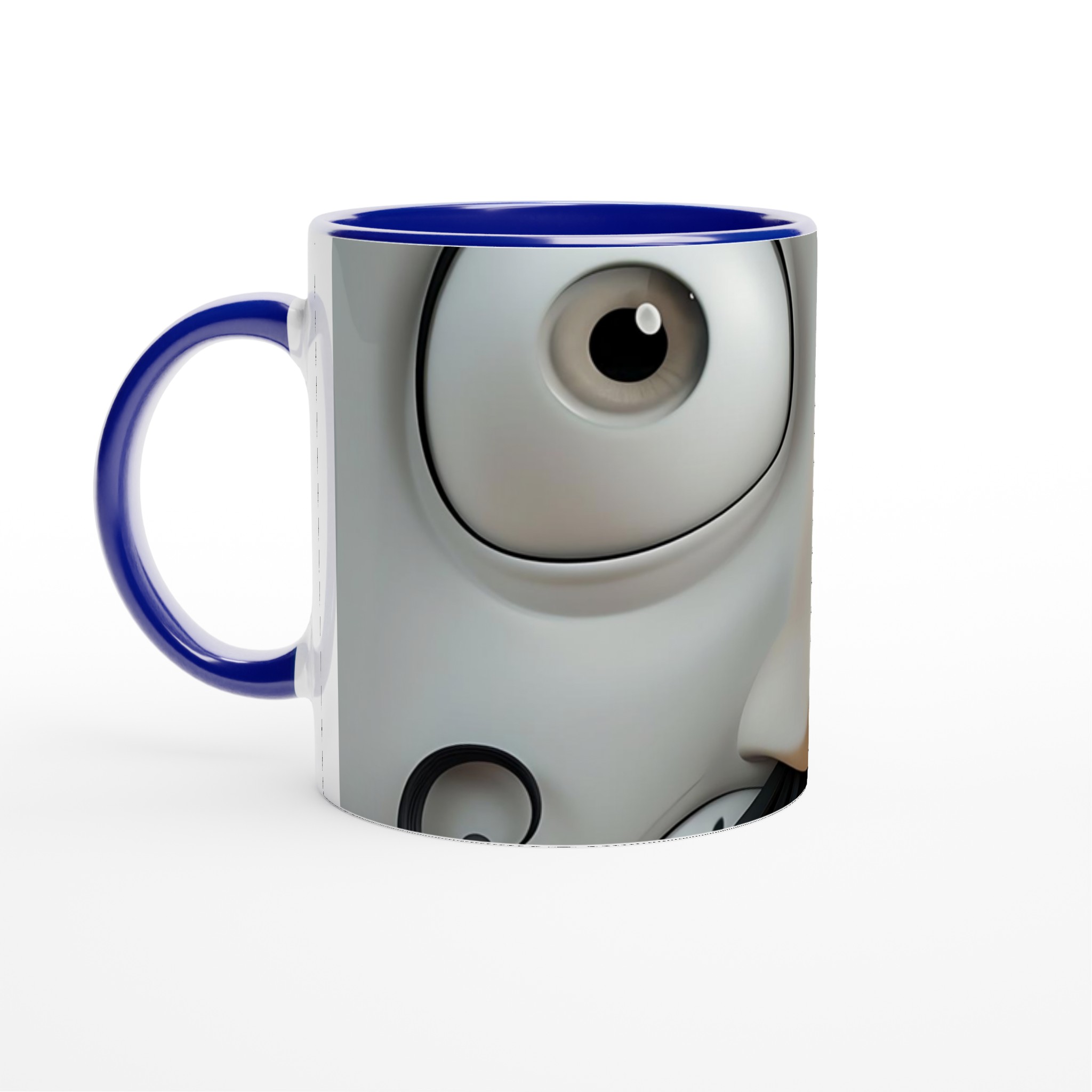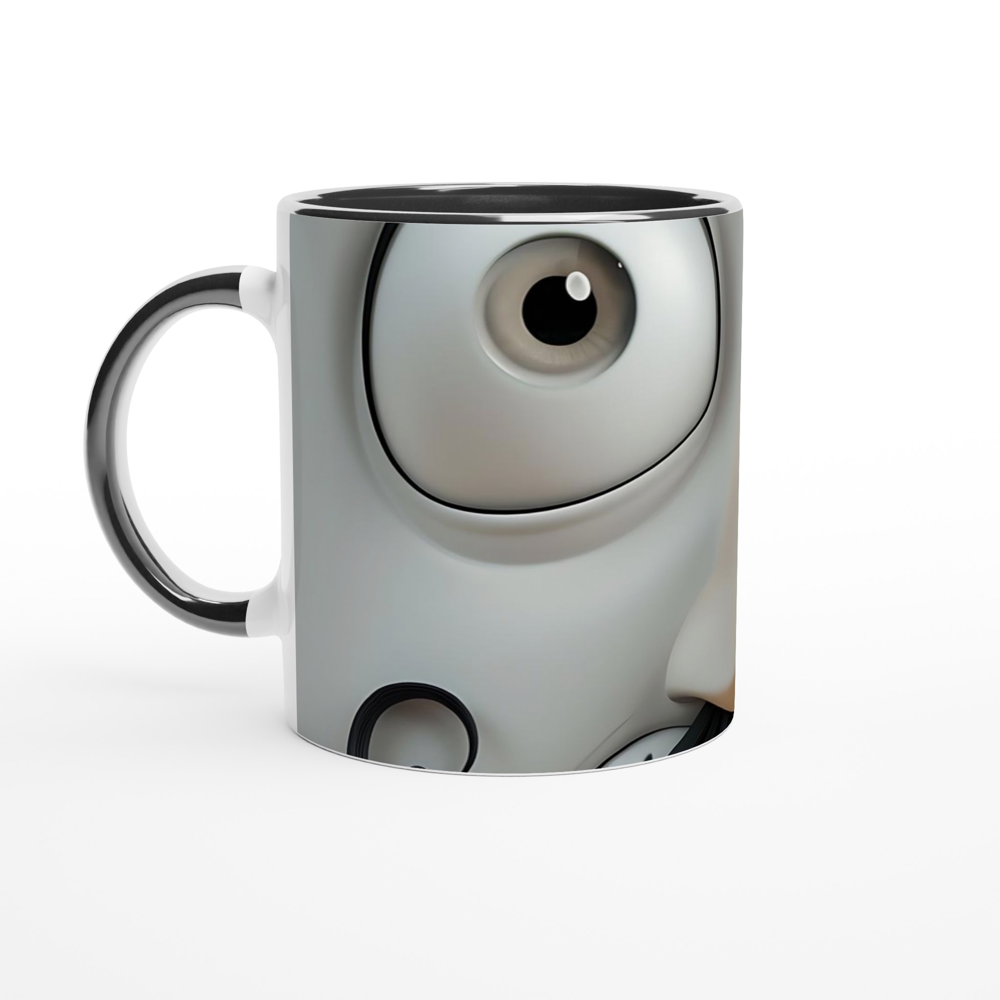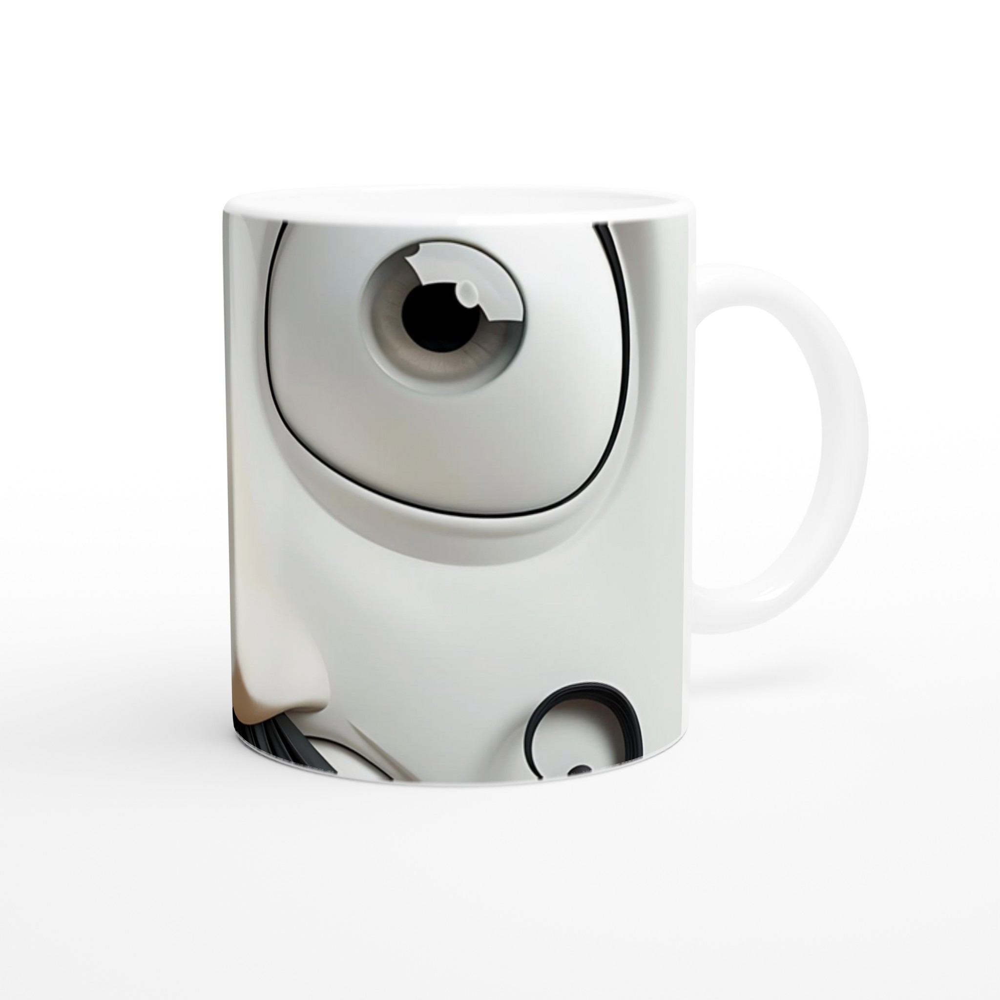 Denna lekfulla mugg fångar omedelbart blicken med sitt humoristiska herransikte, komplett med stora ögonbryn, förvånade ögon och en magnifik mustasch. Den blanka vita ytan ger ett skarpt och levande tryck som verkligen sticker ut, oavsett om det är en personlig design, ett roligt citat eller en present till någon du tycker om. Väck ett leende till liv vid varje kaffepaus, perfekt för den som uppskattar en touch av charm och karaktär i sin vardag.