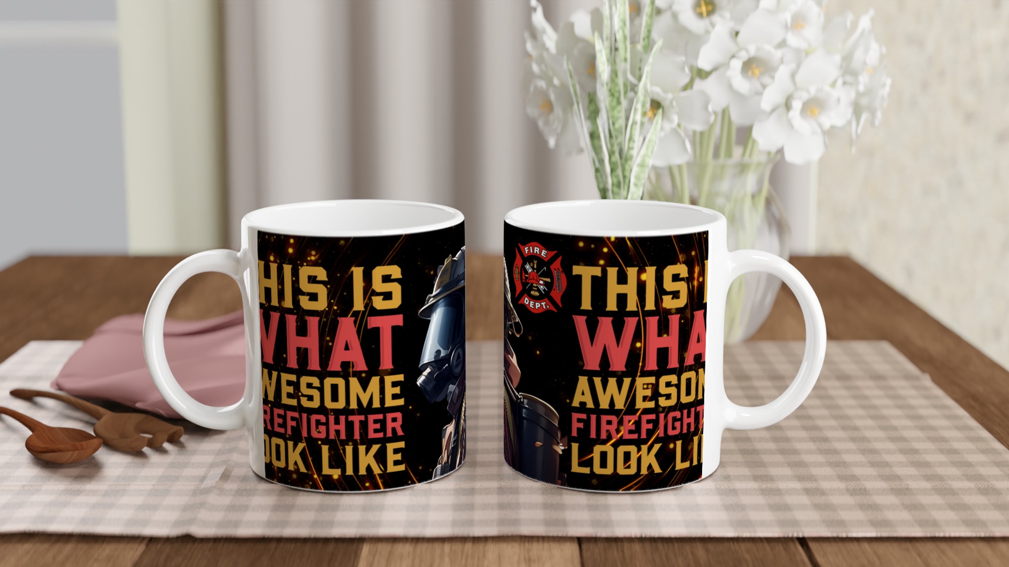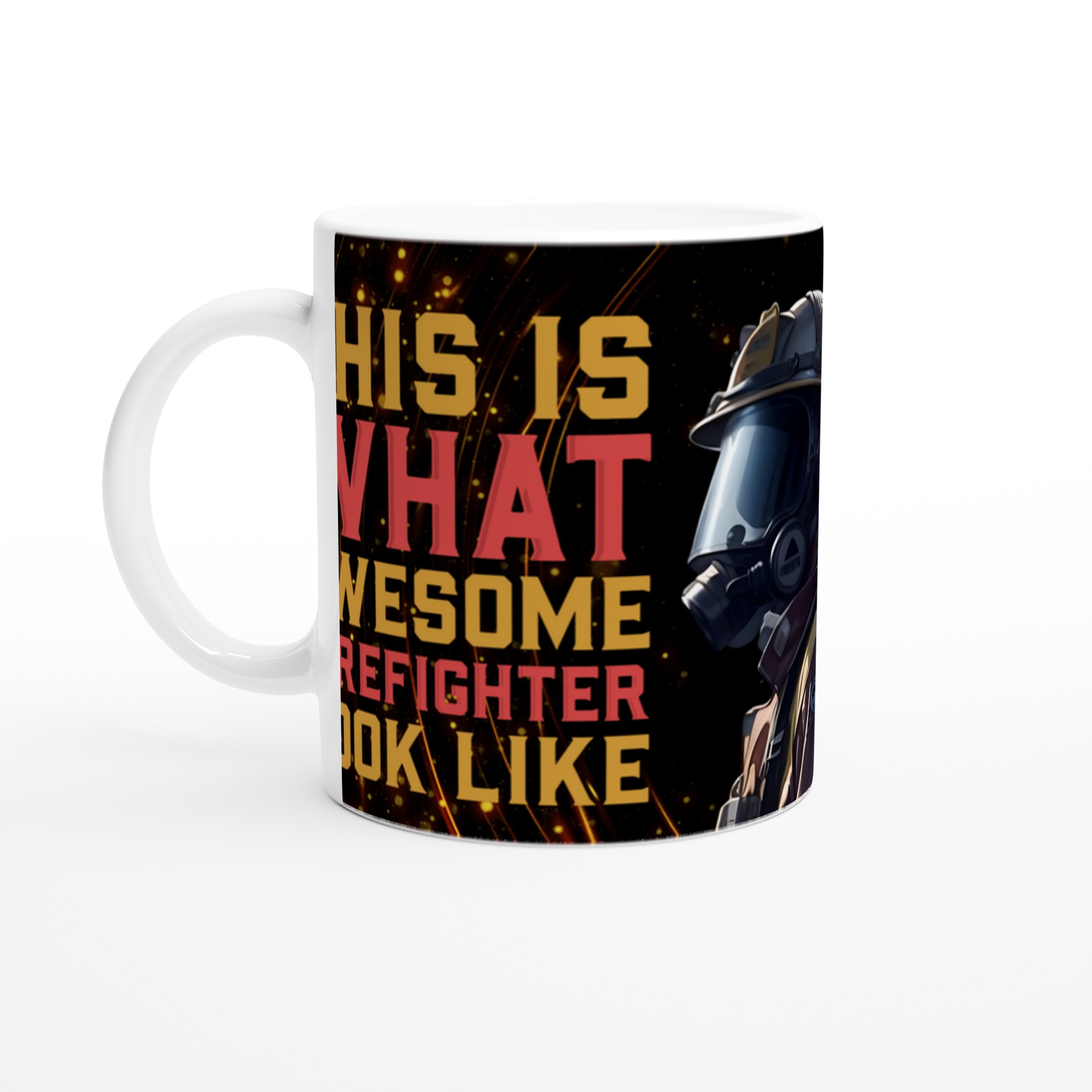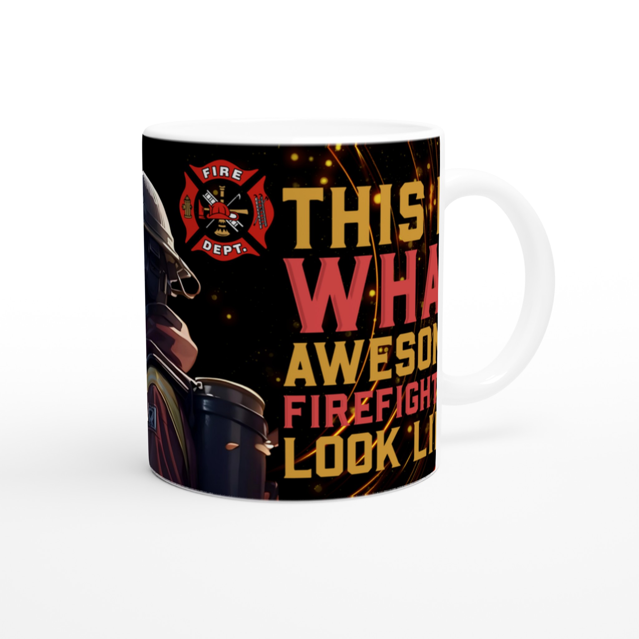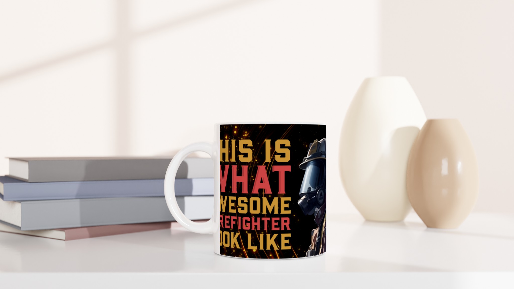 Visa din uppskattning för hjältarna i vardagen med den här kraftfulla ”This Is What Awesome Firefighter Look Like” keramiska muggen. Perfekt för morgonkaffet, kvällens varma choklad eller när du bara vill njuta av en kopp te. Den blanka ytan framhäver trycket med klara och levande färger som hyllar modet och styrkan hos brandmän, och håller sig fina även efter många turer i mikron och diskmaskinen.