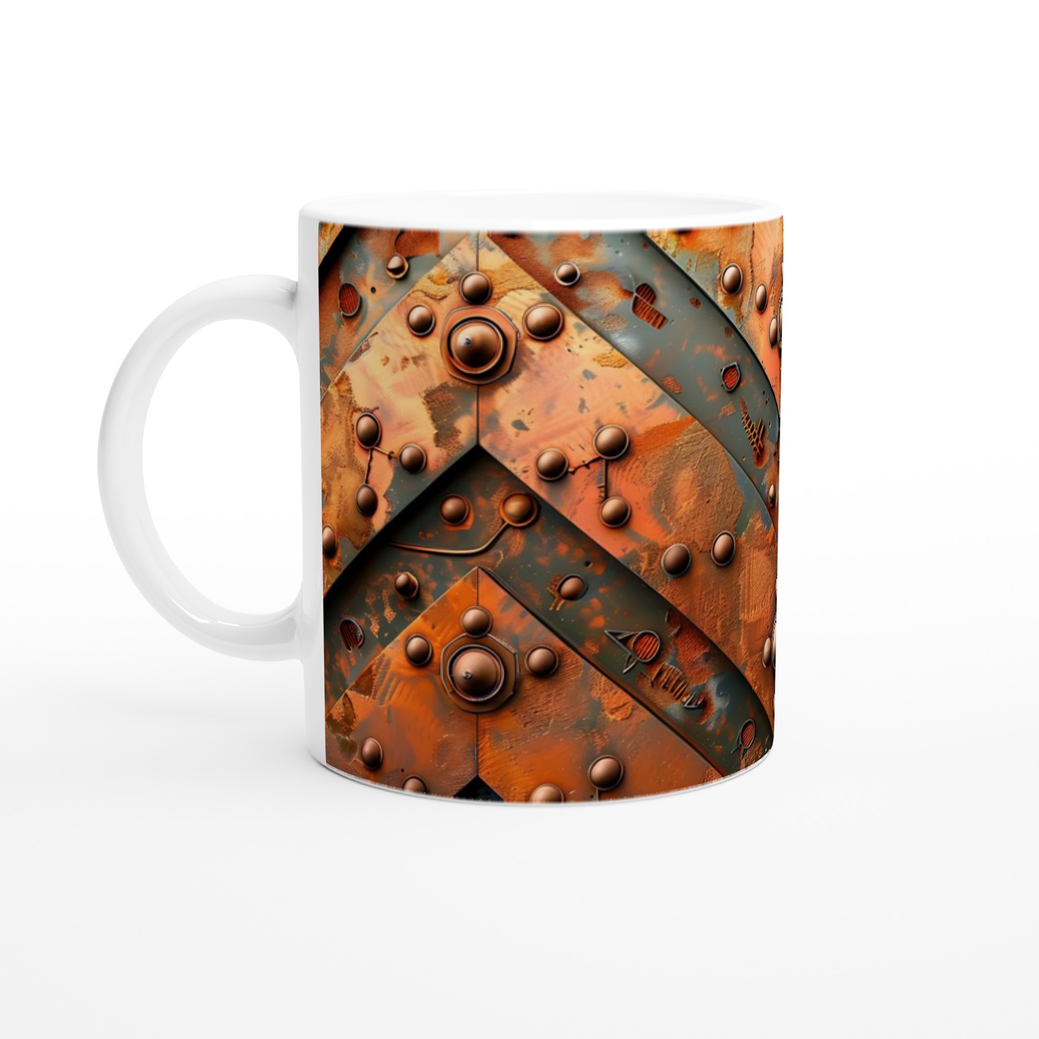 Inspirerad av robust industriell estetik med en rik palett av rostig koppar och mörkgrått stål, ger denna mugg en unik och kraftfull touch till din dryckesupplevelse. Den blanka vita ytan ger ett skarpt och levande tryck som verkligen sticker ut, oavsett om det är en personlig design, ett roligt citat eller en present till någon du tycker om.
