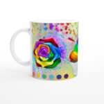 Den här stilrena keramiska muggen blir snabbt en vardagsfavorit. Perfekt för morgonkaffet, kvällens varma choklad eller när du bara vill njuta av en kopp te. Den blanka vita ytan gör att trycken framhävs med klara och levande färger, som håller sig fina även efter många turer i mikron och diskmaskinen.