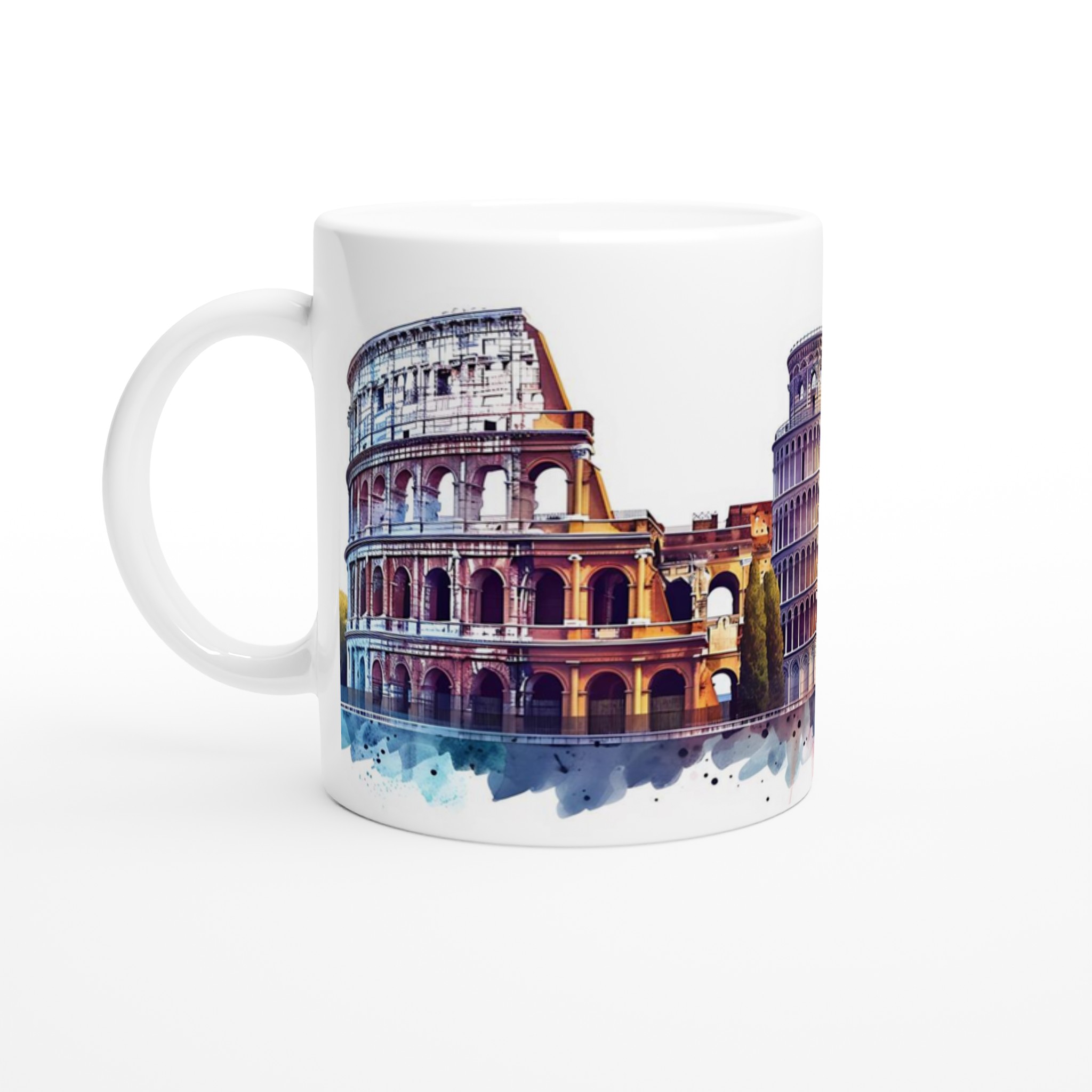 Italiensk Akvarell: Colosseum & Pisa – Unik 11oz Keramisk Mugg i ditt val av 7 färger