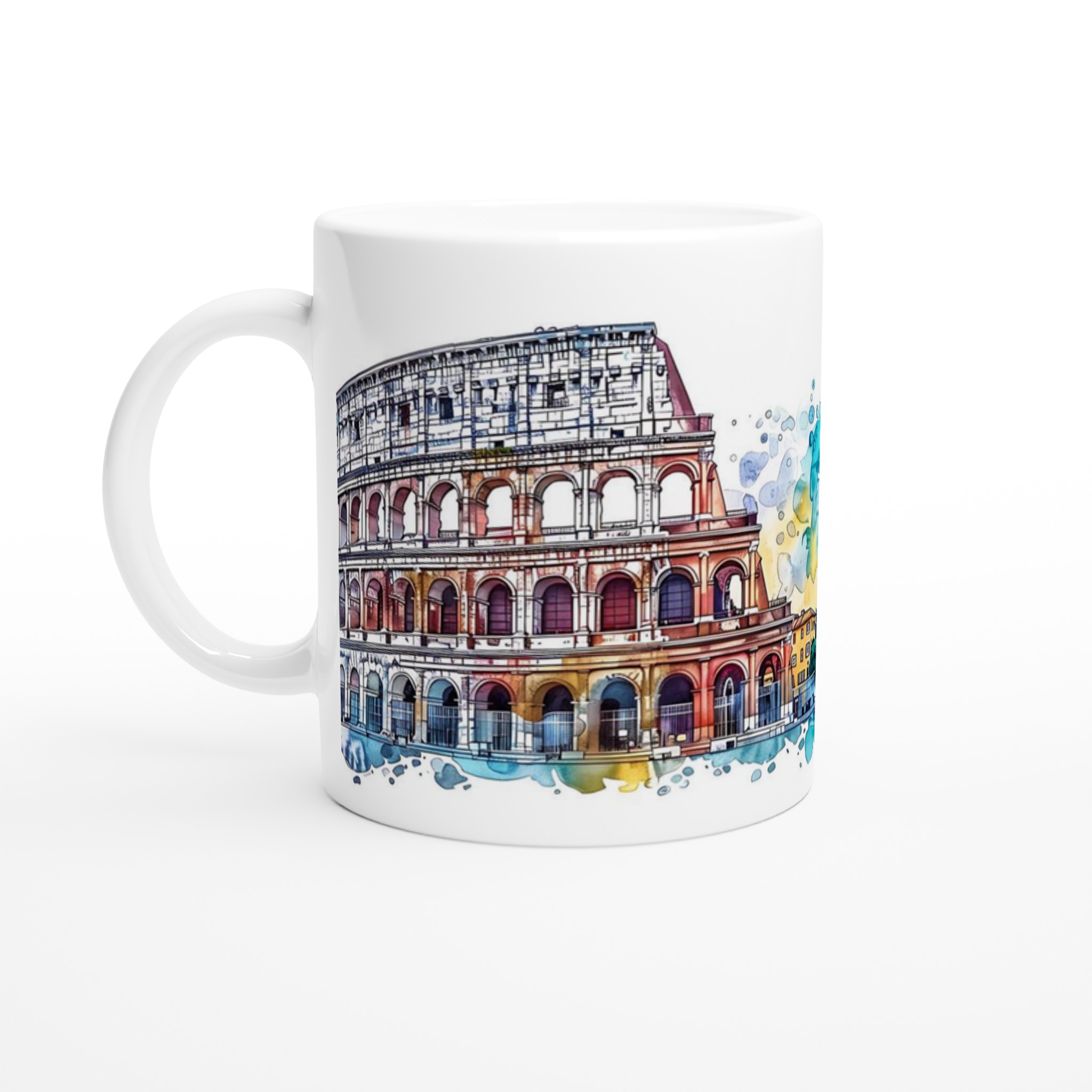 Vår ’Italiensk Akvarell Dröm’ mugg bjuder in till en konstnärlig resa med ikoniska italienska landmärken målade i en levande akvarellstil. Den färgstarka designen framhäver Colosseum, lutande tornet i Pisa och andra historiska pärlor med mjuka penseldrag och en palett av lugnande blått, varmt gult och jordnära rött. Den blanka vita ytan ger ett skarpt och levande tryck som verkligen sticker ut, oavsett om det är en personlig design, ett roligt citat eller en present till någon du tycker om.
