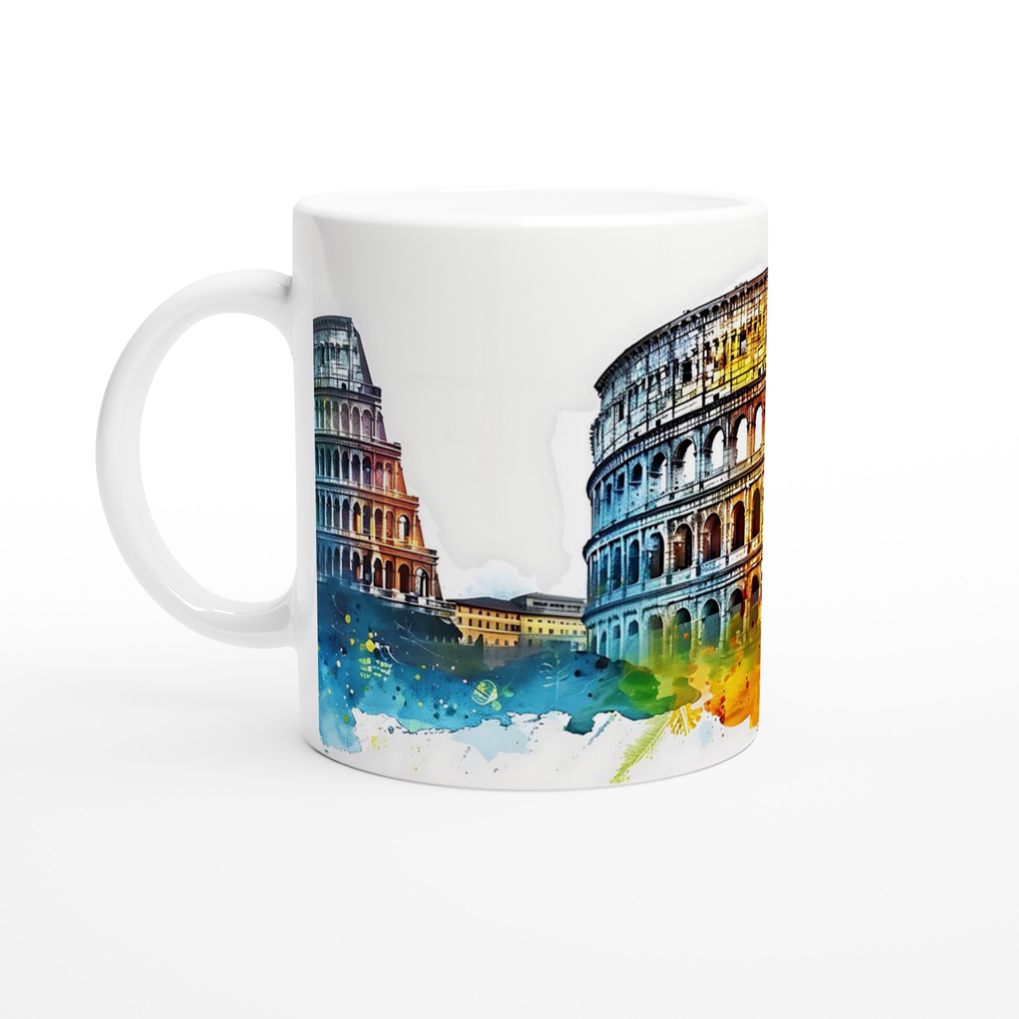 Dröm dig bort till Italiens ikoniska landmärken med varje klunk, illustrerade i en livfull akvarellstil som fångar ögat. Denna unika design, med färgstarka stänk som smälter samman med klassisk arkitektur, gör varje mugg till ett konstverk. Vare sig du föredrar den tidlösa keramiska vita ytan eller vill addera en färgexplosion till din samling, erbjuder vi en palett av valmöjligheter för att matcha din personliga stil.