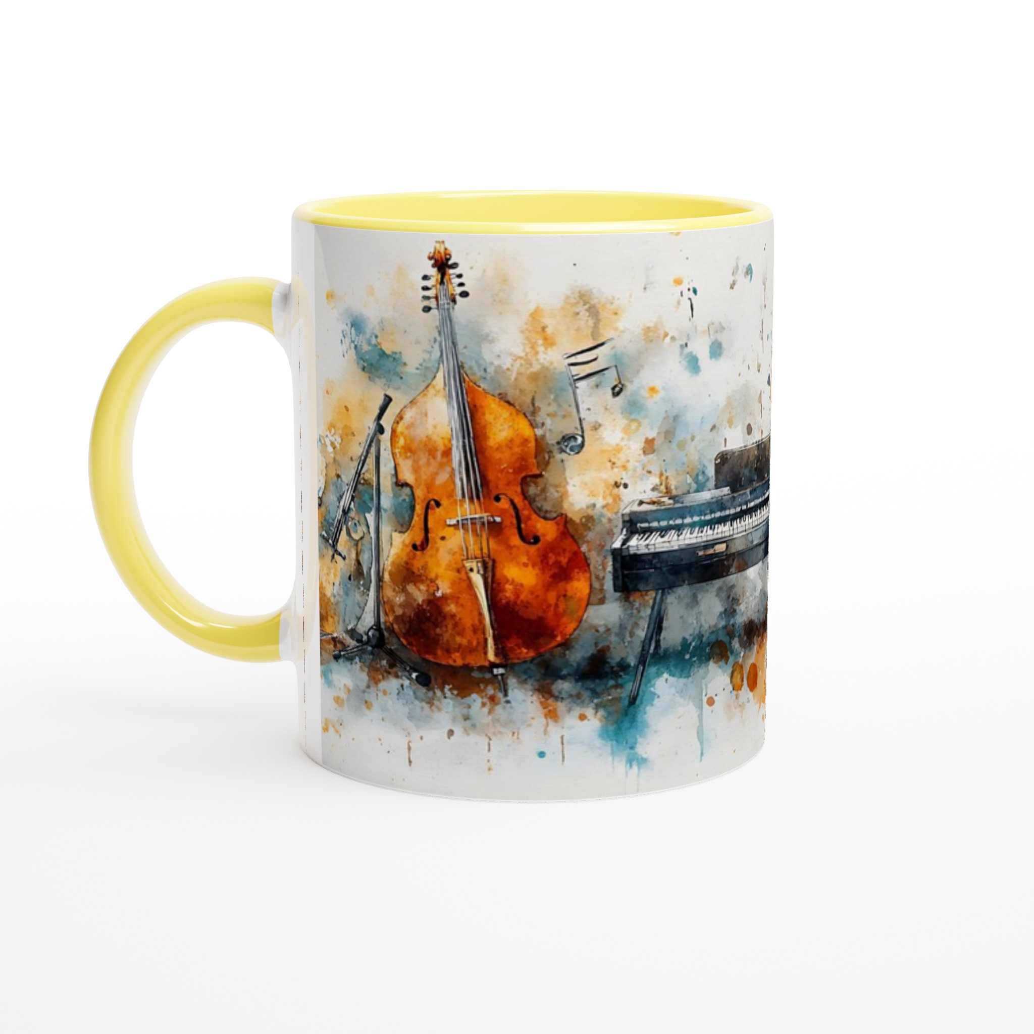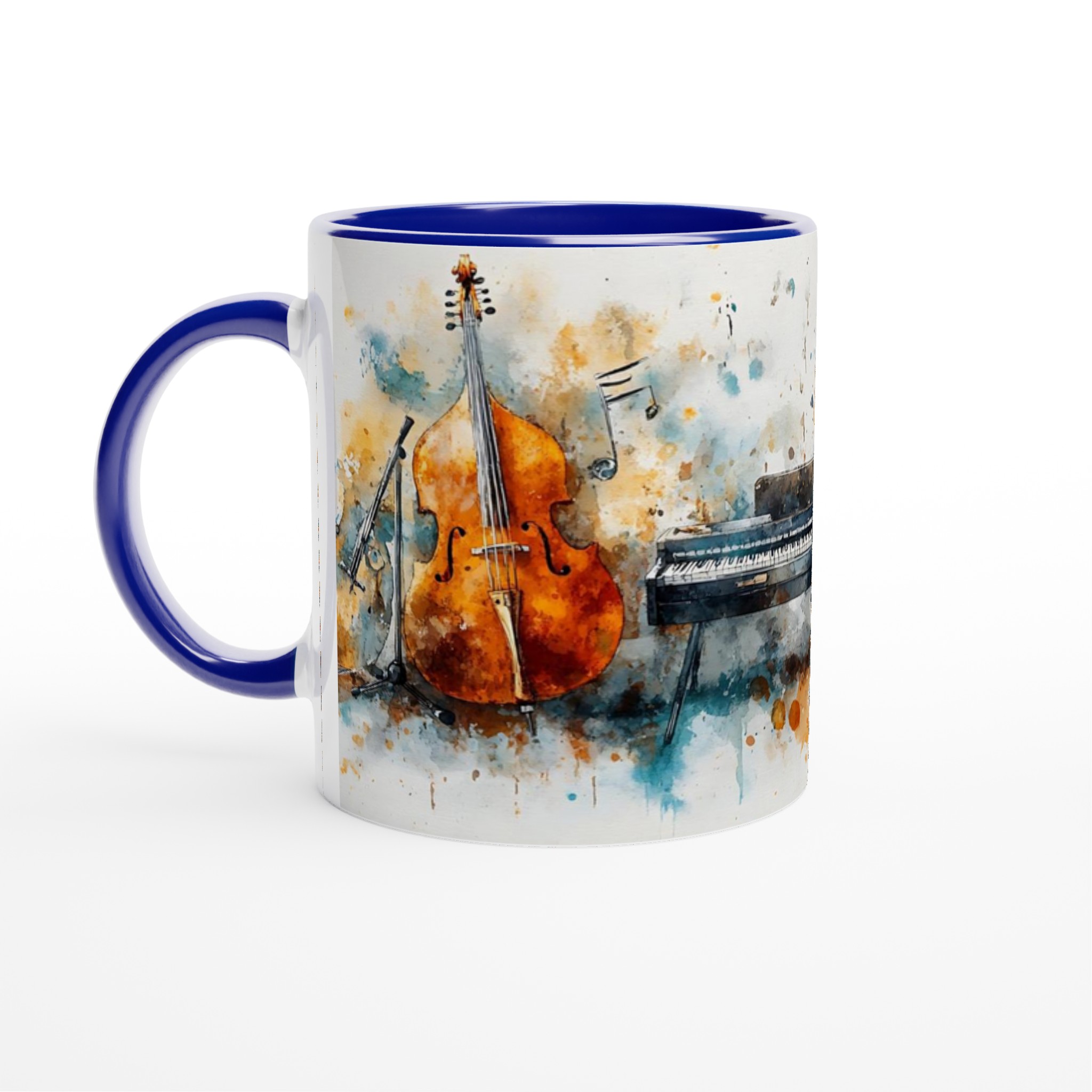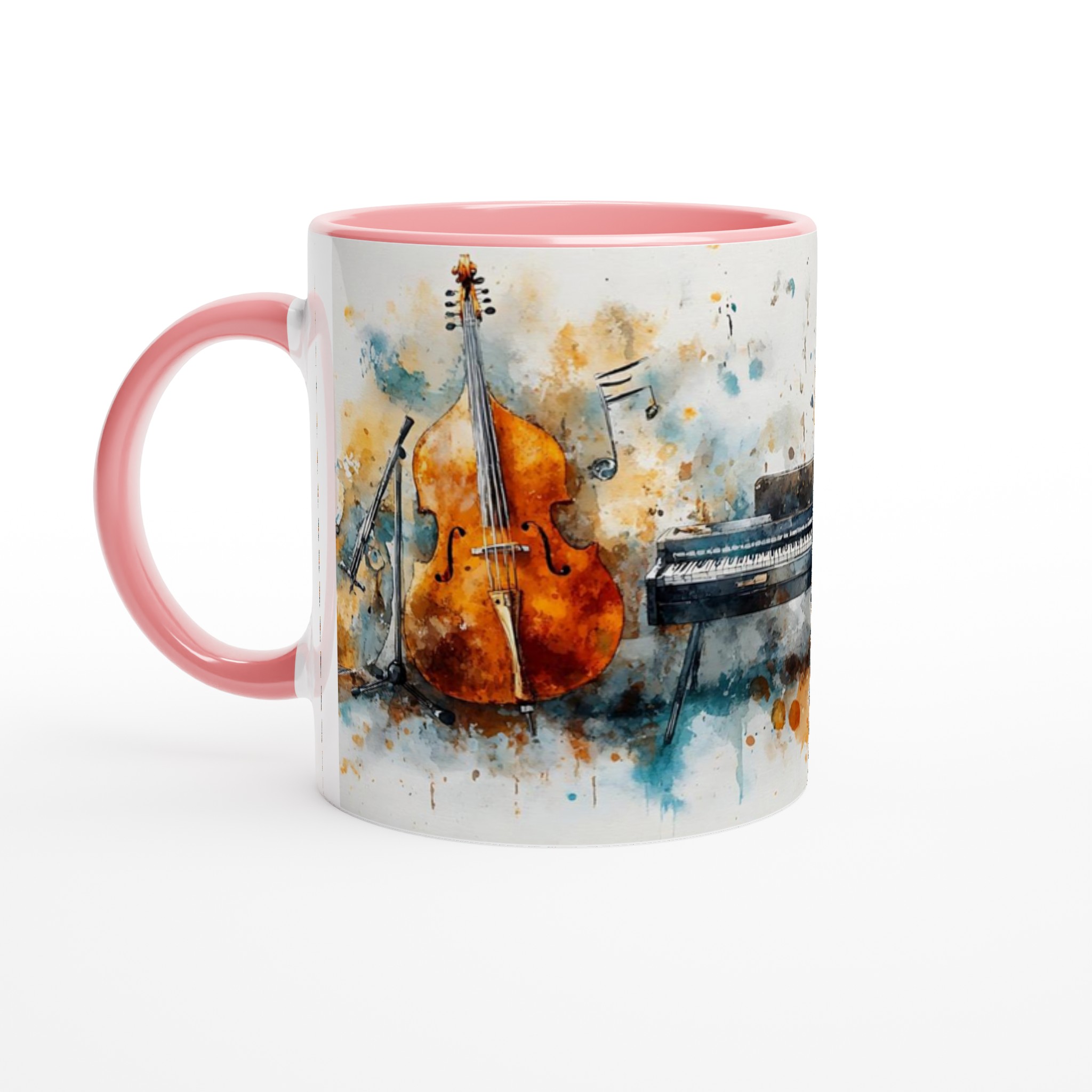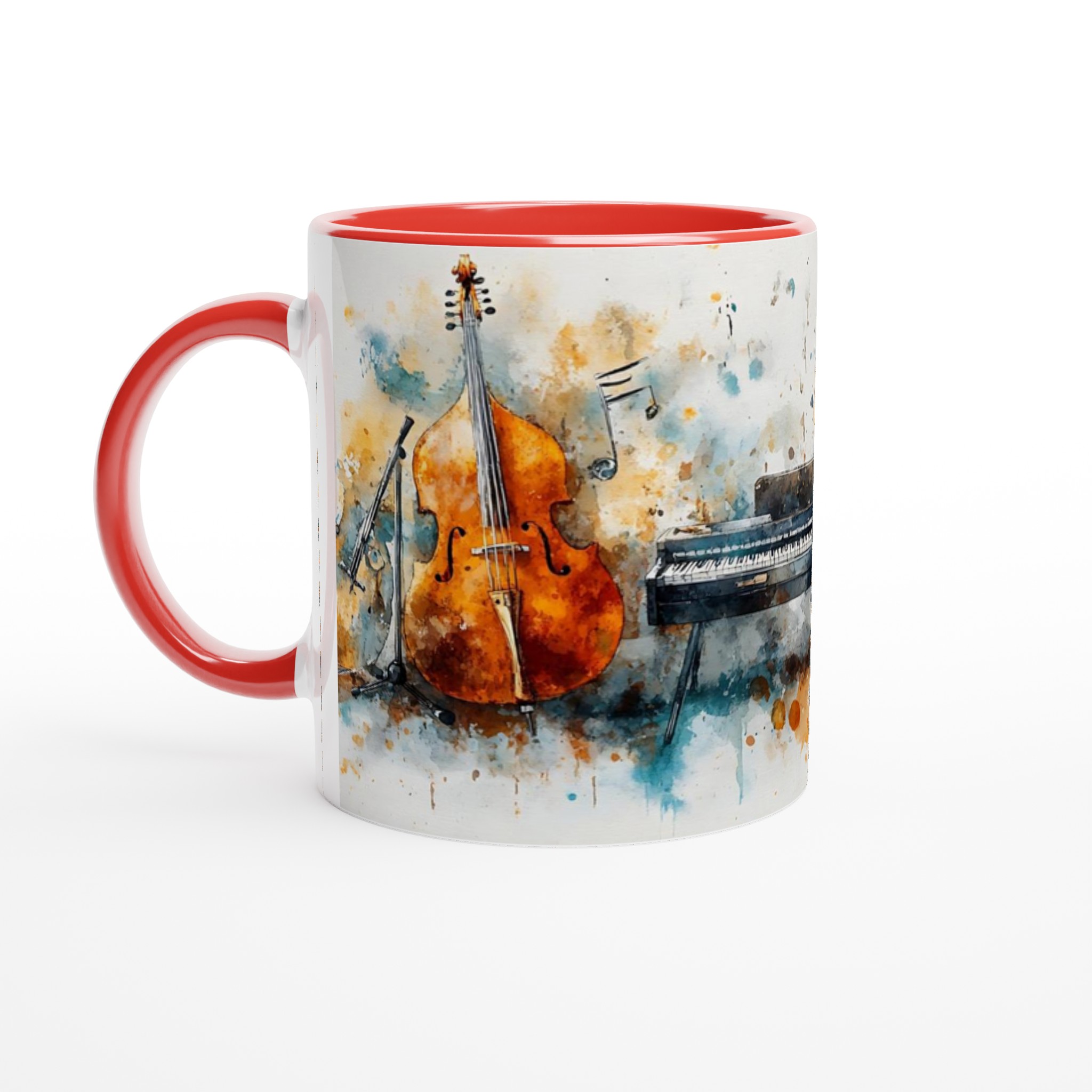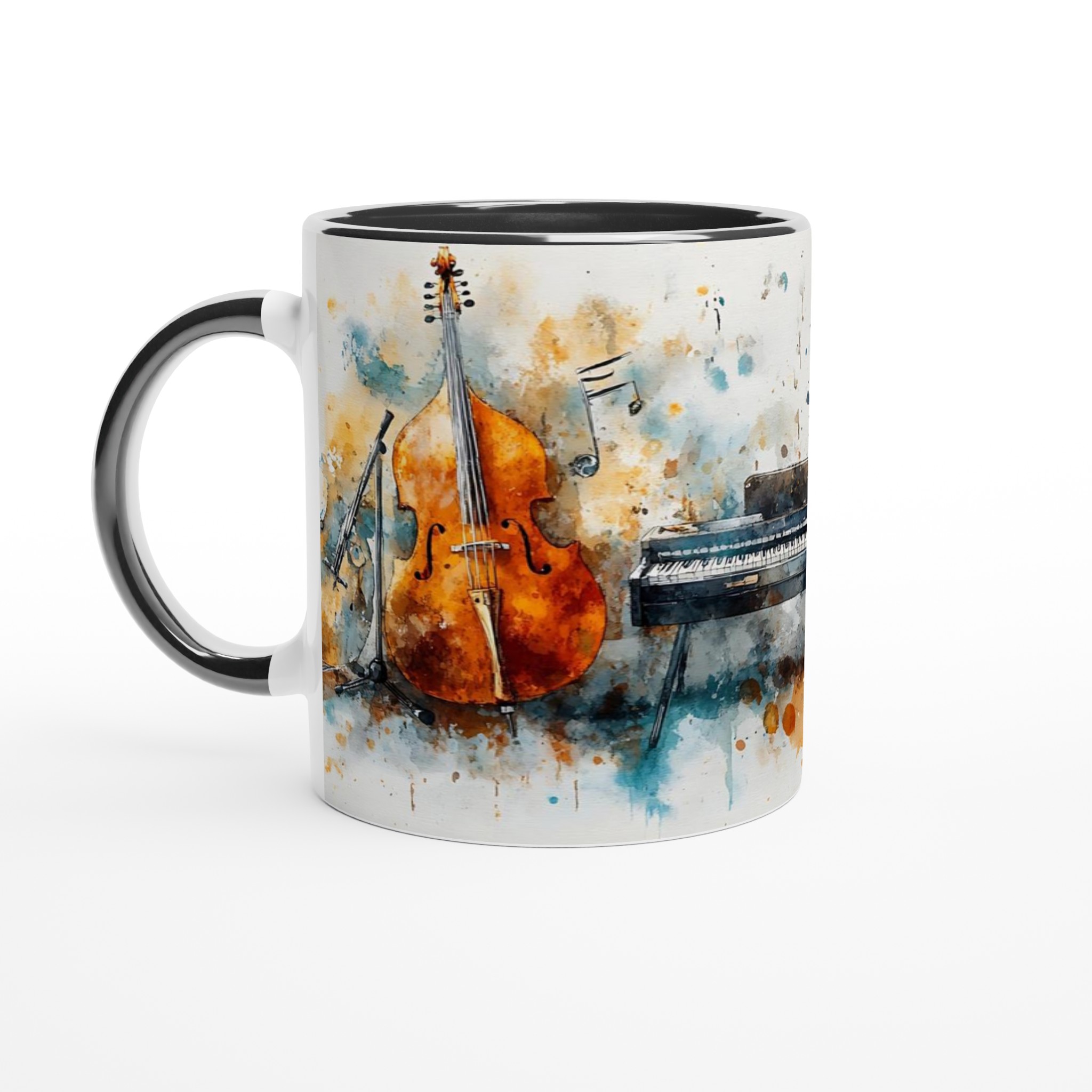 Denna exklusiva keramikmugg fångar den livfulla energin av en jazzfusion-session med sin dynamiska akvarelldesign. Med instrument som bas och piano omgivna av sprudlande toner i varma orangeröda och svala blå nyanser, är detta mer än bara en mugg – det är ett konstverk som hyllar musikens själ. Den blanka vita ytan ger ett skarpt och levande tryck som verkligen sticker ut, oavsett om det är en personlig design, ett roligt citat eller en present till någon du tycker om.