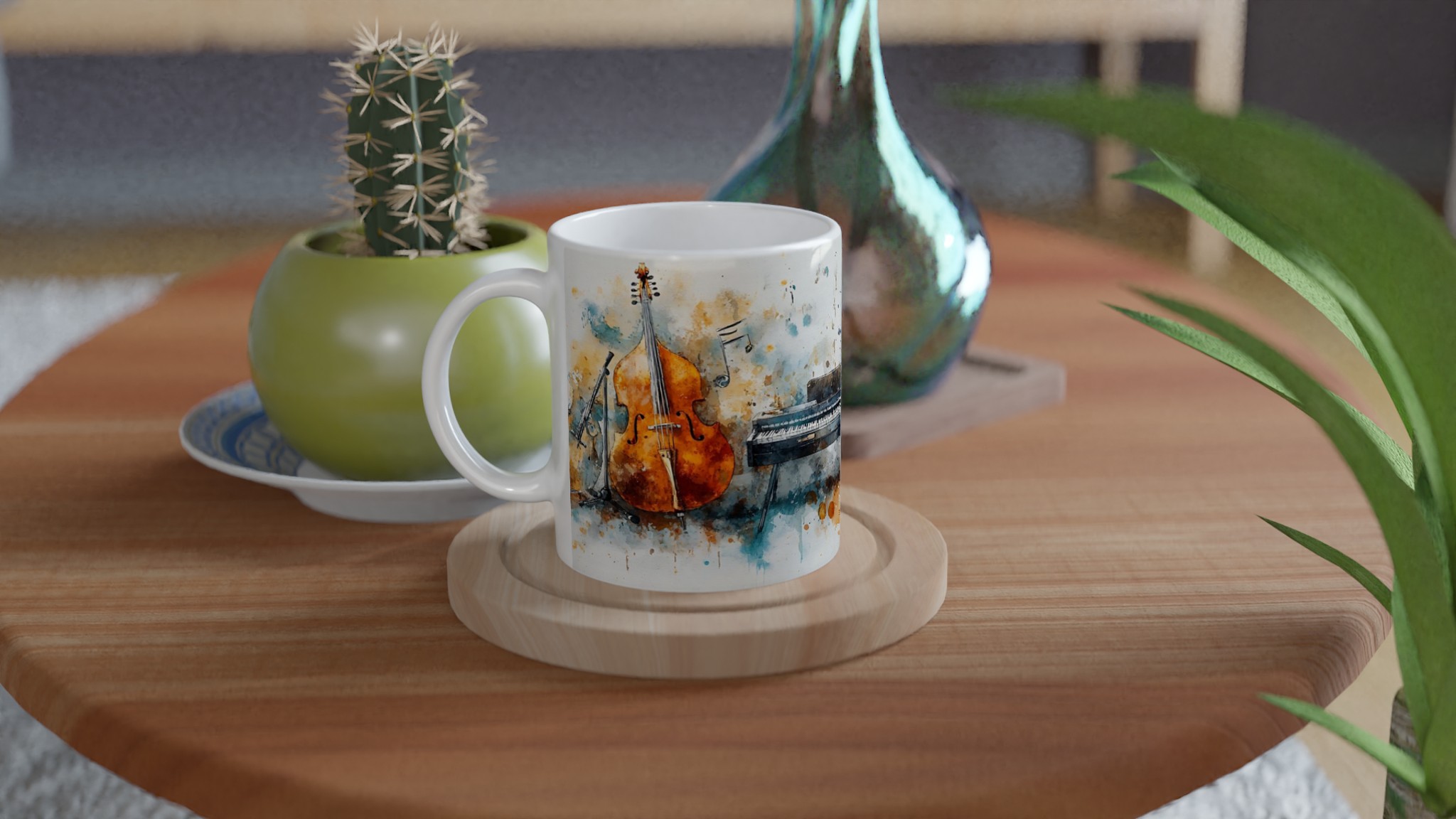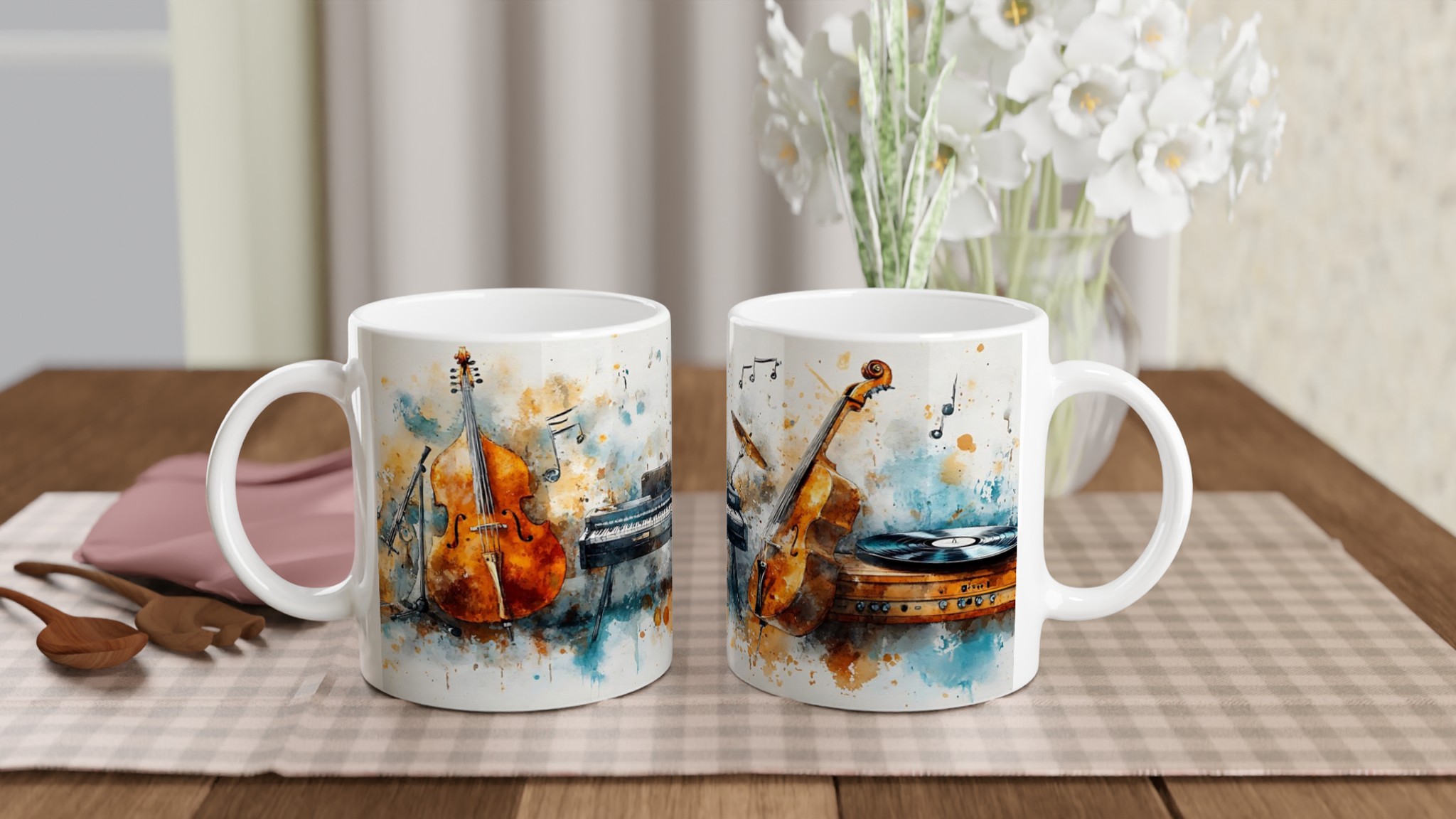 Muggen är tillverkad av högkvalitativ keramik som tål både diskmaskin och mikrovågsugn utan att tappa färg eller glans. Den håller formen och färgerna tvätt efter tvätt – en riktig vardagsfavorit som består. Med en kapacitet på 11 oz (ca 3,25 dl) är den perfekt för morgonkaffe, te, varm choklad eller din favoritdryck på jobbet. En idealisk storlek för både hem och kontor. För att matcha din personliga stil eller presentens mottagare, välj bland sju inspirerande keramiska nyanser: Classic White, Solgul, Charmig Rosa, Lugn Grön, Passionerad Röd, Elegant Svart eller Djupblå. Låt din musikaliska passion flöda med varje klunk!