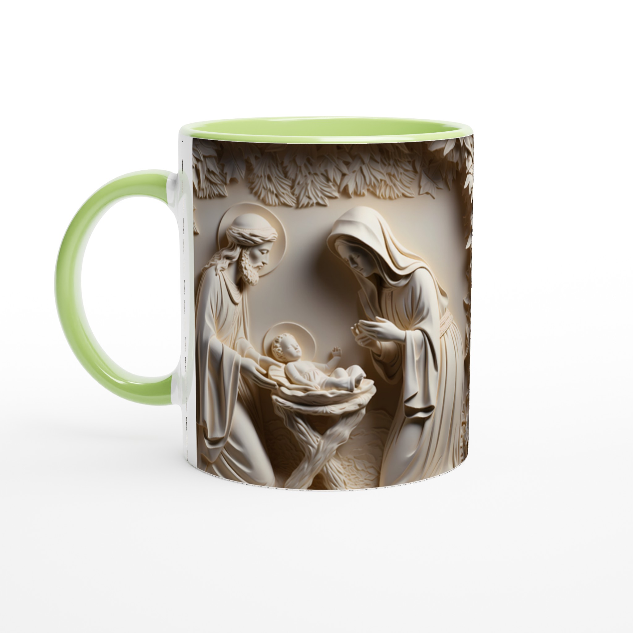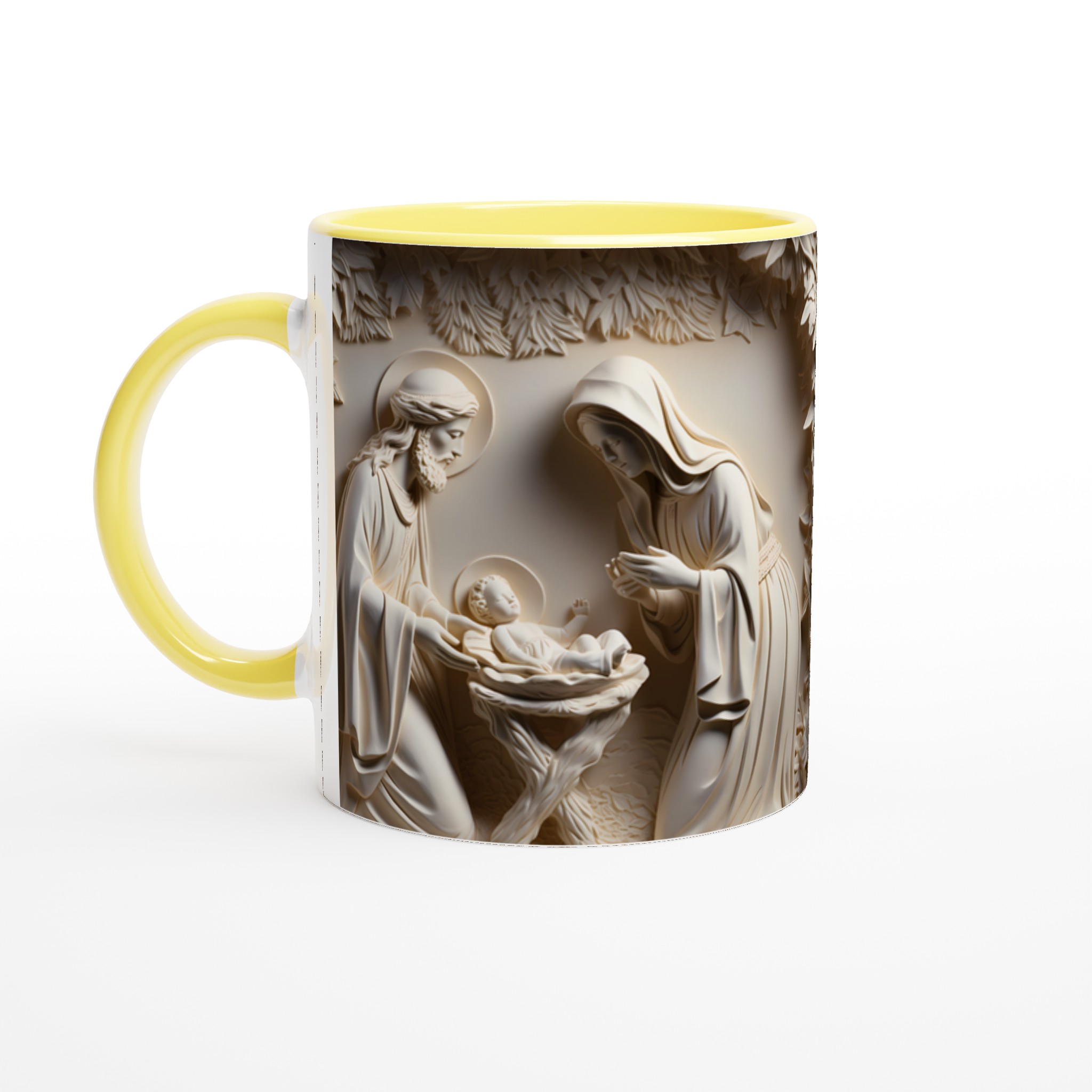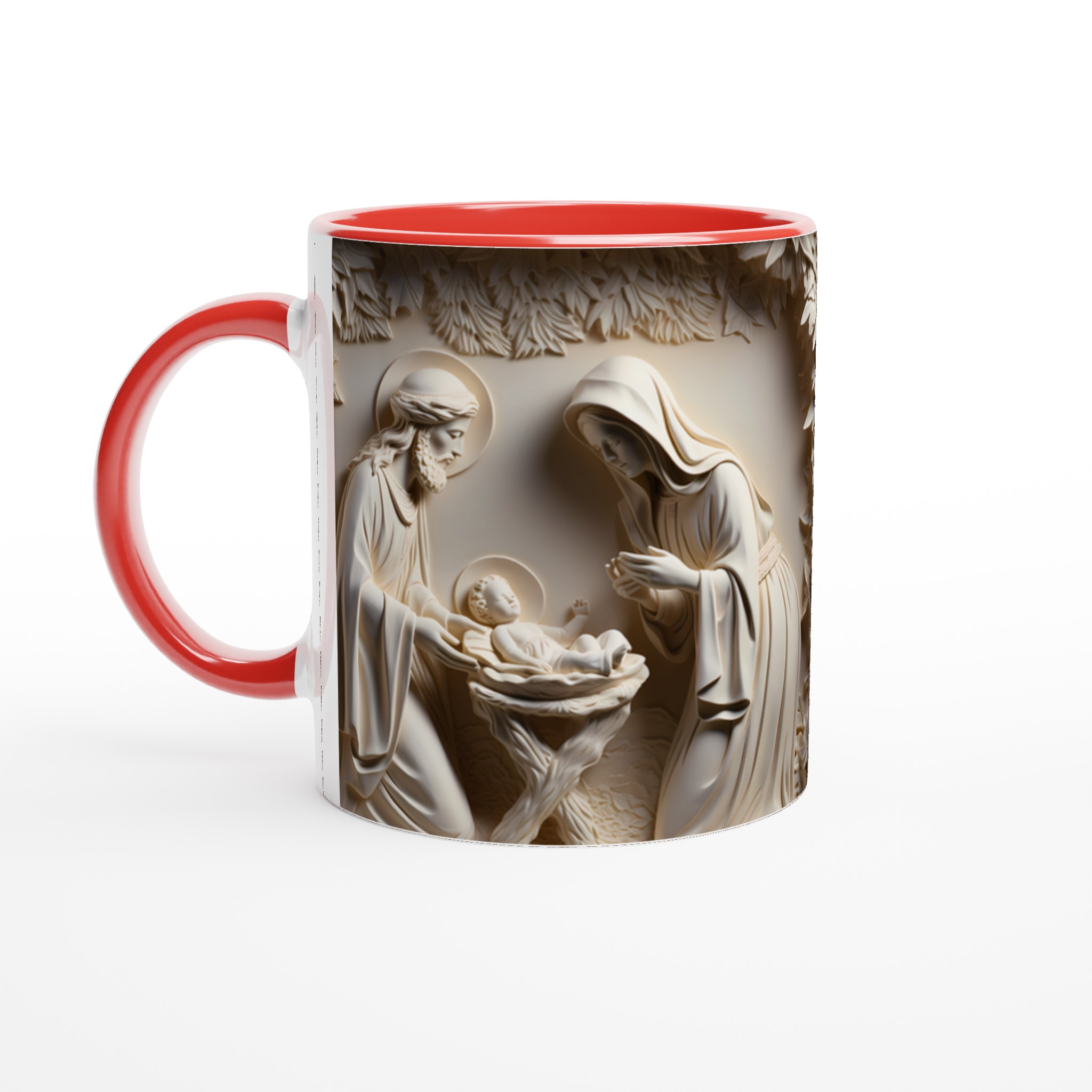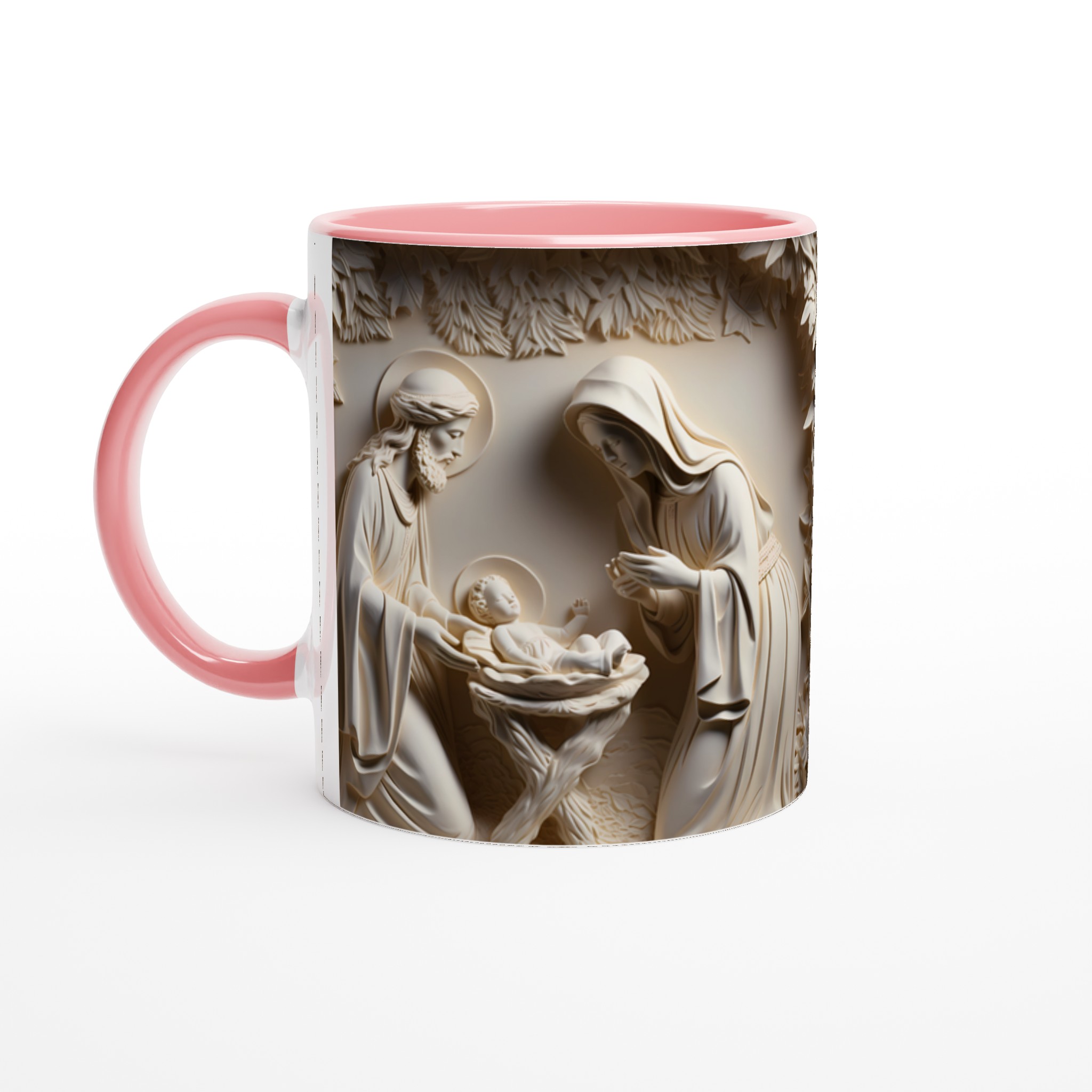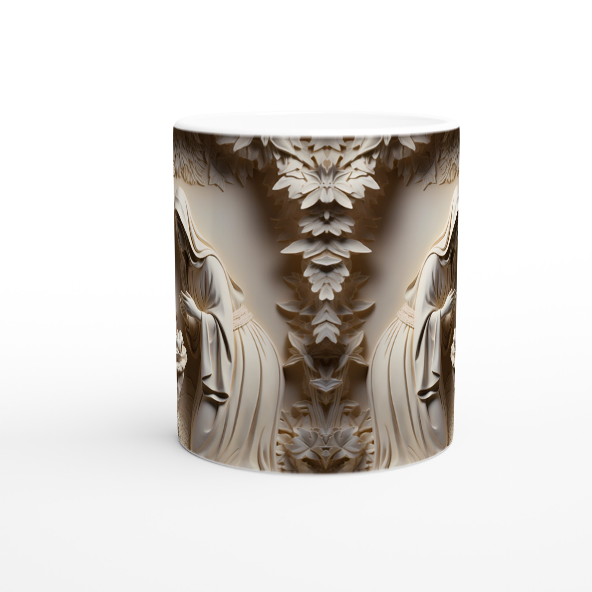 Väck din tro och finn lugn med denna vackra keramiska mugg, prydd med en konstnärlig avbildning av Jesu födelse i en fridfull reliefstil. Den detaljerade designen, som fångar ögonblicket av Joseph, Maria och Jesusbarnet, ger en känsla av stillhet och andlig reflektion till varje kopp. Den här stilrena keramiska muggen blir snabbt en vardagsfavorit. Perfekt för morgonkaffet, kvällens varma choklad eller när du bara vill njuta av en kopp te.