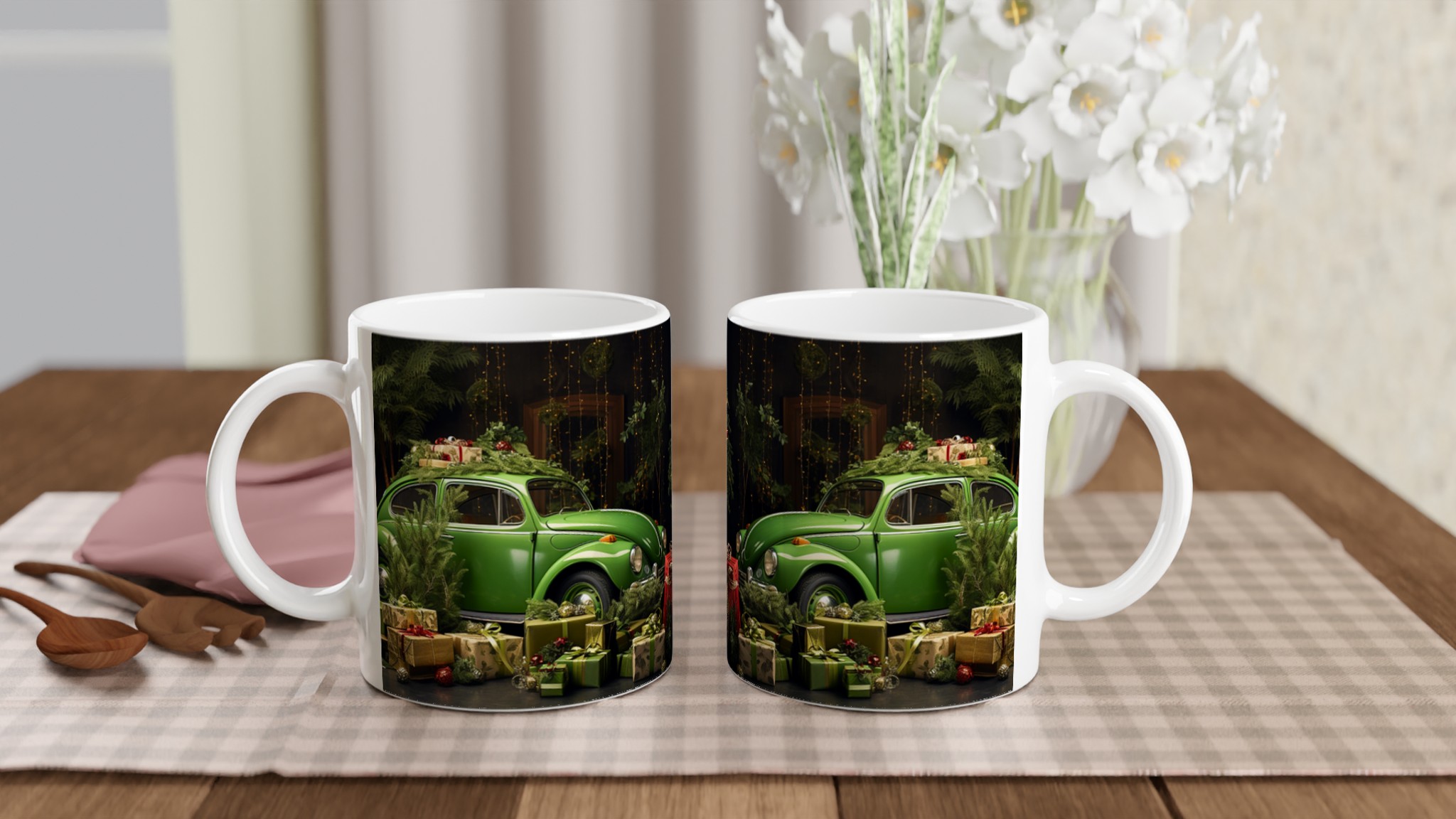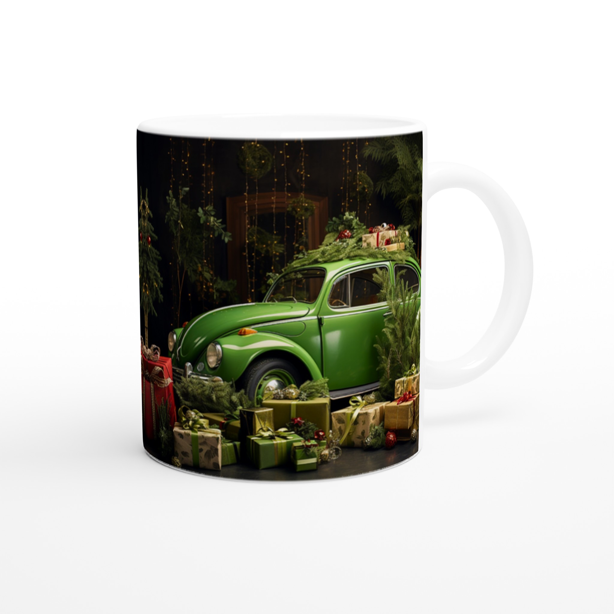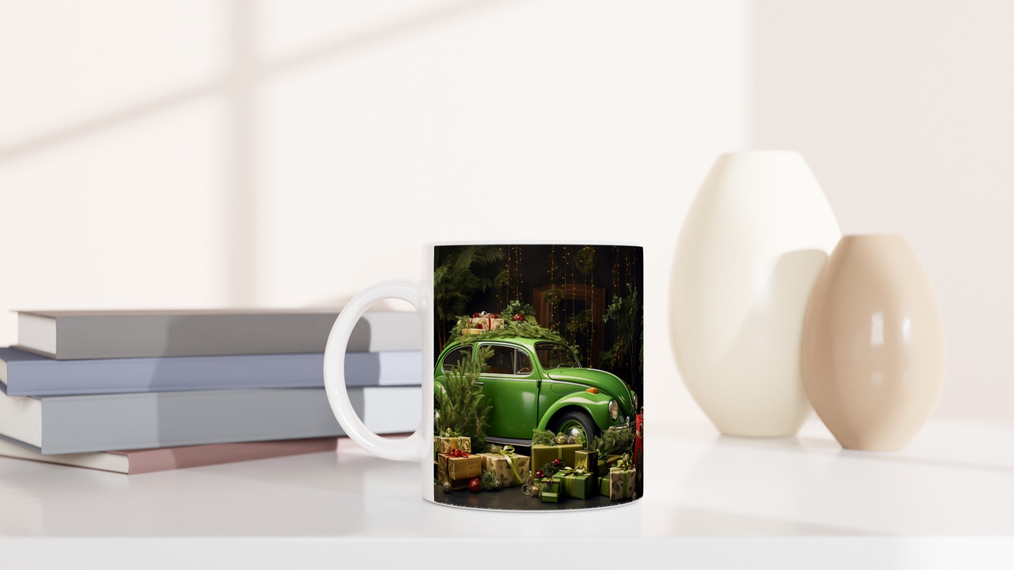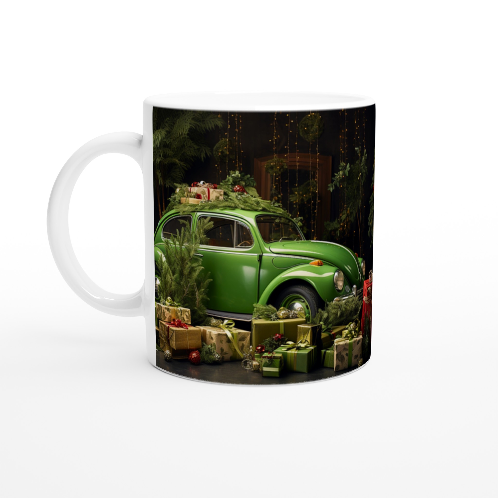 Fånga julens magi varje dag med vår charmiga keramiska mugg! Inspirerad av den mysiga känslan av julklappar och en klassisk grön folkvagn, blir denna mugg snabbt en favorit. Perfekt för morgonkaffet, kvällens varma choklad eller när du bara vill njuta av en kopp te. Den blanka ytan framhäver trycken med klara och levande färger, som håller sig fina även efter många turer i mikron och diskmaskinen.