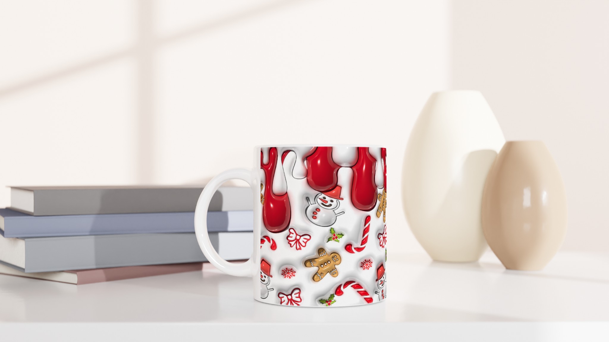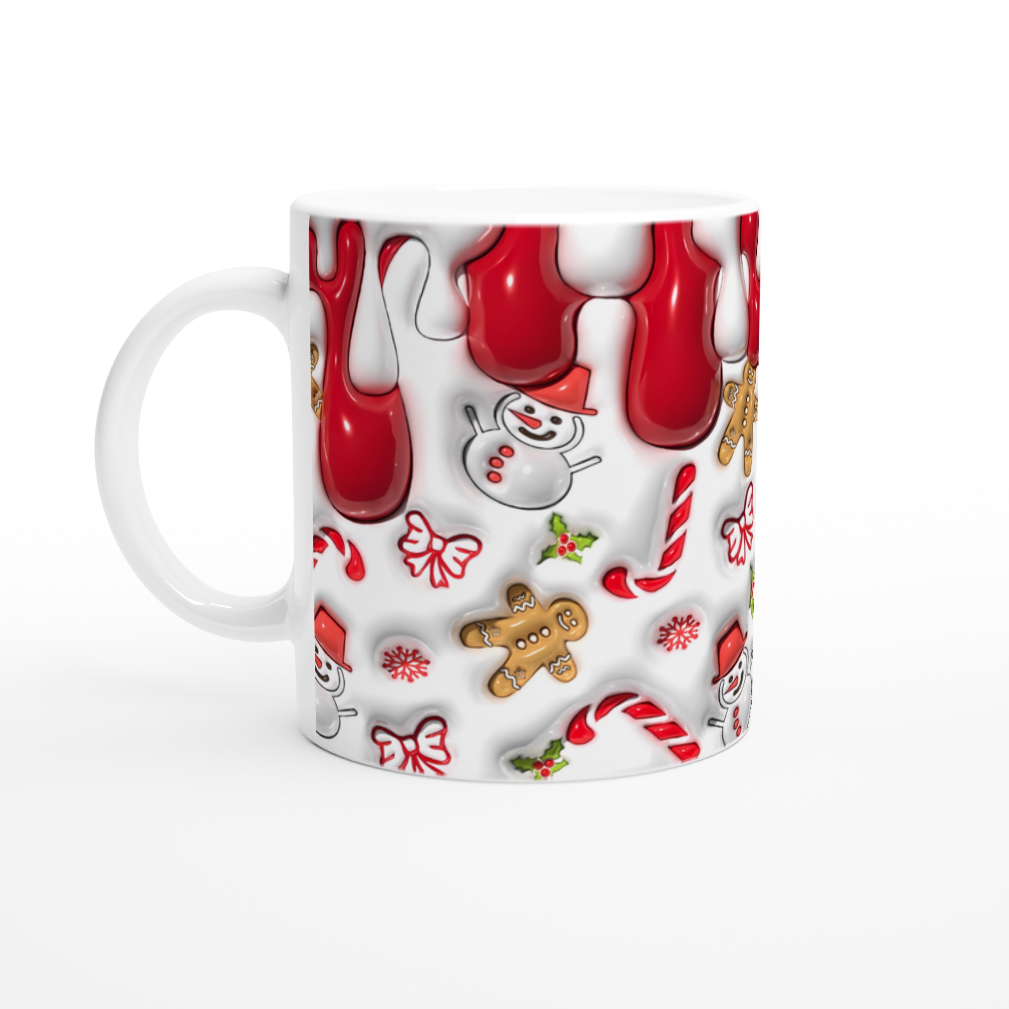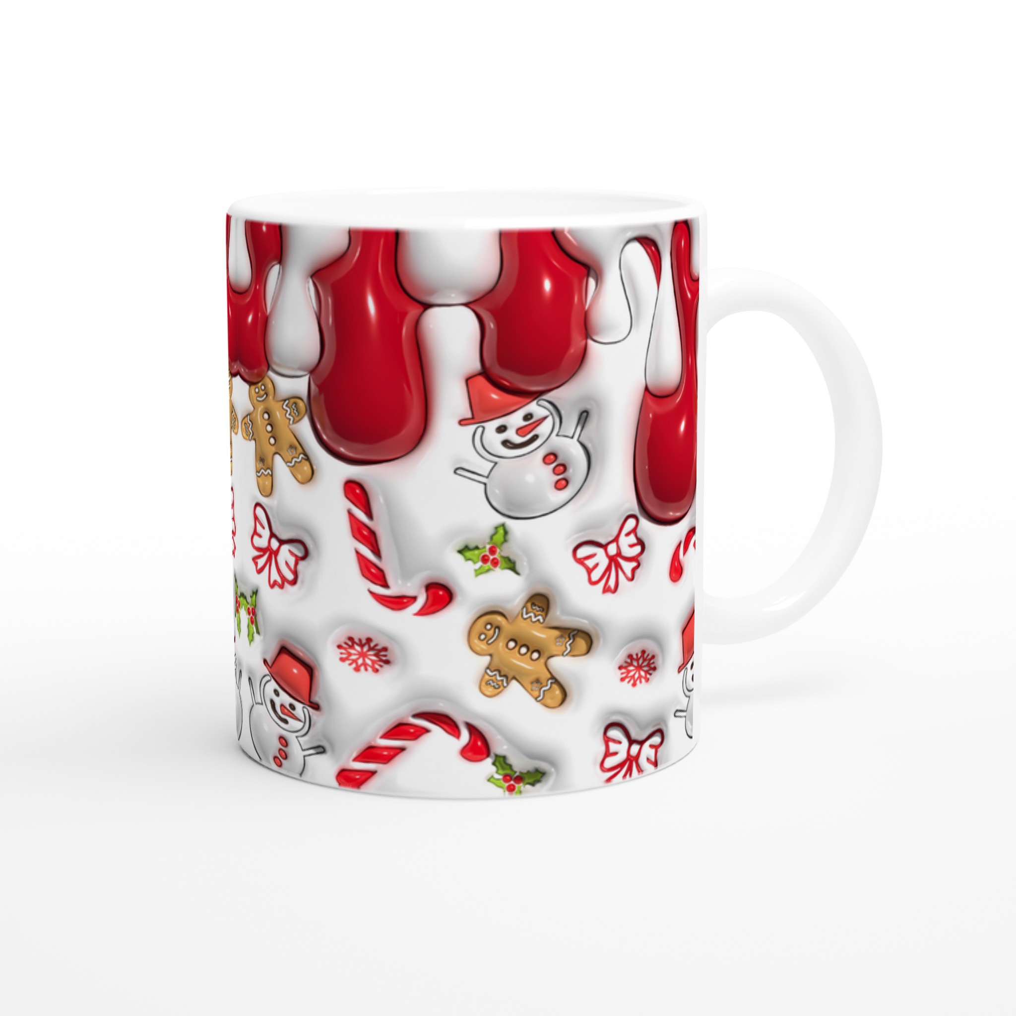 Sprid julglädje varje dag med denna charmiga keramiska mugg, prydd med en lekfull julmönster av pepparkaksgubbar, snögubbar och godis. Den här stilrena muggen blir snabbt en vardagsfavorit, perfekt för morgonkaffet, kvällens varma choklad eller när du bara vill njuta av en kopp te under julhelgen.
