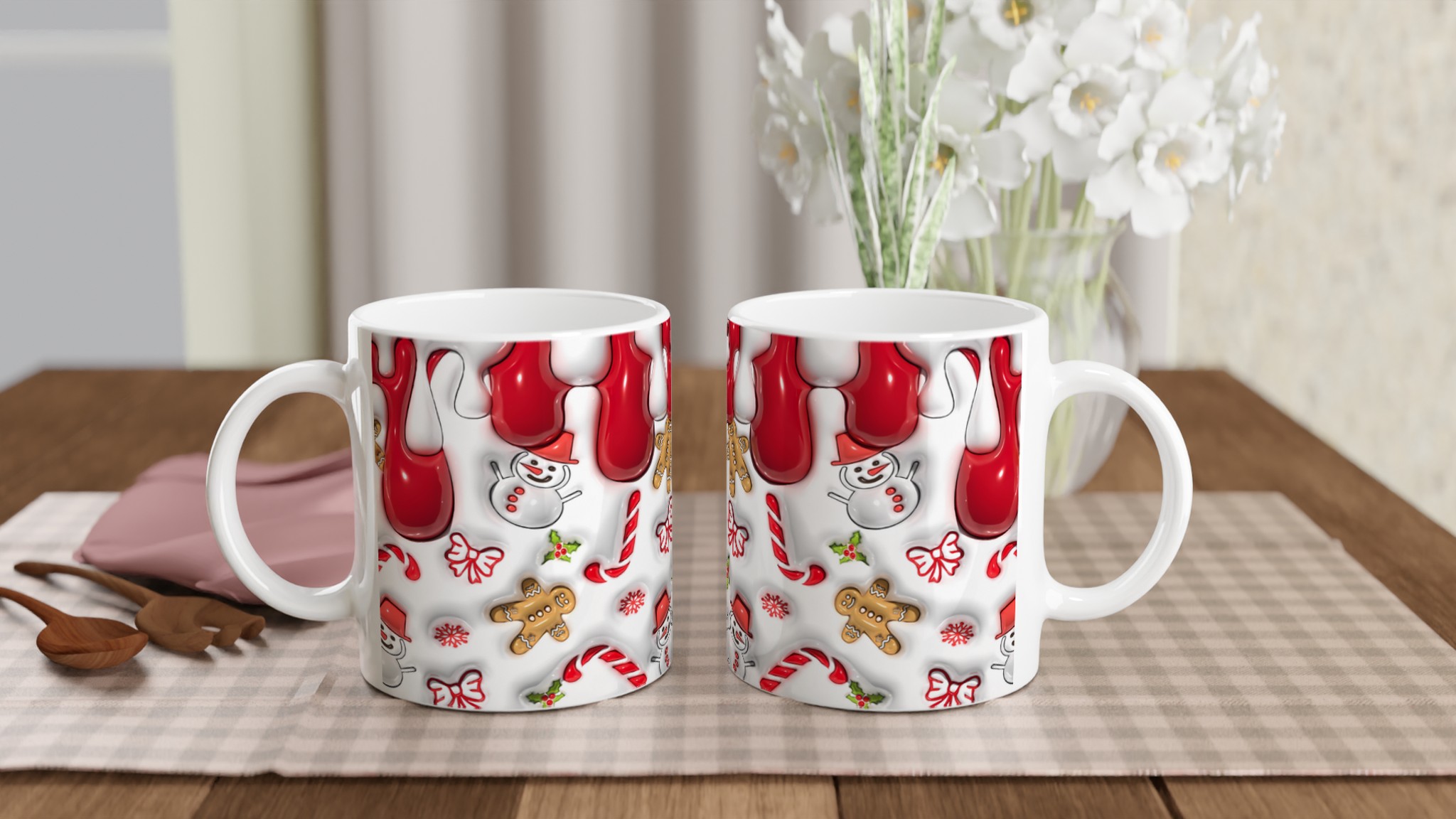 Den blanka vita ytan med sin livfulla design av julkaraktärer gör att trycken framhävs med klara och levande färger, som håller sig fina även efter många turer i mikron och diskmaskinen. Varje klunk blir en festlig upplevelse!