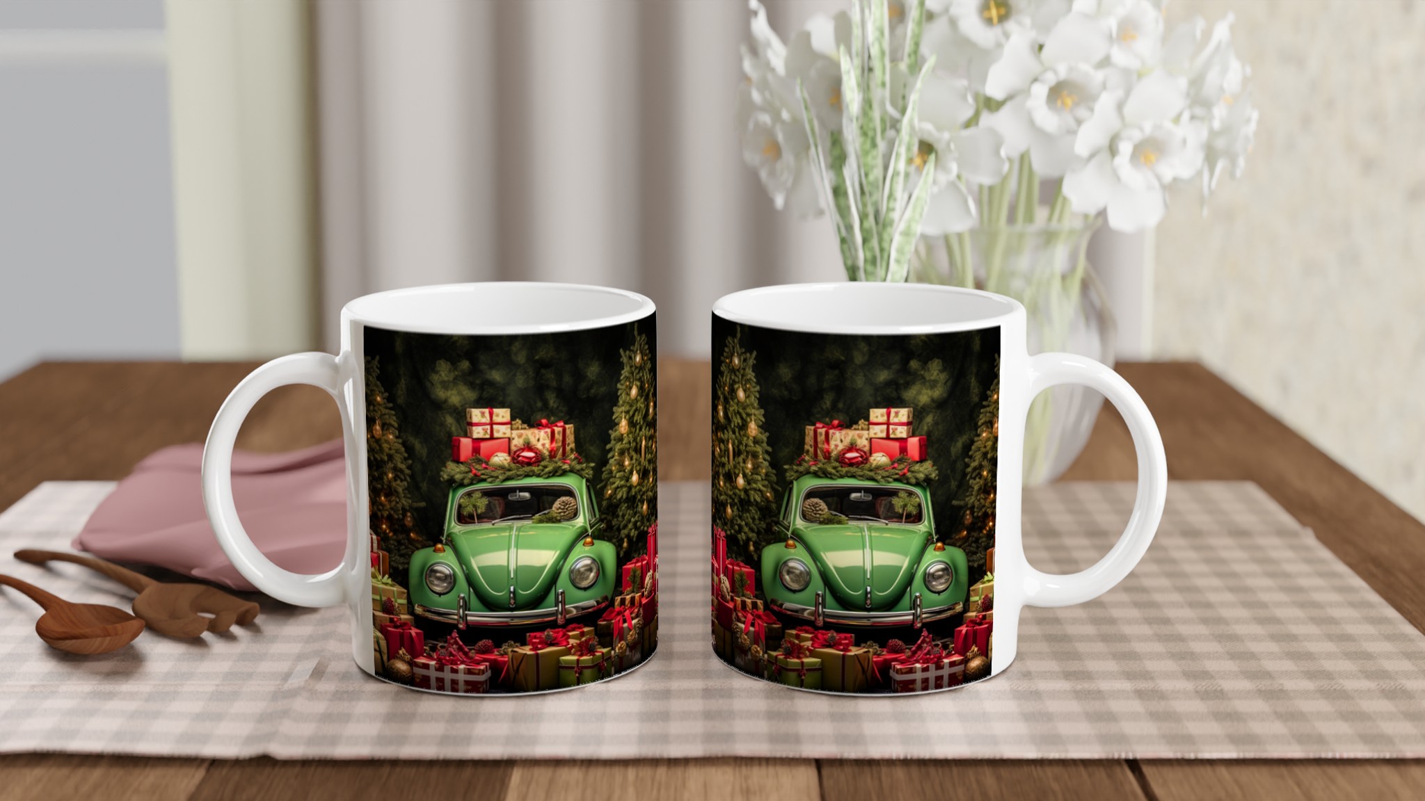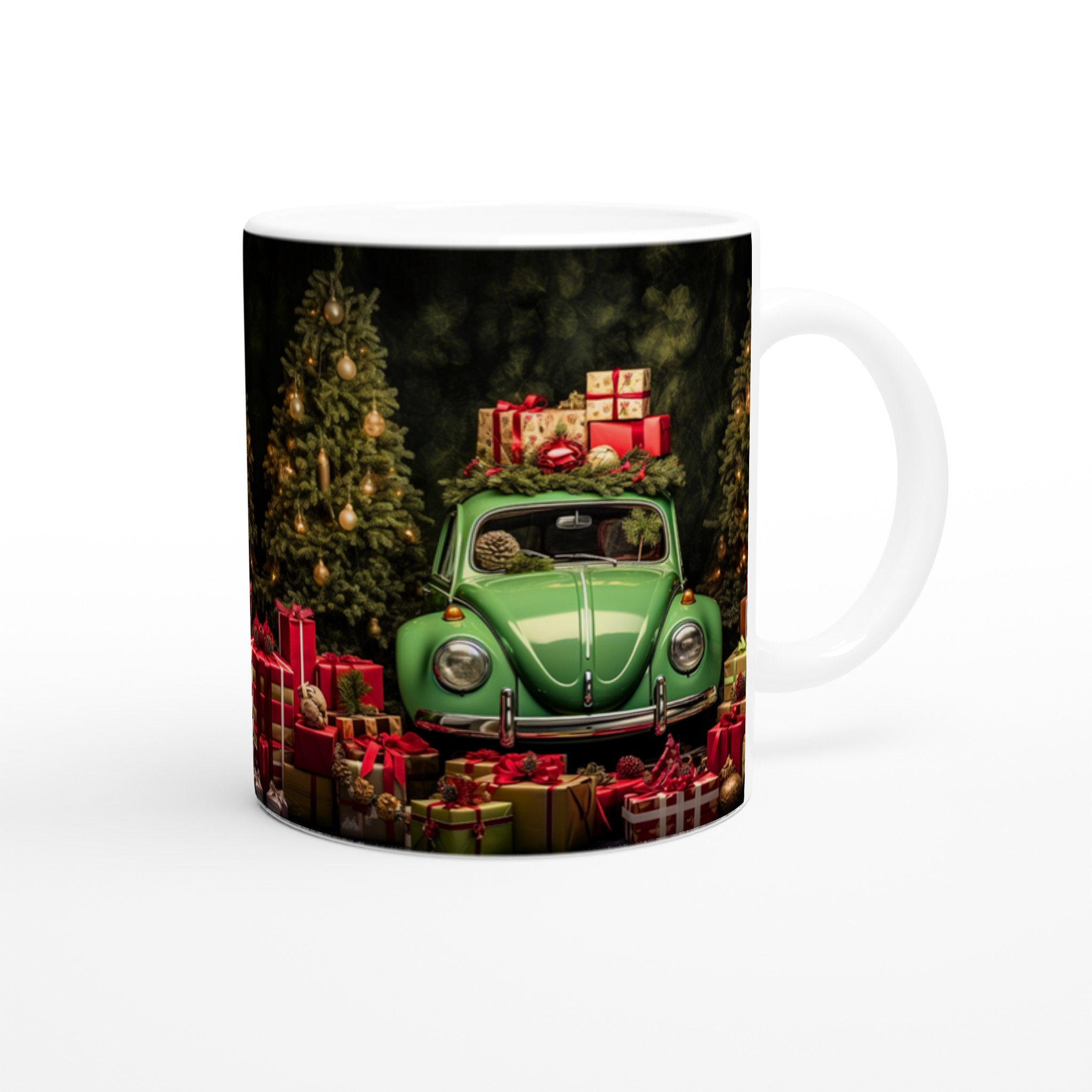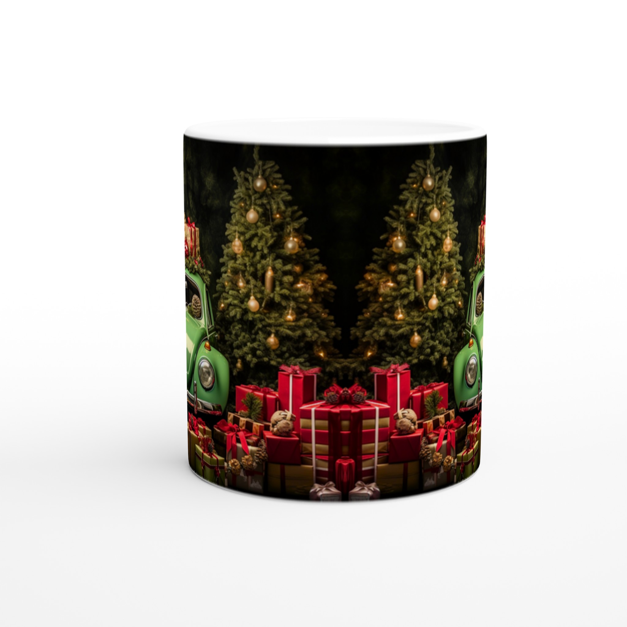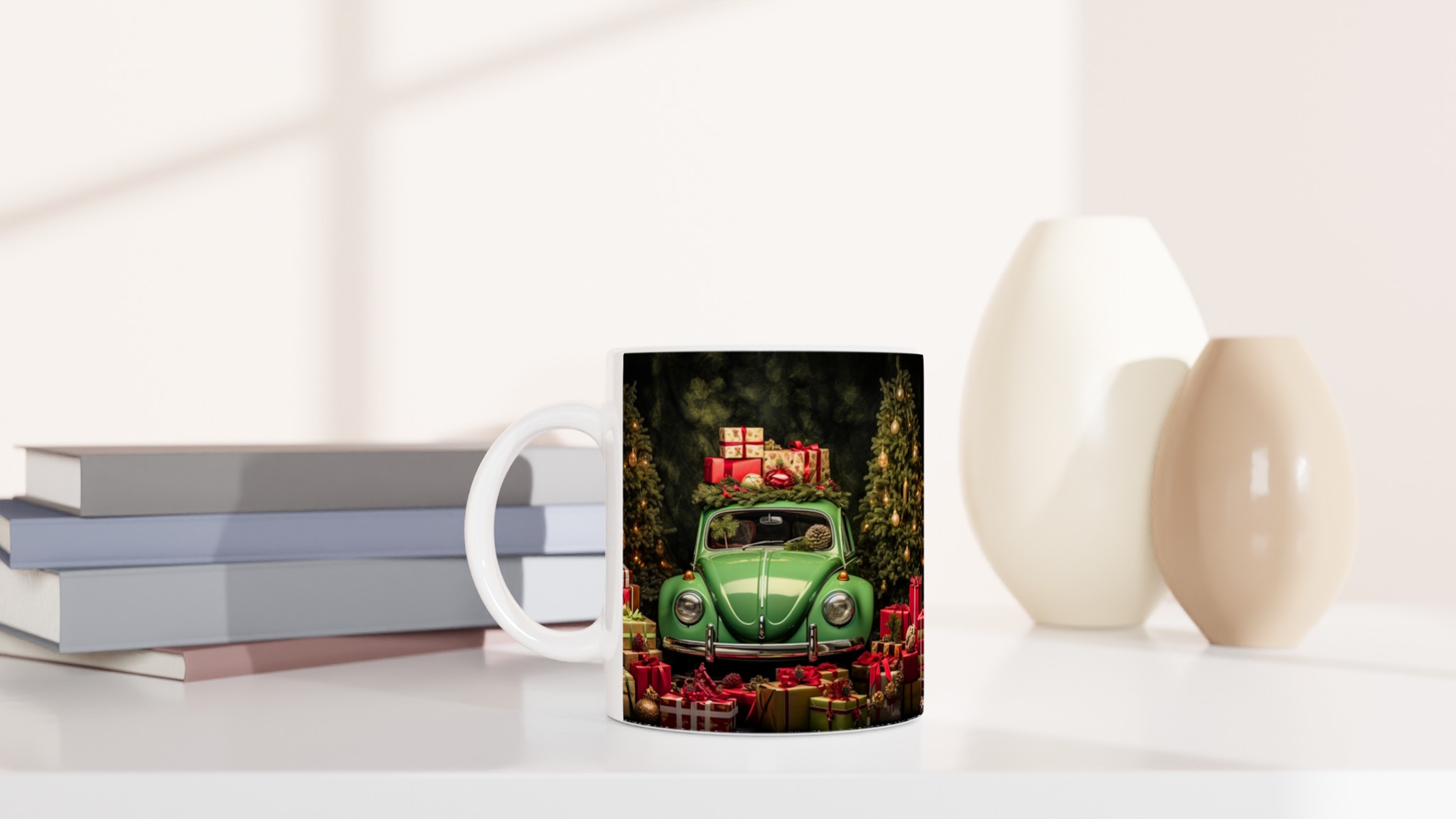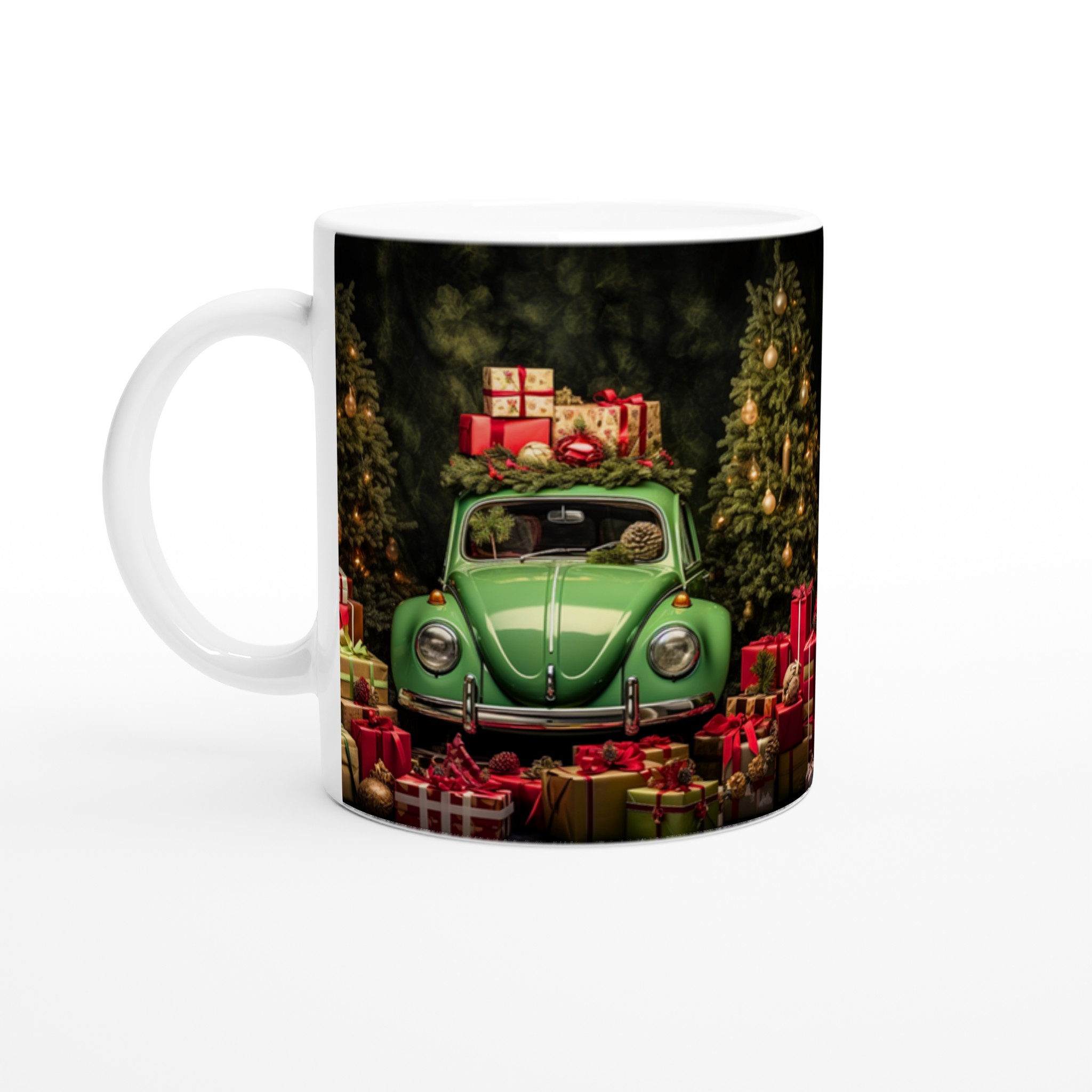 Fånga julens magi med vår charmiga keramiska mugg, prydd med en festlig illustration av en klassisk retrobubbla omgiven av glittrande julgranar och en överflöd av presenter. Den här stilrena muggen blir snabbt en vardagsfavorit och en perfekt följeslagare för alla festliga tillfällen. Föreställ dig att värma dig med morgonkaffet eller kvällens varma choklad, insvept i julstämning varje gång du tar en klunk.