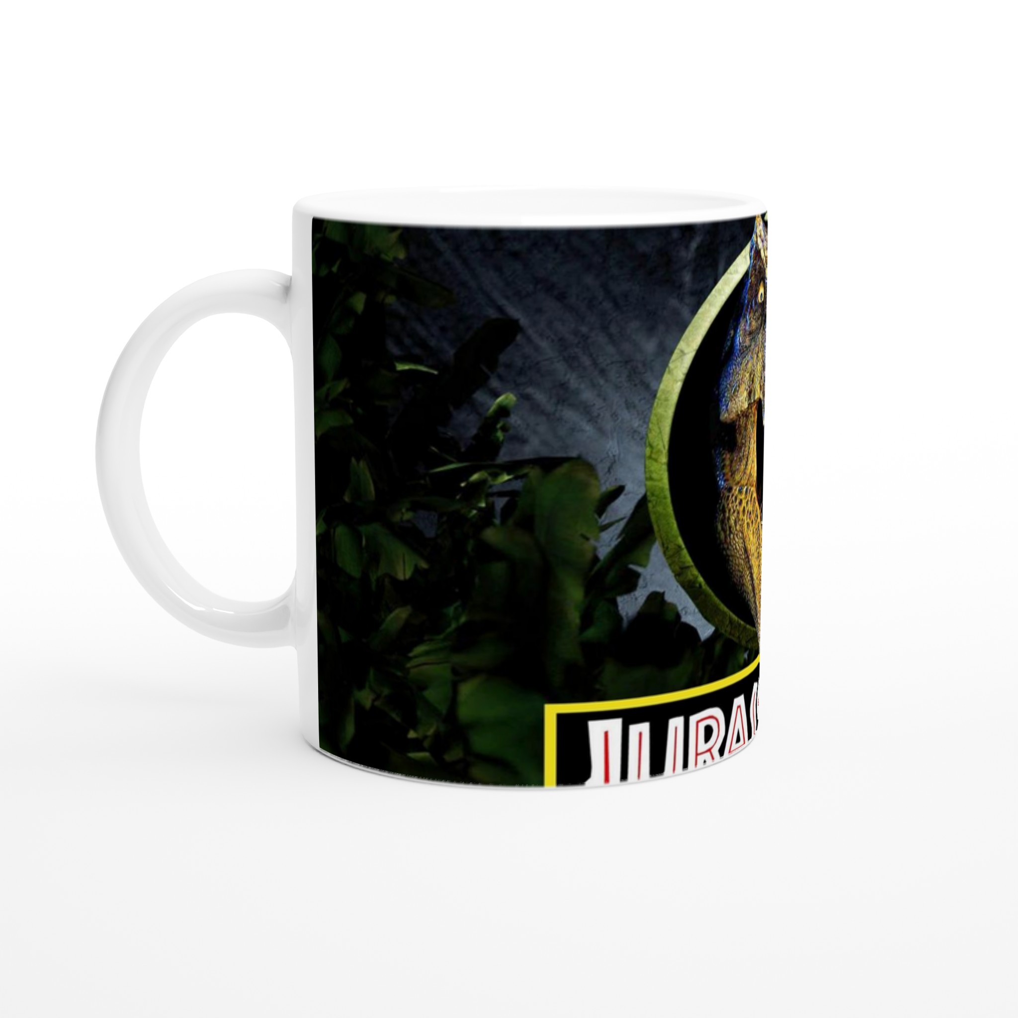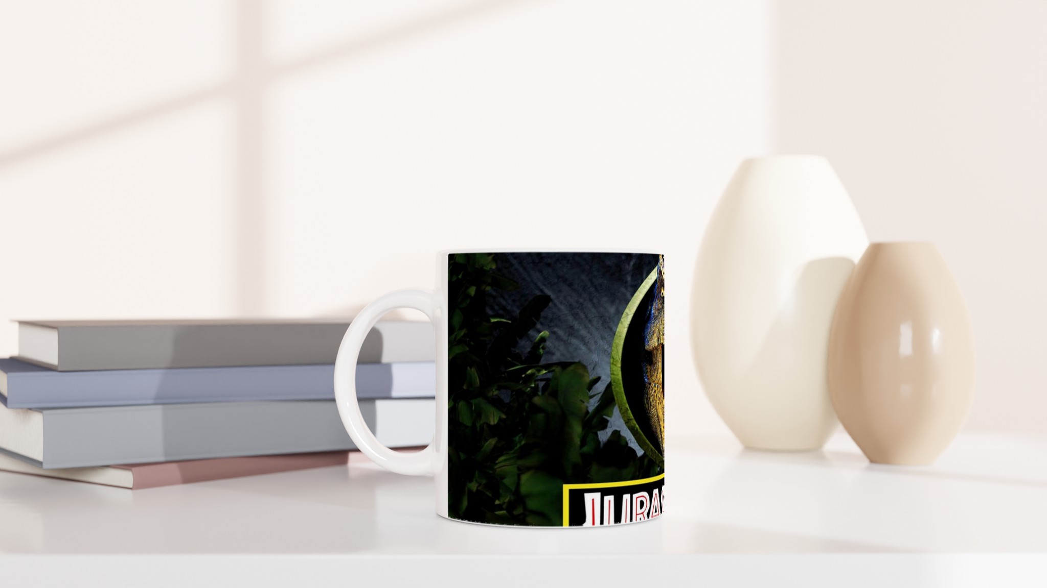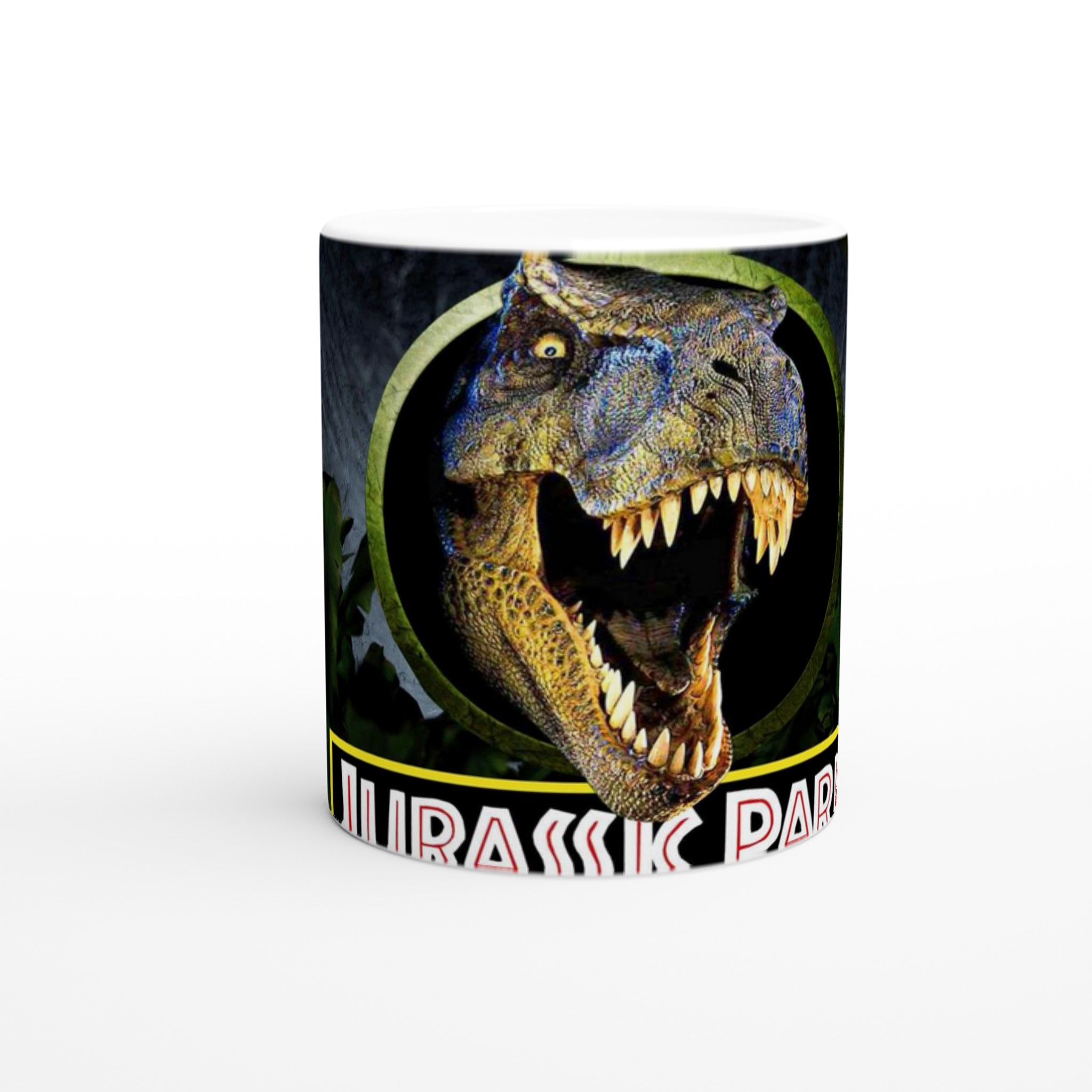 Väck din inre paleontolog med denna dynamiska keramiska mugg, prydd med den ikoniska T-Rex från Jurassic Park. Perfekt för morgonkaffet, kvällens varma choklad eller när du bara vill njuta av en kopp te. Den blanka vita ytan gör att trycket med den mäktiga dinosaurien framhävs med klara och levande färger, som håller sig fina även efter många turer i mikron och diskmaskinen.