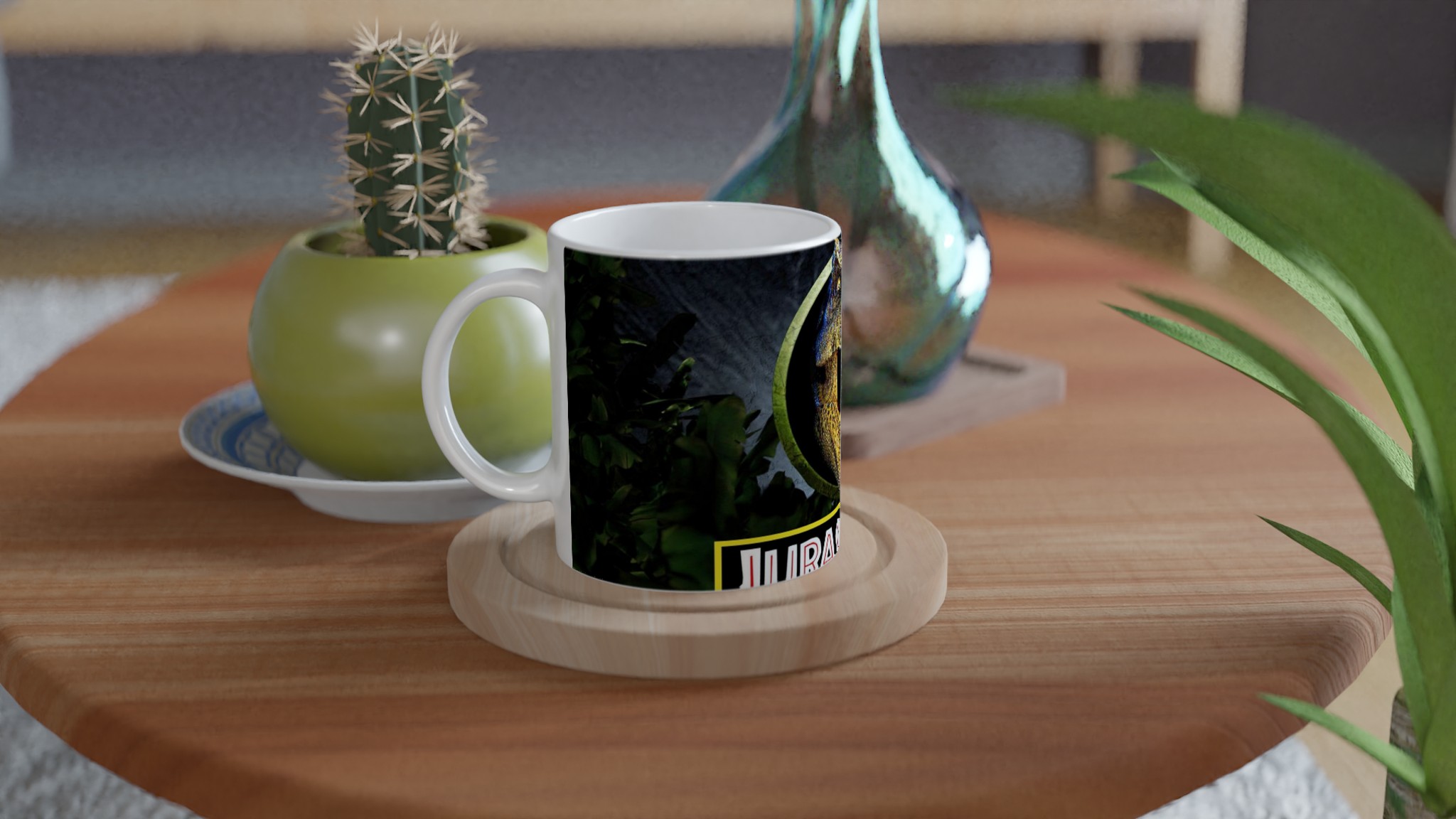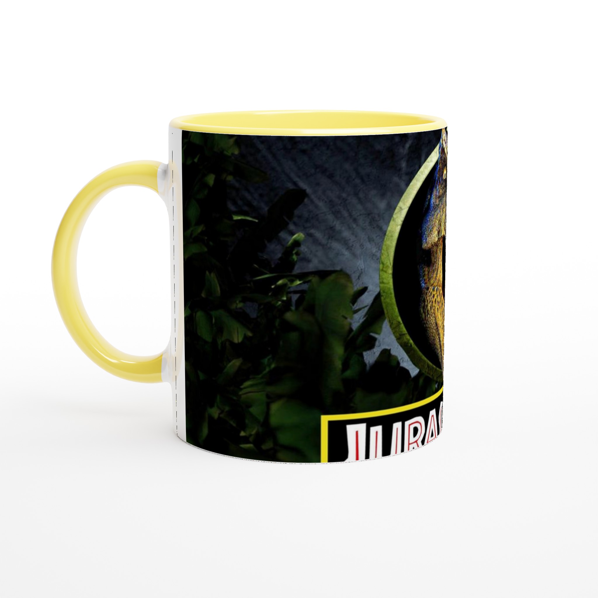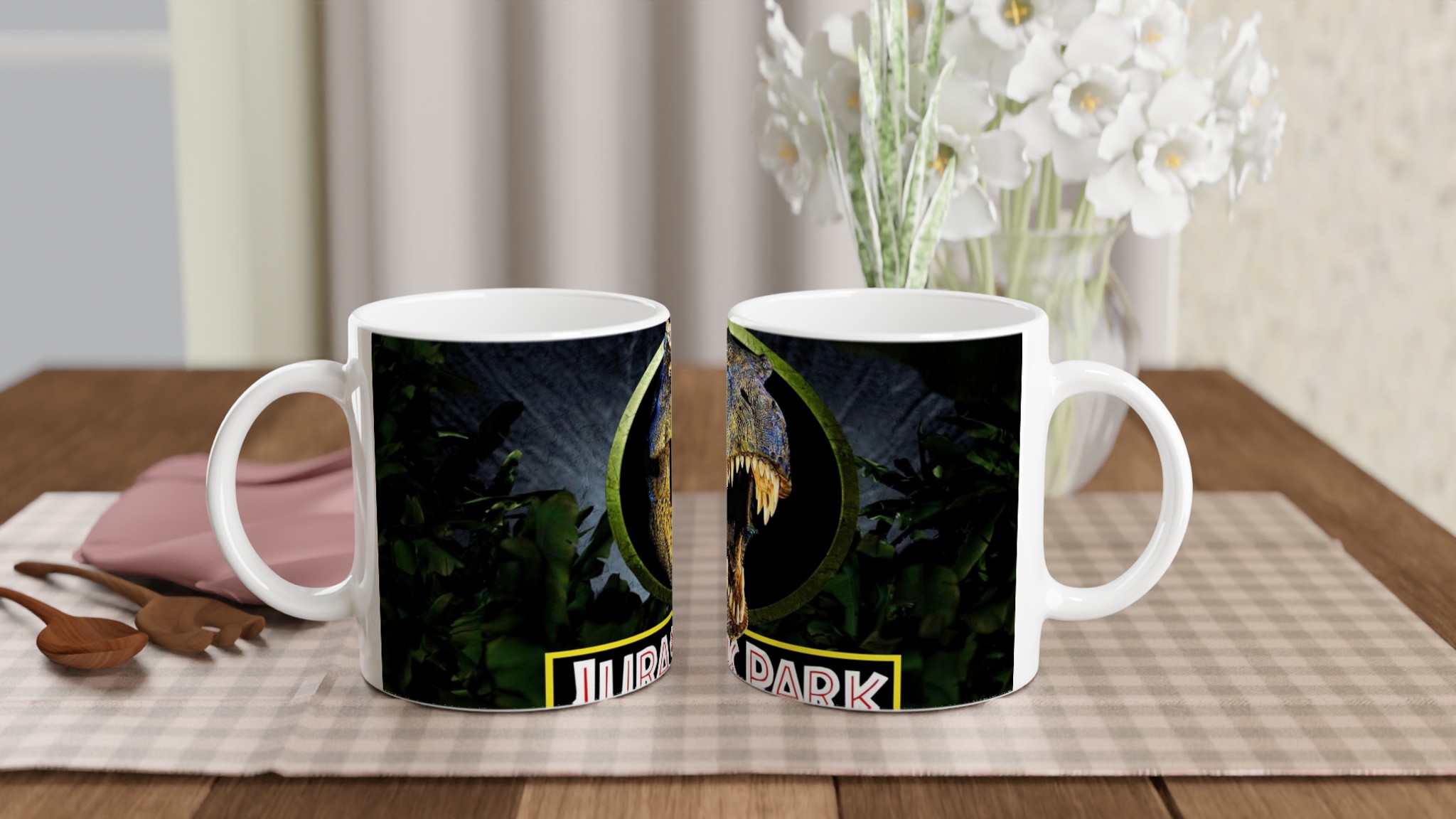 Väck din inre paleontolog med denna dynamiska keramiska mugg, prydd med den ikoniska T-Rex från Jurassic Park. Perfekt för morgonkaffet, kvällens varma choklad eller när du bara vill njuta av en kopp te. Den blanka vita ytan gör att trycket med den mäktiga dinosaurien framhävs med klara och levande färger, som håller sig fina även efter många turer i mikron och diskmaskinen.