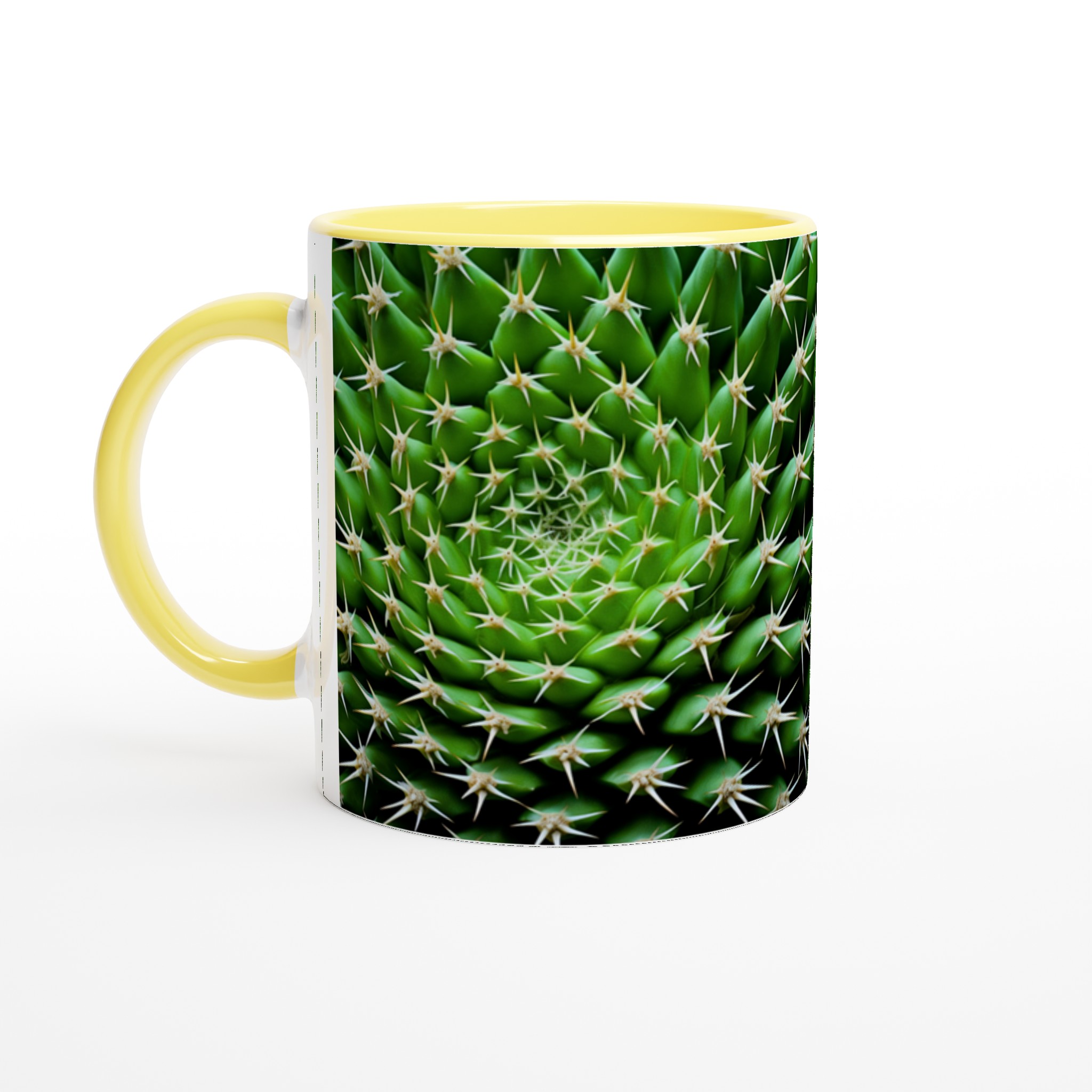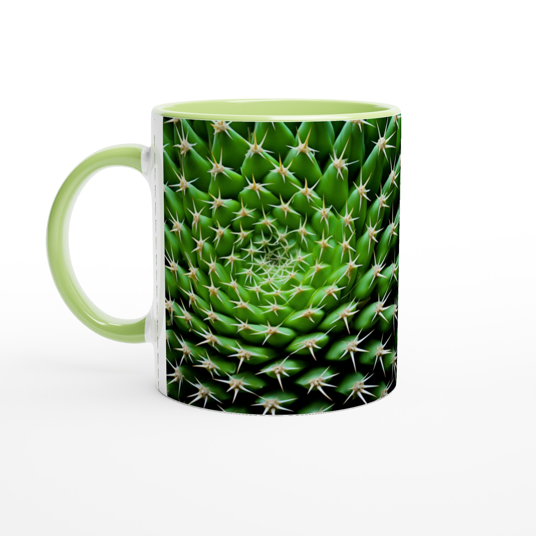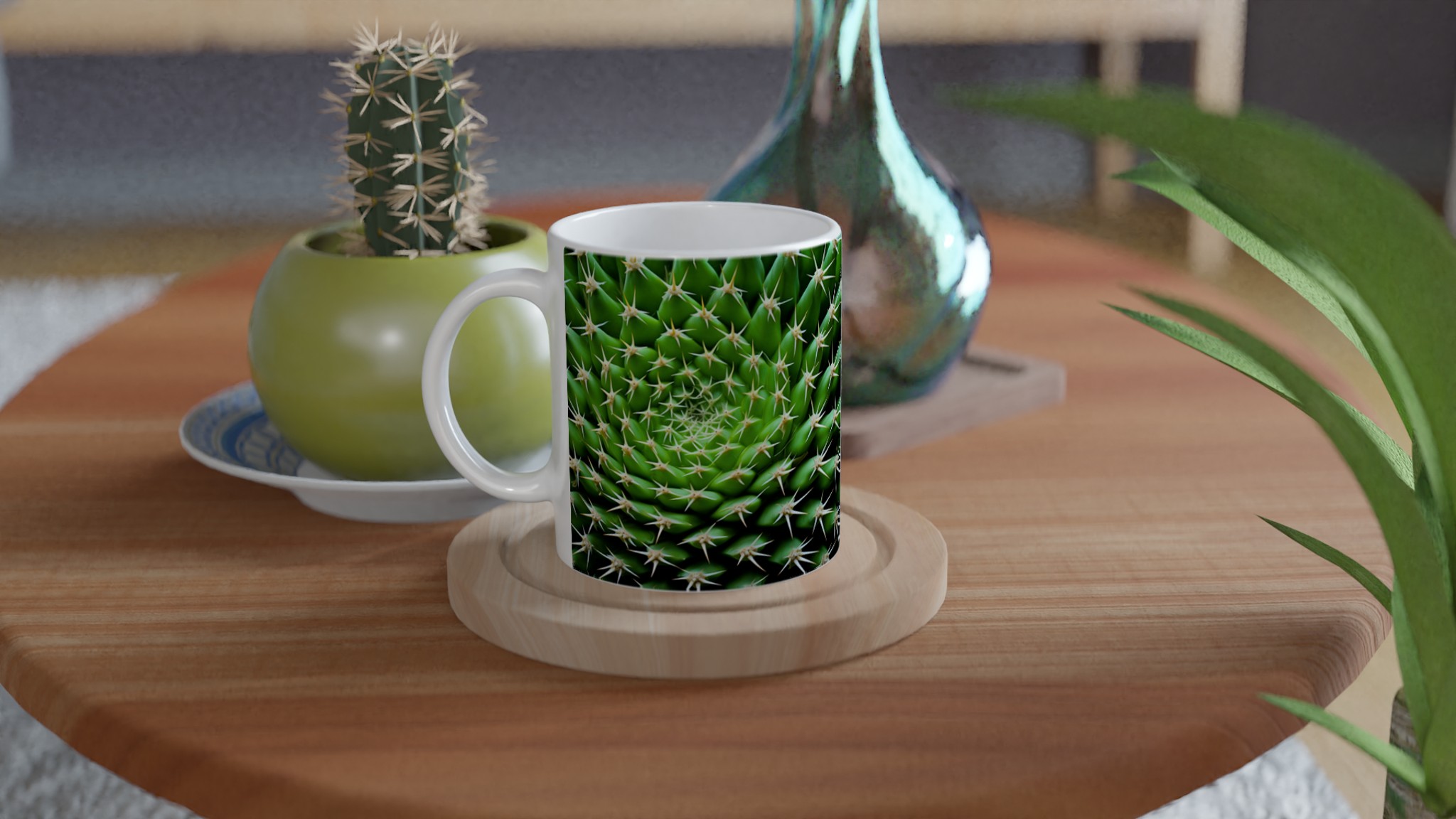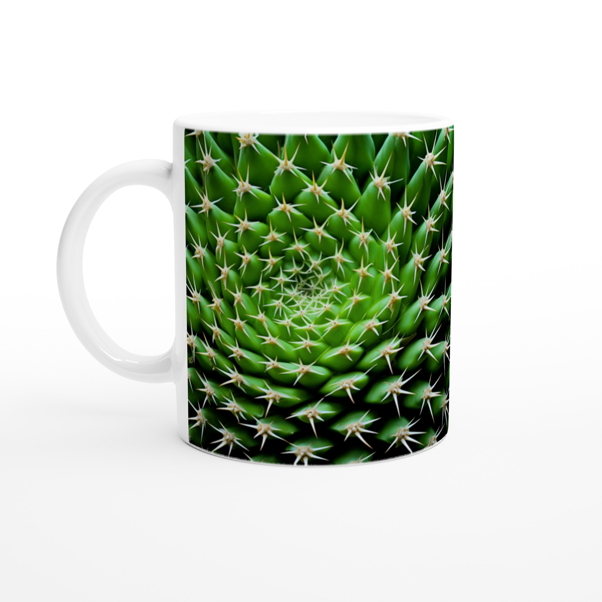 Lyft din fikastund med vår unika keramiska mugg, prydd med ett fascinerande kaktusmönster som för tankarna till naturens skönhet och intrikata design. De klara gröna nyanserna och de detaljerade taggarna ger en modern och jordnära känsla, perfekt för dig som uppskattar det lilla extra i vardagen. Den här muggen blir snabbt en favorit, oavsett om det är för morgonkaffet, en värmande kopp te på kvällen eller när du vill unna dig en stunds avkoppling.
