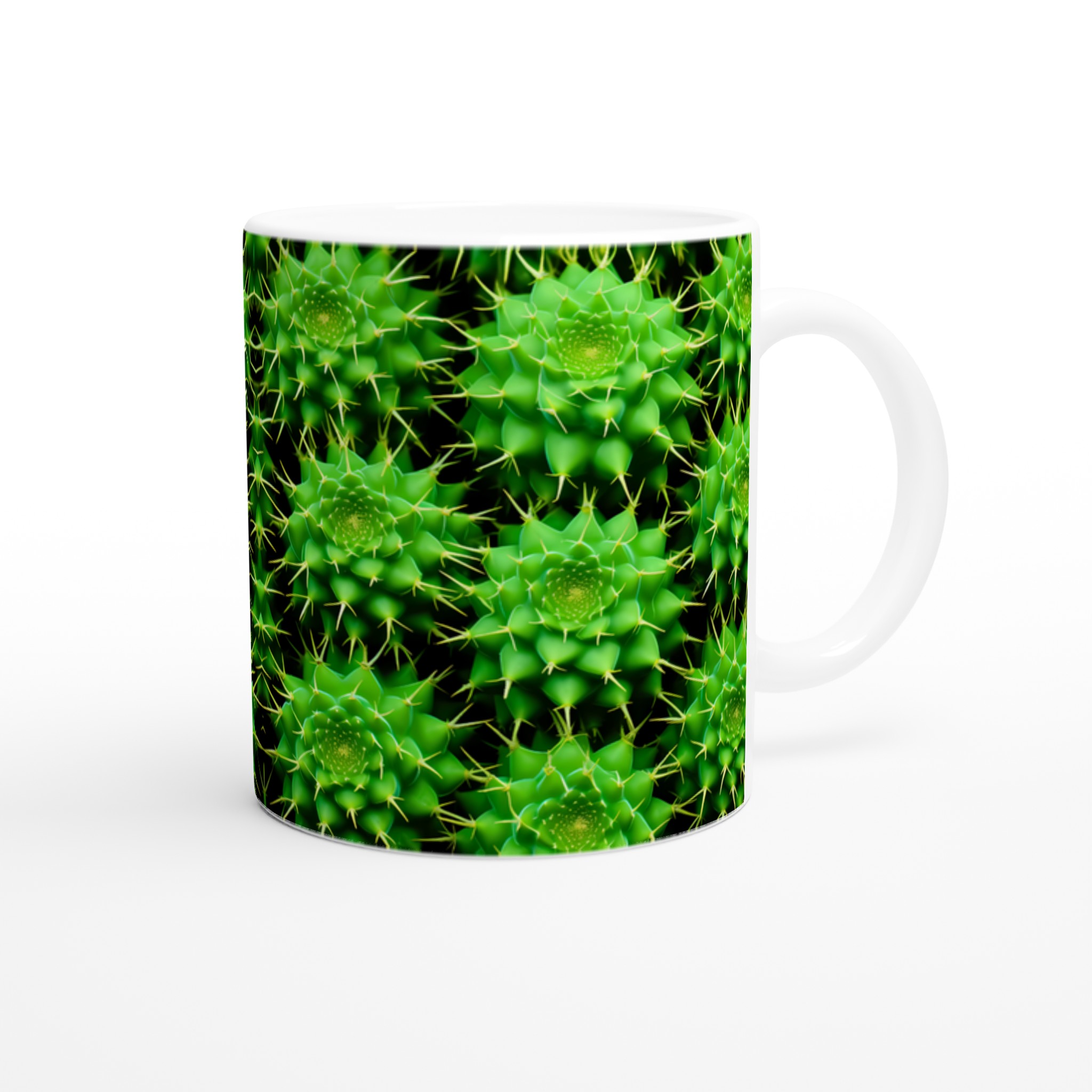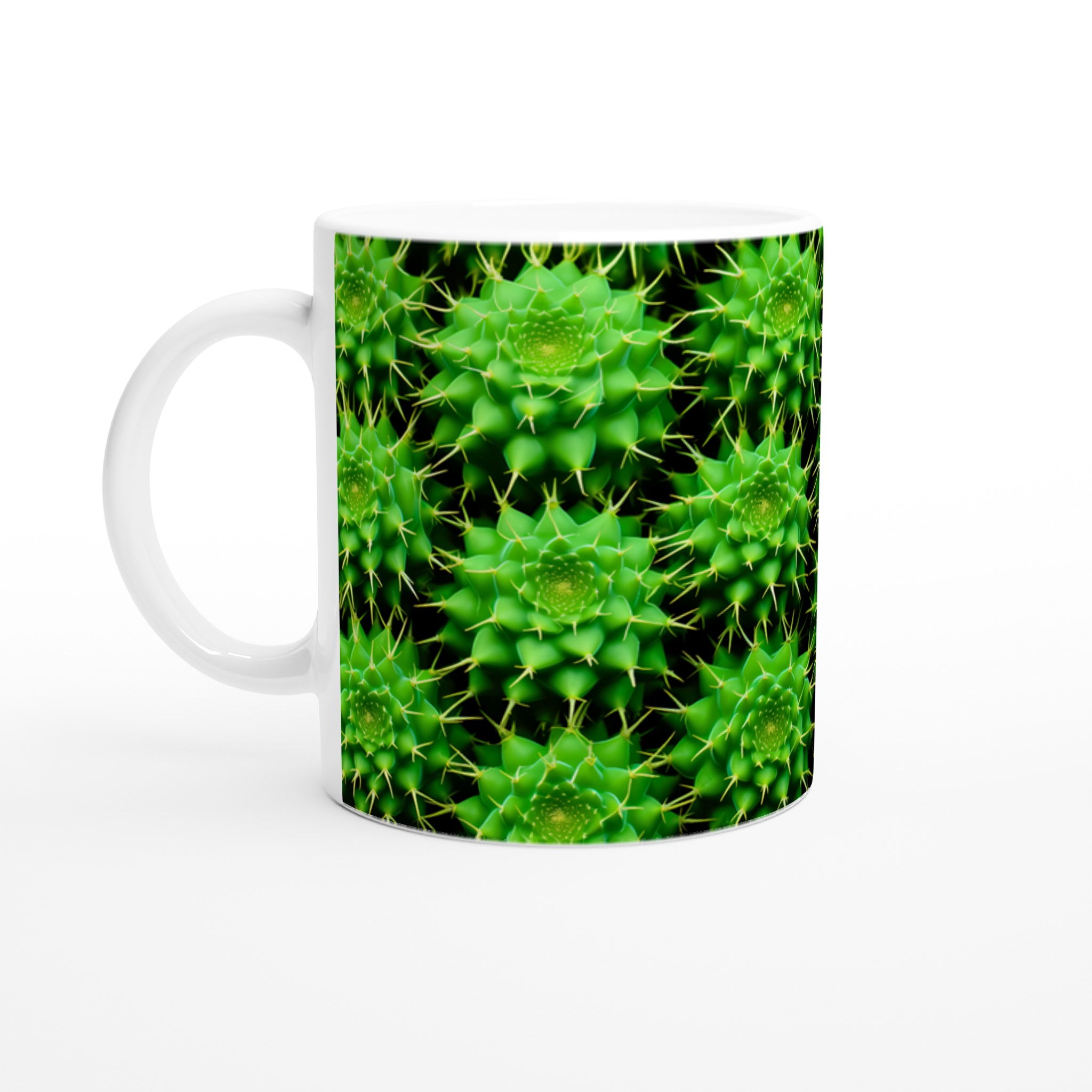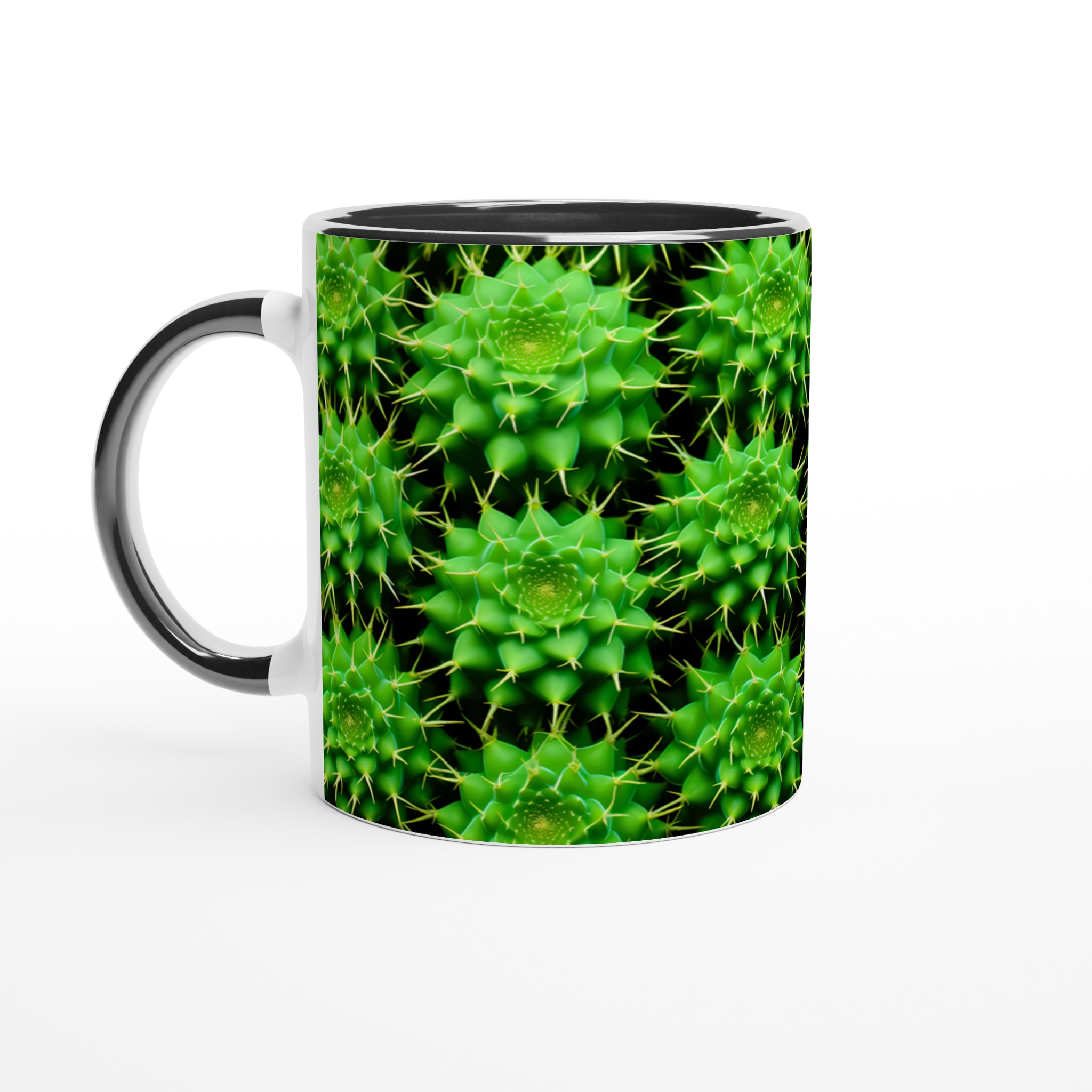 Låt den livfulla energin från kaktusens spännande mönster pryda din fikastund med vår keramiska mugg. Denna mugg blir snabbt en vardagsfavorit, perfekt för morgonkaffet, kvällens varma choklad eller när du bara vill njuta av en kopp te. Den blanka ytan får det detaljerade kaktustrycket att framhävas med klara och levande färger, som håller sig fina även efter många turer i mikron och diskmaskinen.