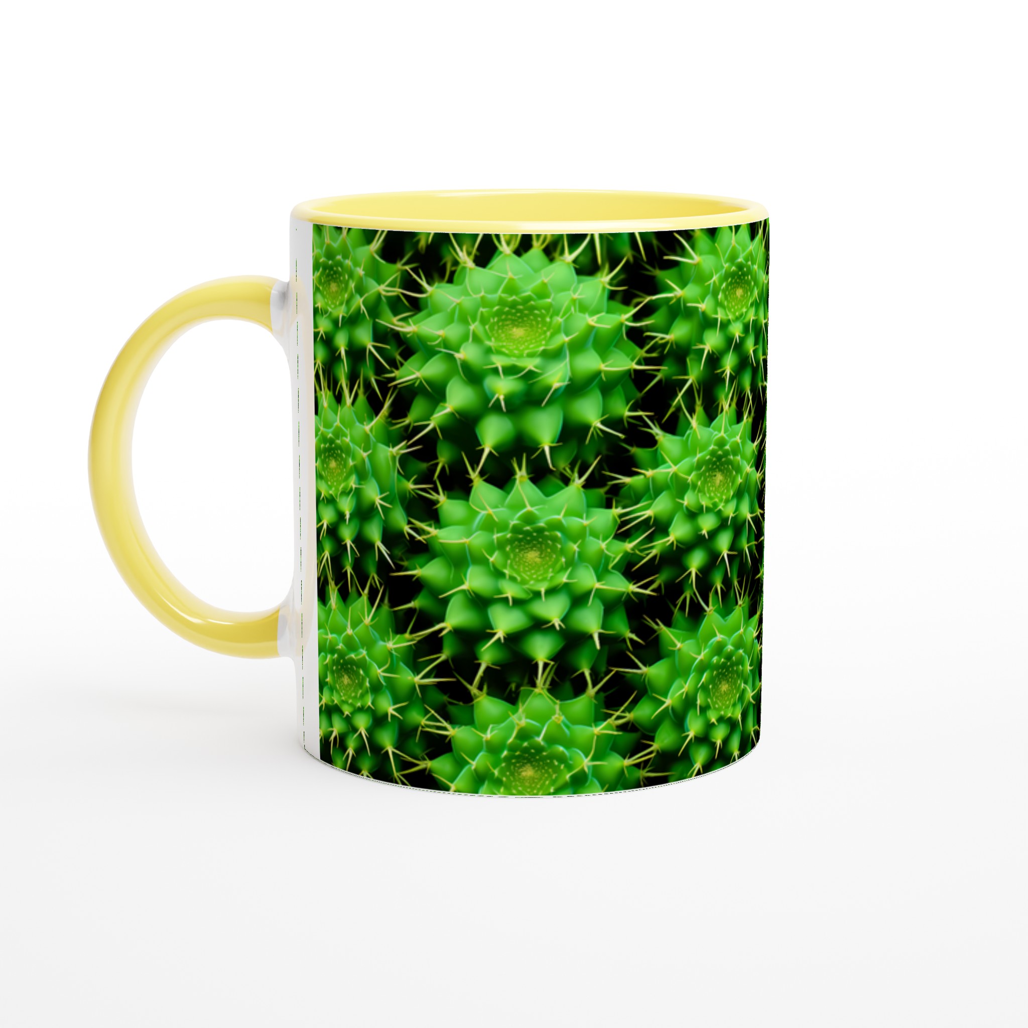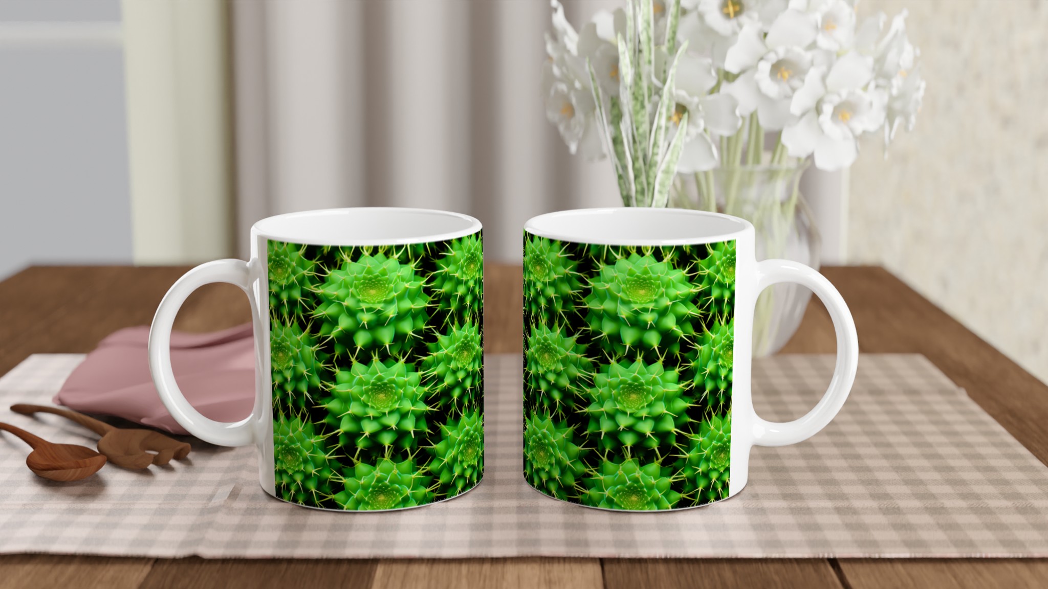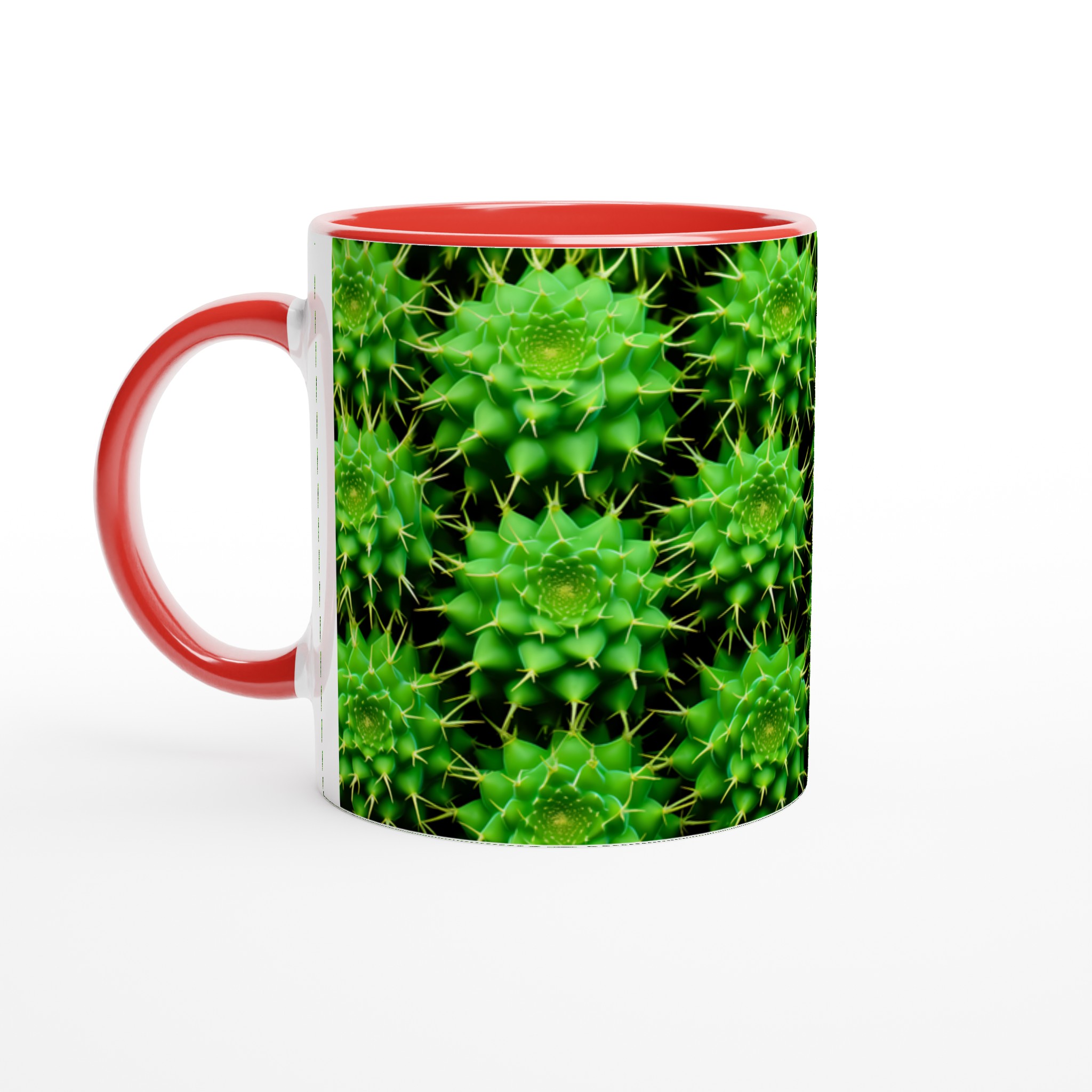 Låt den livfulla energin från kaktusens spännande mönster pryda din fikastund med vår keramiska mugg. Denna mugg blir snabbt en vardagsfavorit, perfekt för morgonkaffet, kvällens varma choklad eller när du bara vill njuta av en kopp te. Den blanka ytan får det detaljerade kaktustrycket att framhävas med klara och levande färger, som håller sig fina även efter många turer i mikron och diskmaskinen.