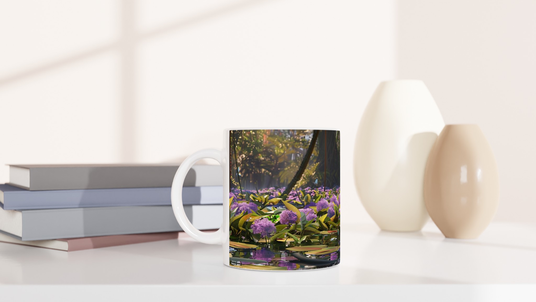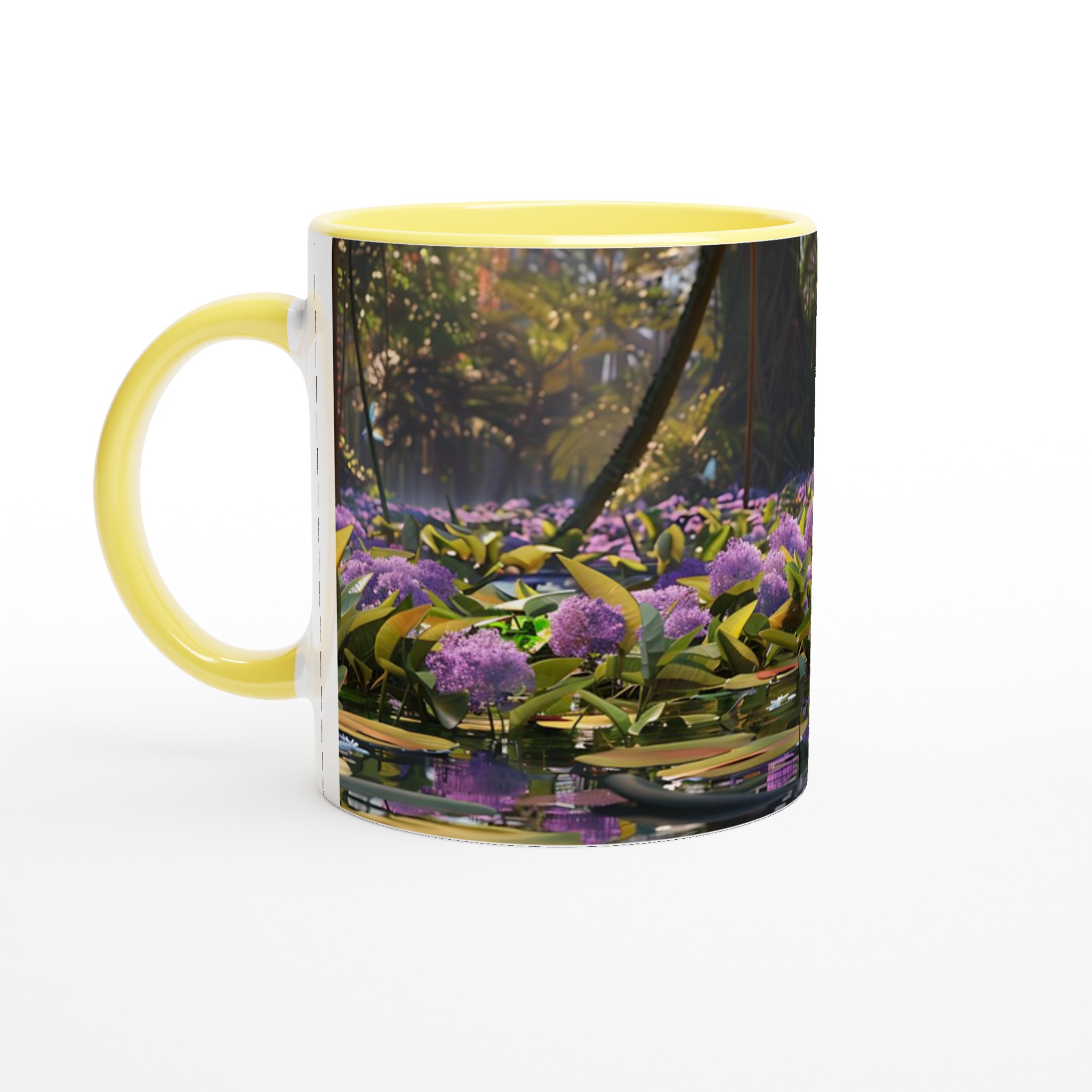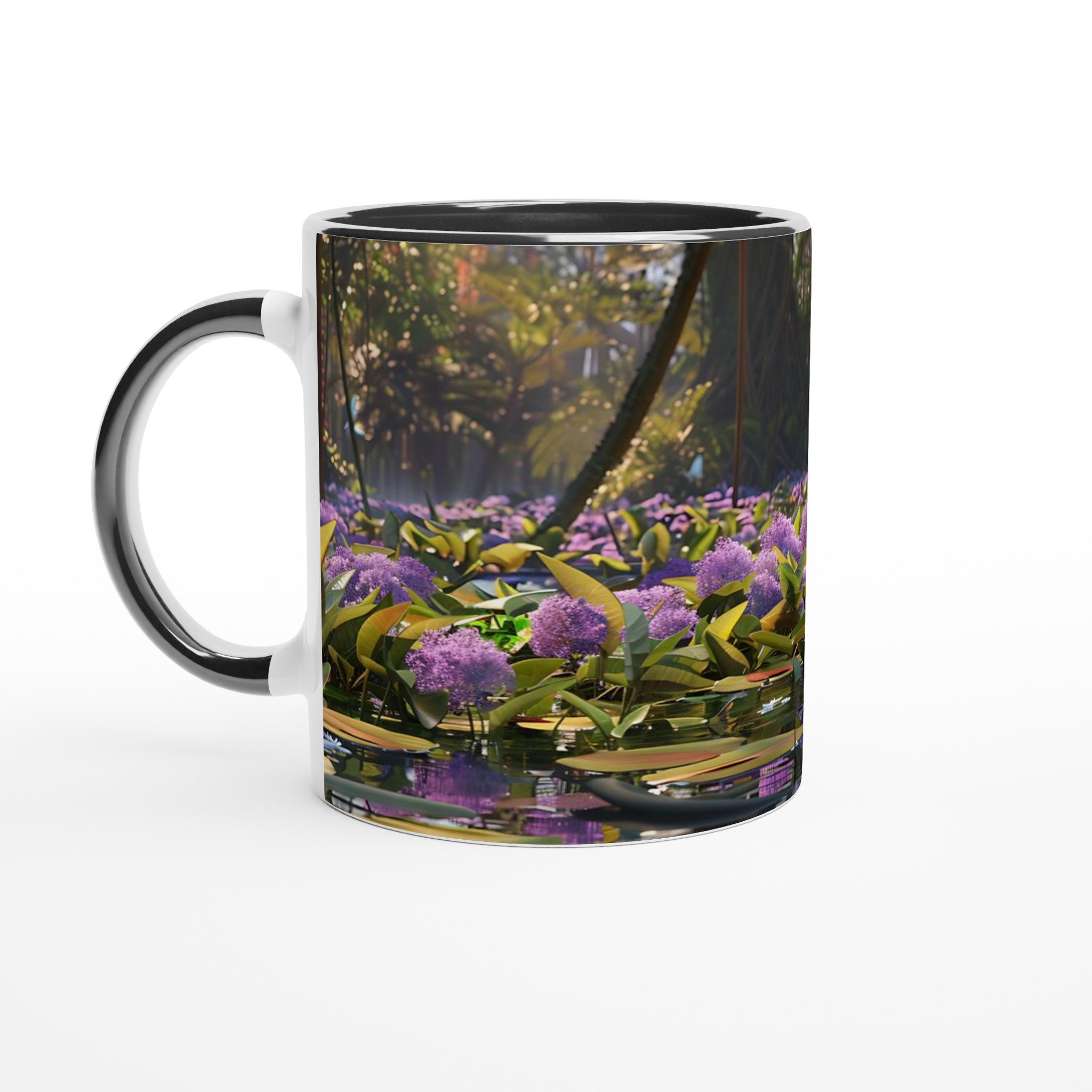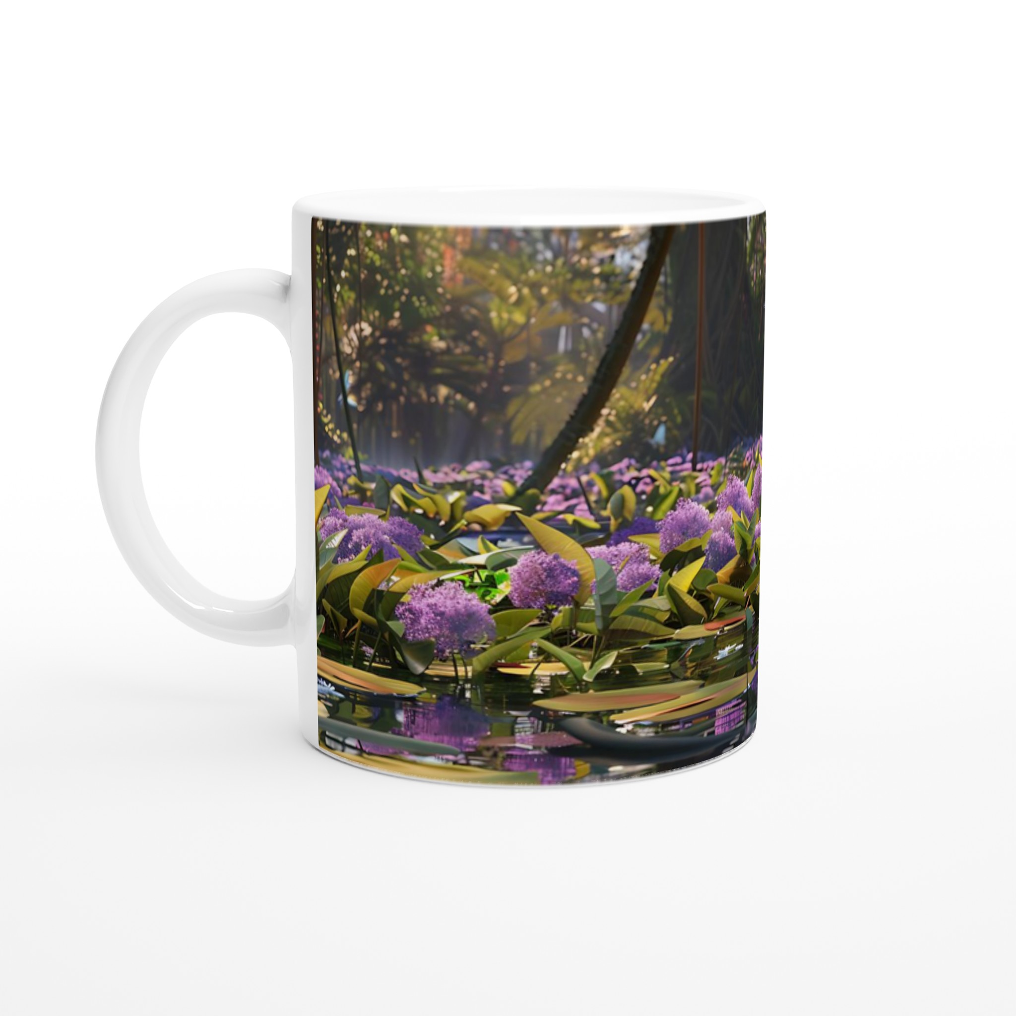 Fånga lugnet och charmen från djungelns hjärta med vår unika keramiska mugg, prydd med en förtrollande bild av en kapybara som vilar fridfullt bland lila blommor och flytande näckrosor. Denna stilrena keramiska mugg blir snabbt en vardagsfavorit, perfekt för morgonkaffet, kvällens varma choklad eller när du bara vill njuta av en kopp te.