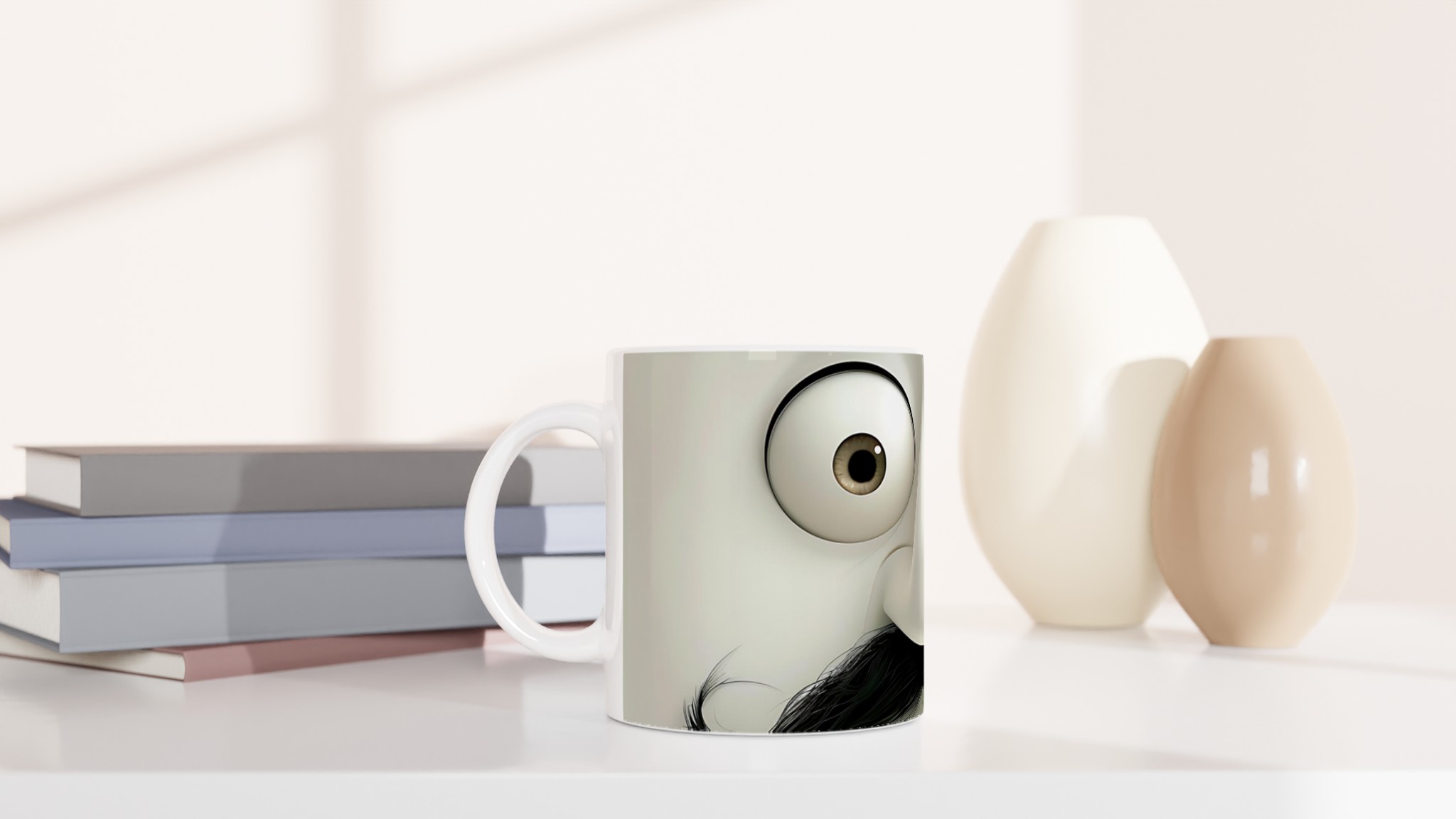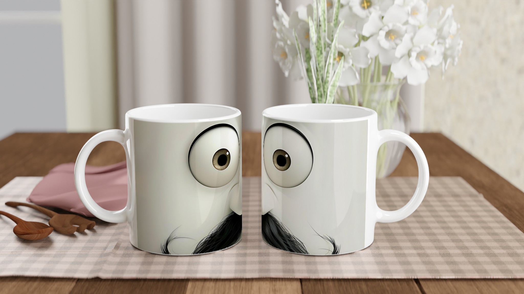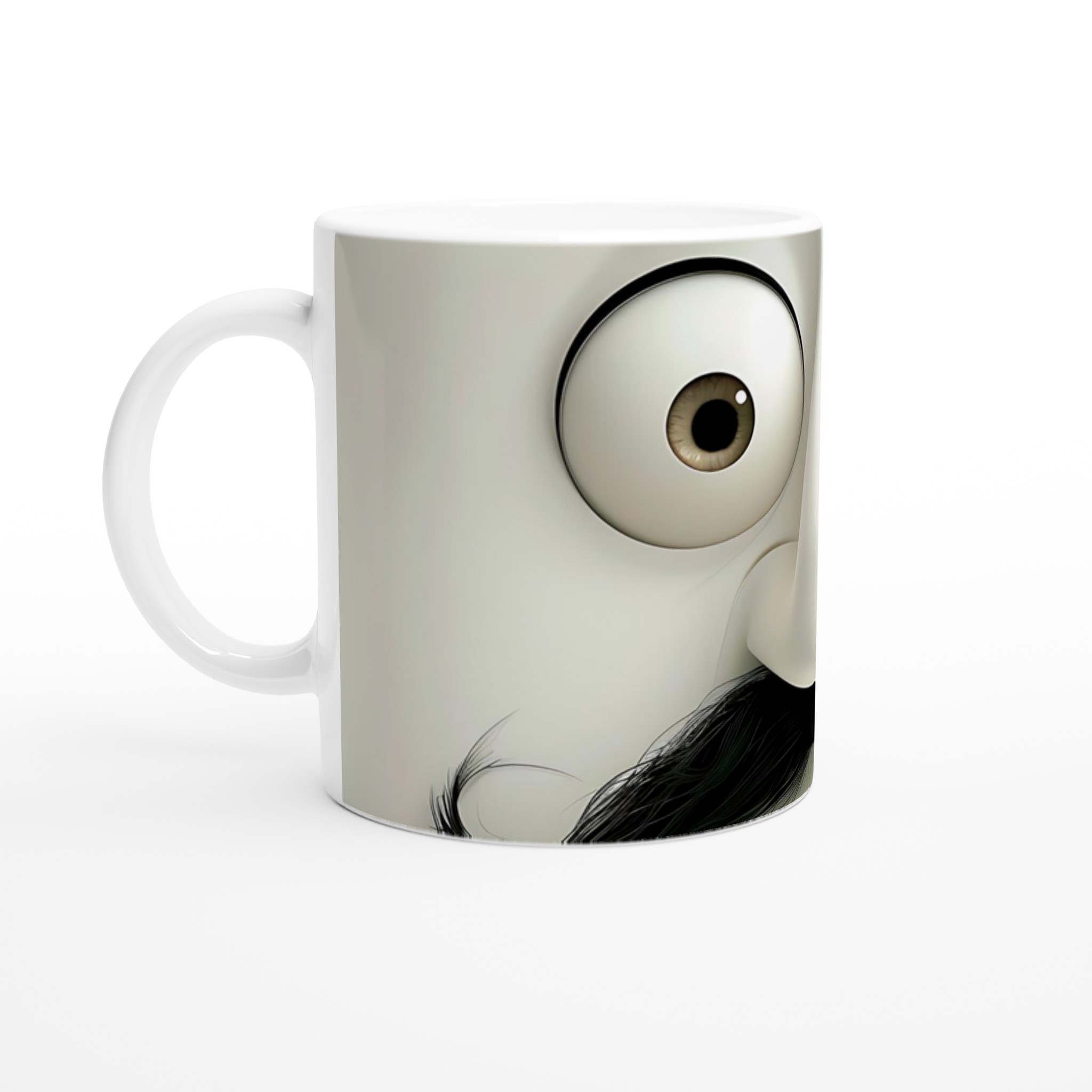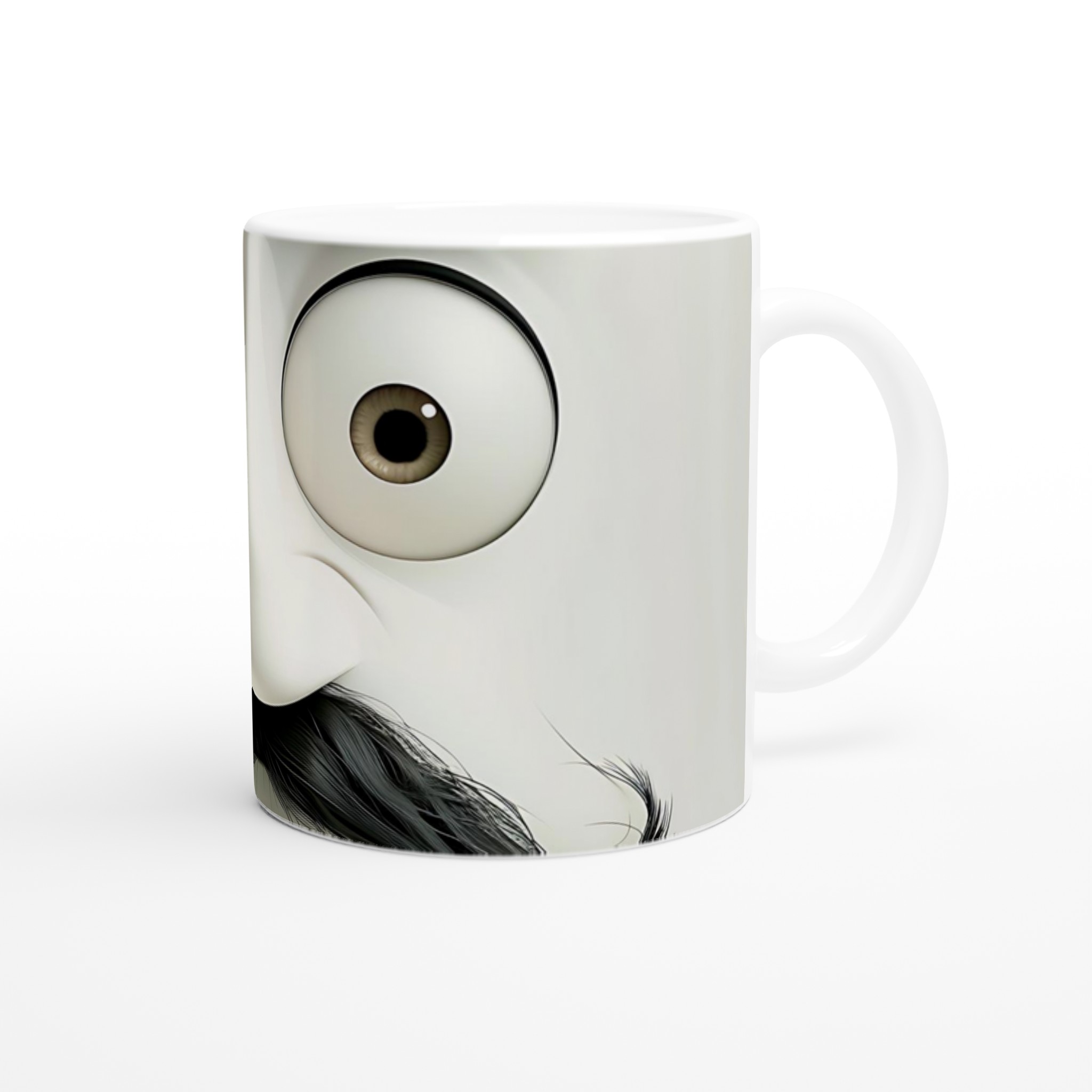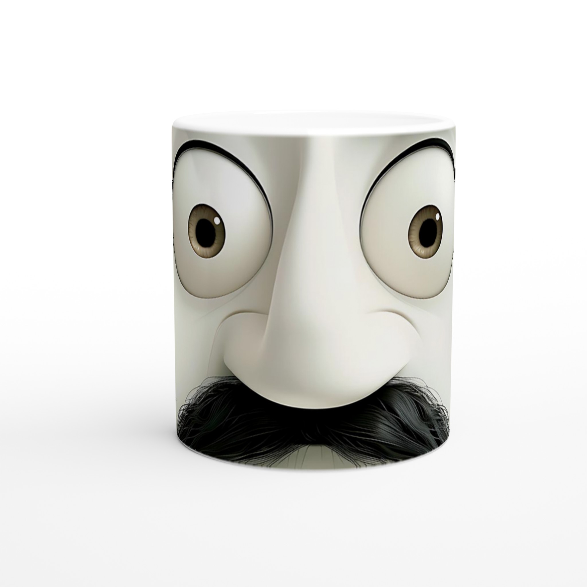 Inspirerad av den charmiga karaktären med de uttrycksfulla ögonen och den eleganta mustaschen, blir denna mugg en omedelbar konversationsstartare och en källa till glädje. Den blanka vita ytan ger ett skarpt och levande tryck som verkligen sticker ut, oavsett om det är en personlig design, ett roligt citat eller en present till någon du tycker om.