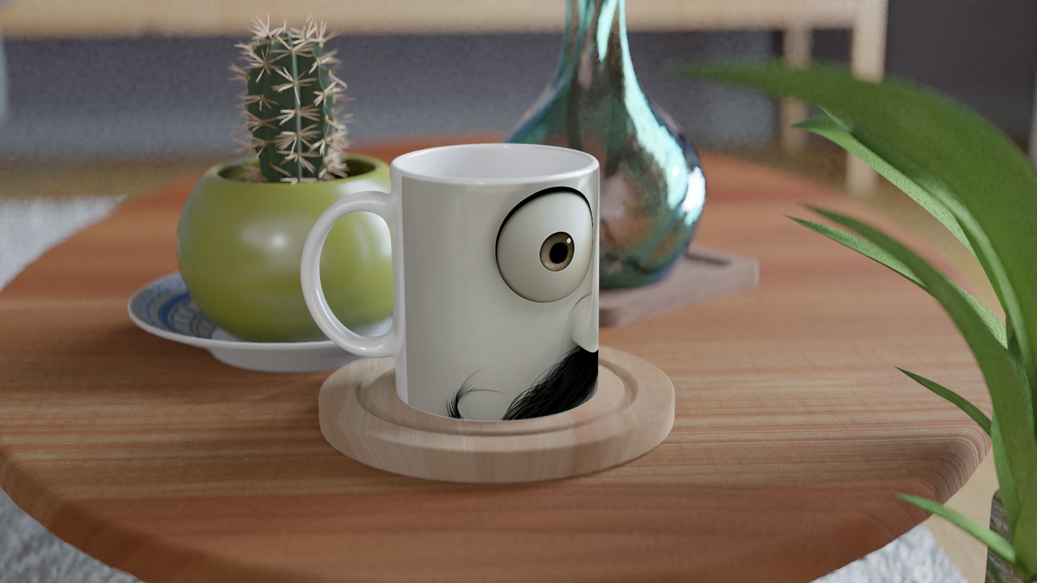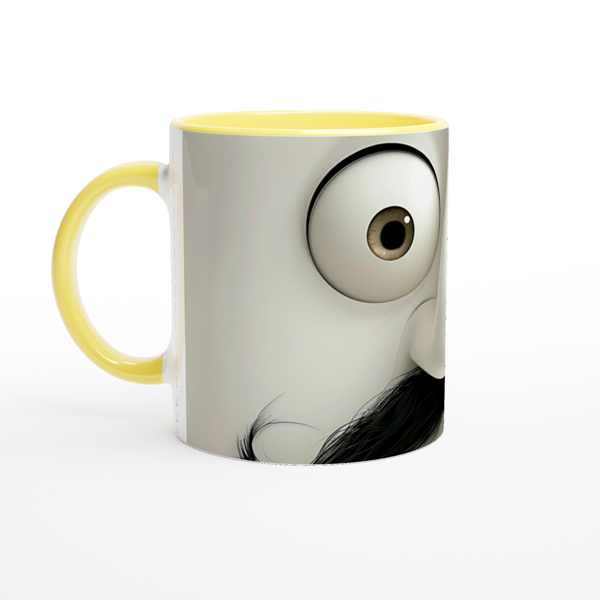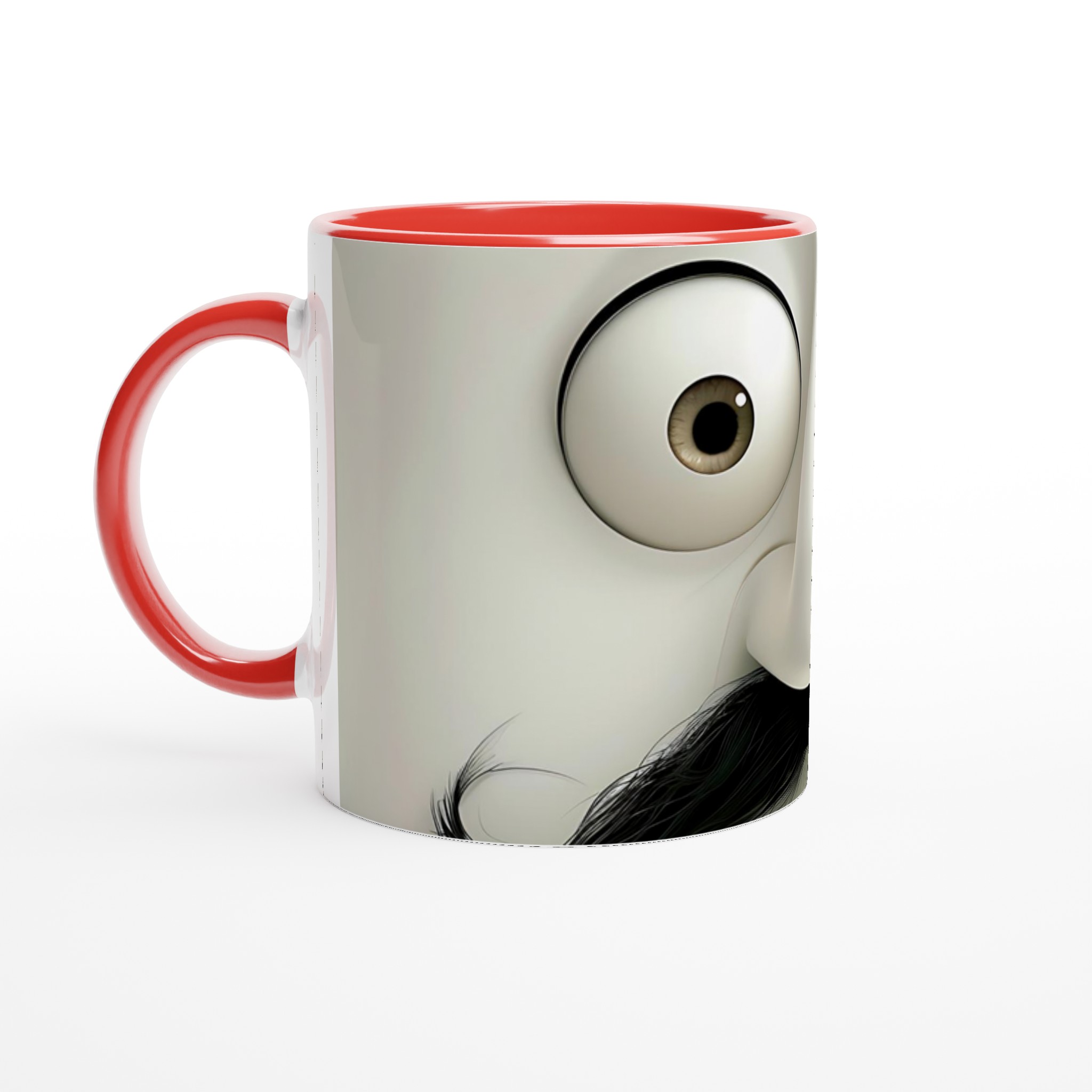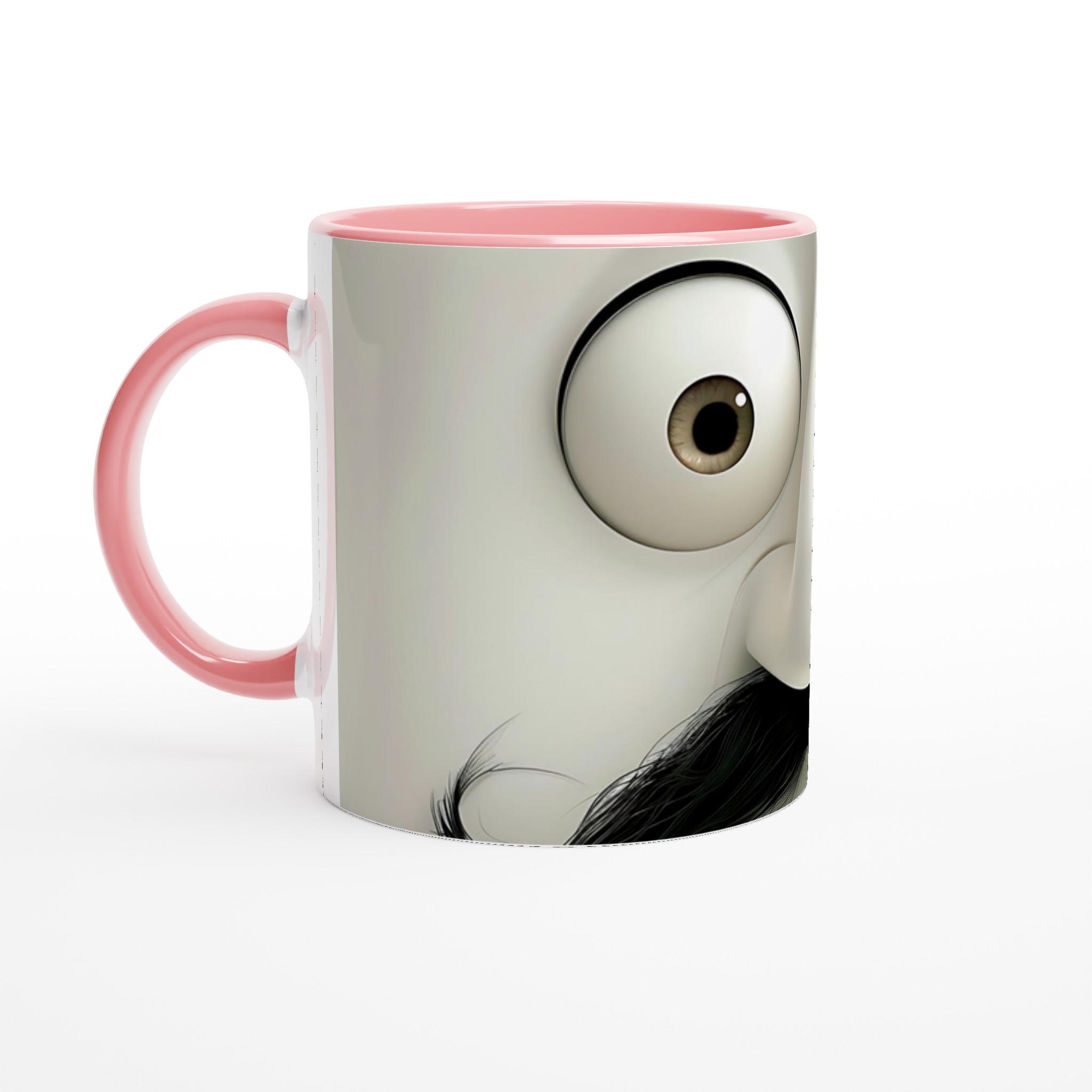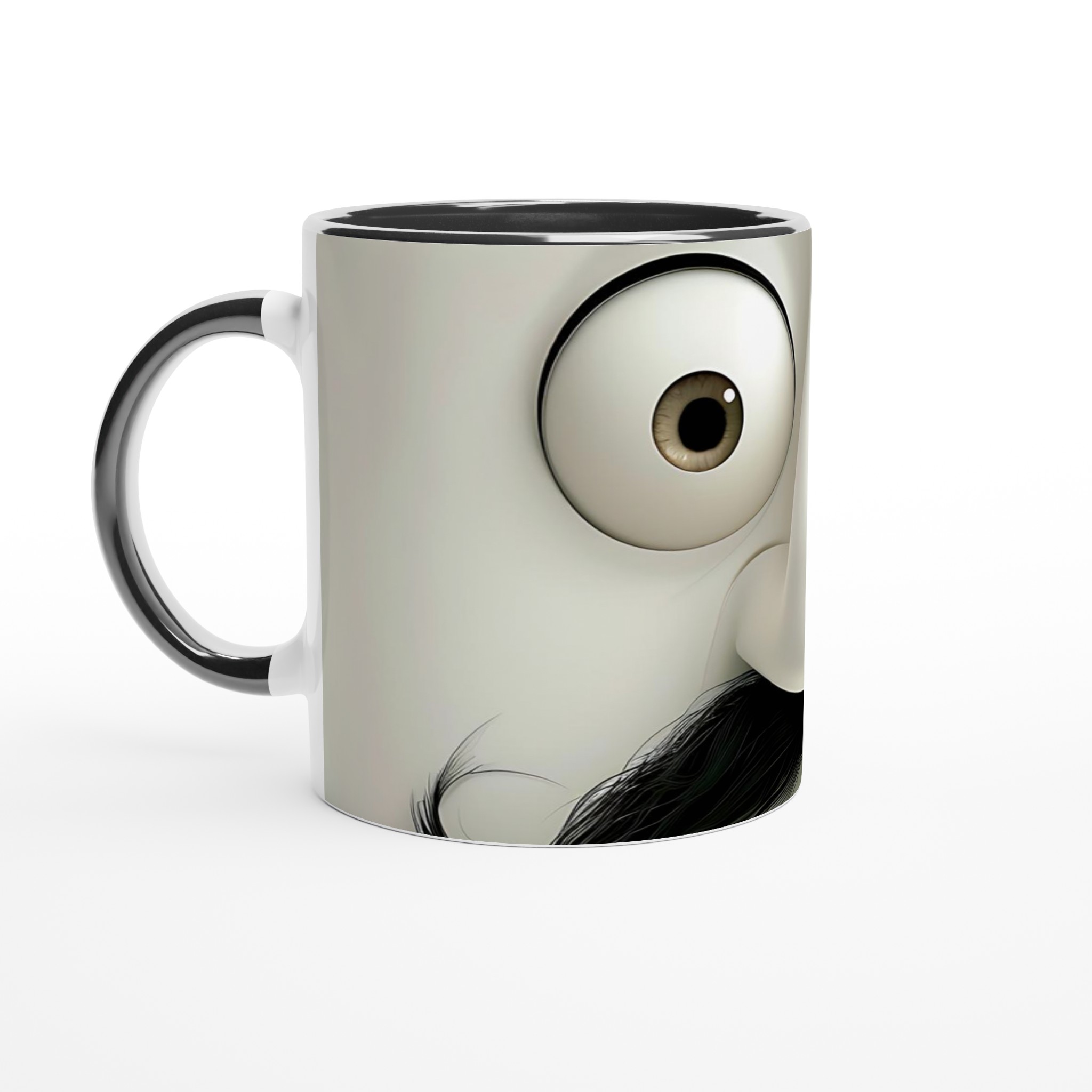 Inspirerad av den charmiga karaktären med de uttrycksfulla ögonen och den eleganta mustaschen, blir denna mugg en omedelbar konversationsstartare och en källa till glädje. Den blanka vita ytan ger ett skarpt och levande tryck som verkligen sticker ut, oavsett om det är en personlig design, ett roligt citat eller en present till någon du tycker om.