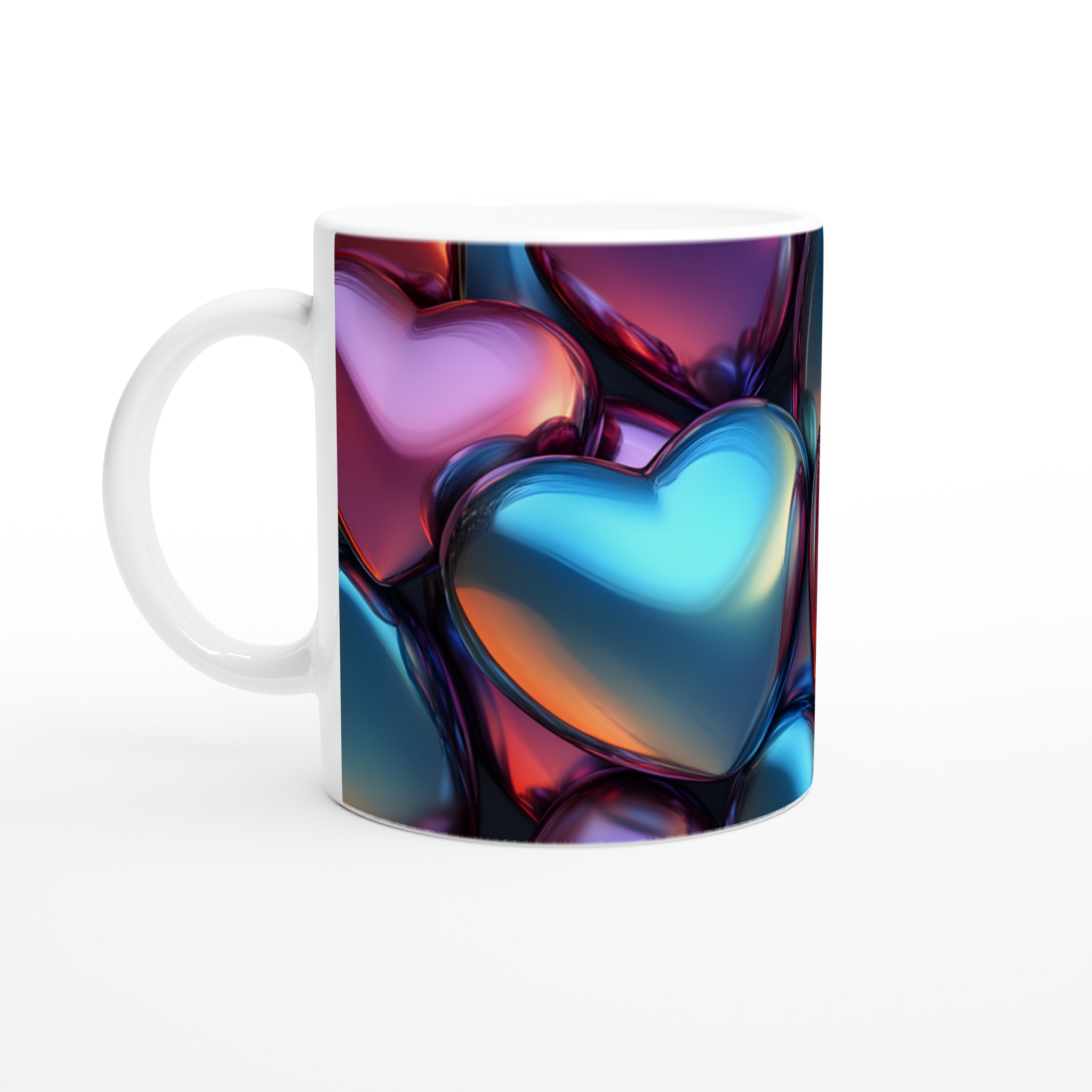 Lyft dina fikastunder med denna förtrollande keramikmugg, prydd med ett dynamiskt mönster av glänsande hjärtan i skimrande blåa, rosa och gyllene nyanser. Varje hjärta reflekterar ljuset på ett unikt sätt, vilket skapar en känsla av lyx och lekfullhet som är perfekt för att sprida glädje. Oavsett om det är morgonkaffet, en värmande kopp te eller en härlig varm choklad, blir varje sipp en upplevelse.