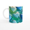 Fånga kärlekens skimmer varje dag med denna unika keramikmugg! Inspirerad av de lugnande blå och grönskimrande glashjärtan, är denna mugg designad för att bringa en känsla av ro och skönhet till dina fikastunder. Den blanka vita ytan gör att trycken framträder klart och färgstarkt, vilket gör muggen till en riktig favorit i vardagen, perfekt för ditt morgonkaffe, en värmande kopp te eller en härlig varm choklad.