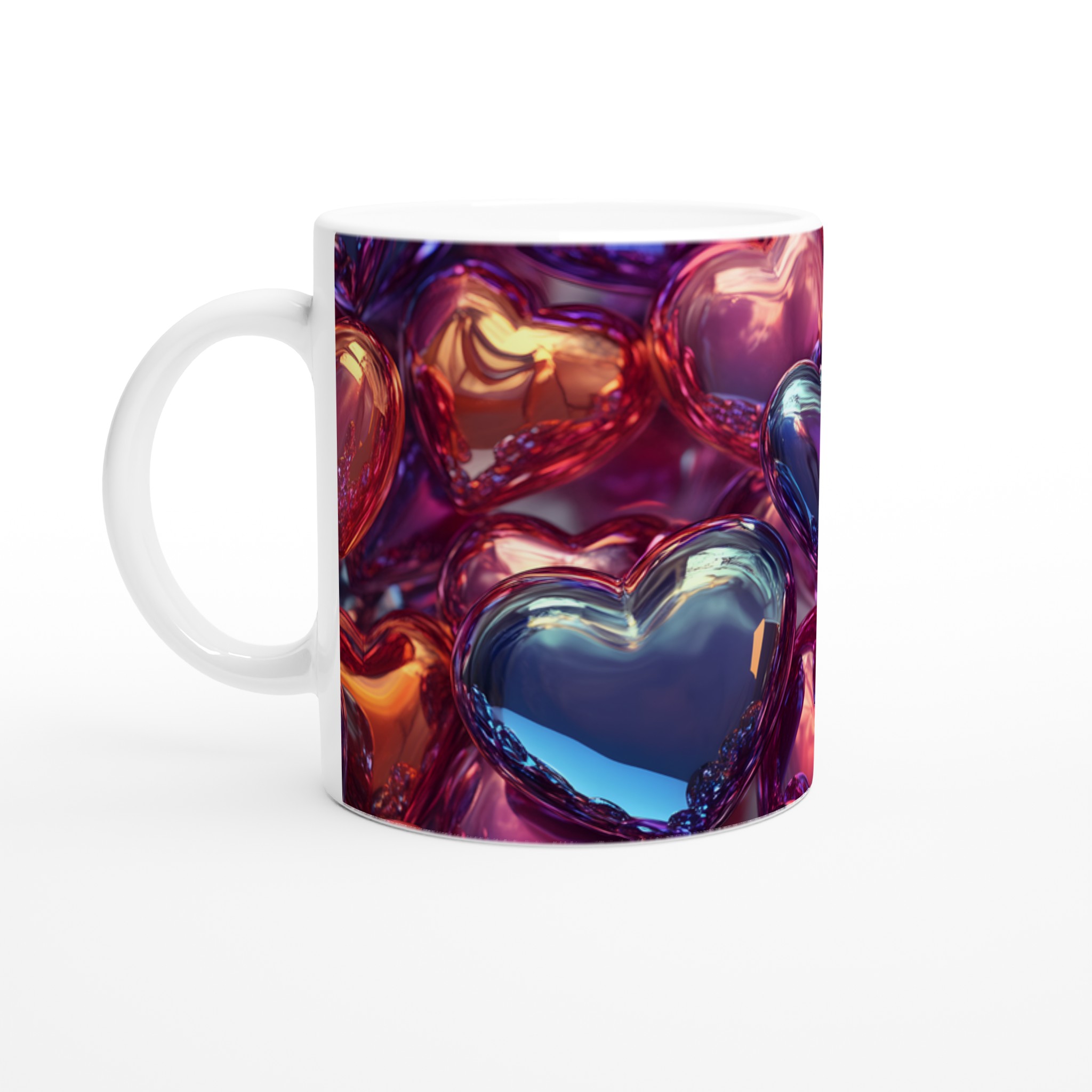 Låt varje klunk bli en kärleksfull gest med vår ”Kärleksfull Muggen” – en hyllning till glädje och värme. Denna stilrena och vackra keramikmugg är perfekt för alla dagens stunder – morgonkaffet, en värmande kopp te eller en härlig varm choklad. Den blanka vita ytan gör att trycken framträder klart och färgstarkt, vilket gör muggen till en riktig favorit i vardagen. Varje hjärta på denna mugg speglar livets färger, från djupa purpurtoner till strålande guld, och påminner dig om att omfamna varje ögonblick.