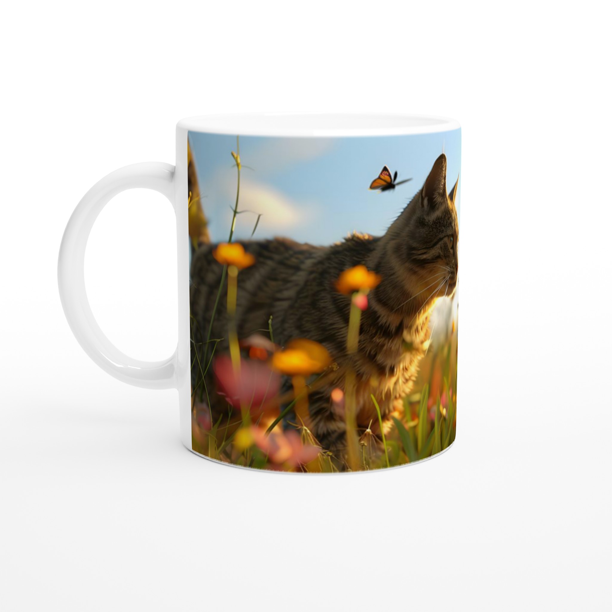 Föreställ dig en lugn morgon, där solens första strålar väcker naturen till liv. Vår keramiska mugg ”Katt och Fjärilar” fångar den magiska känslan av en nyfiken katt som möter lekfulla fjärilar i ett somrigt blomsterfält. Denna stilrena och vackra keramikmugg är perfekt för alla dagens stunder – morgonkaffet, en värmande kopp te eller en härlig varm choklad.