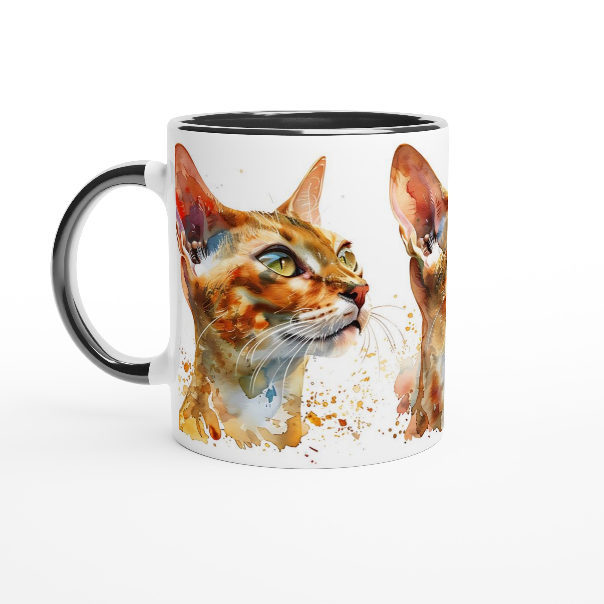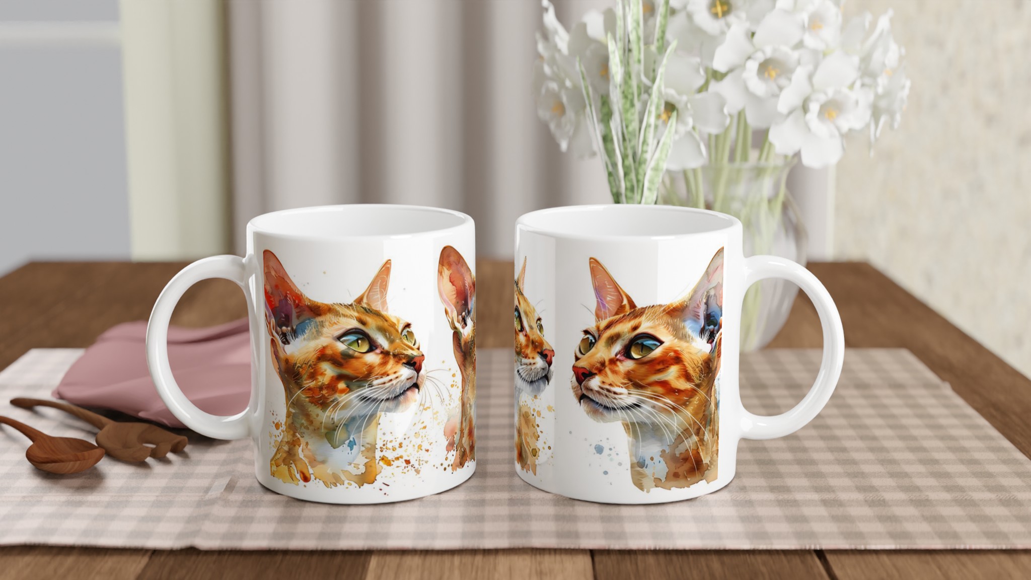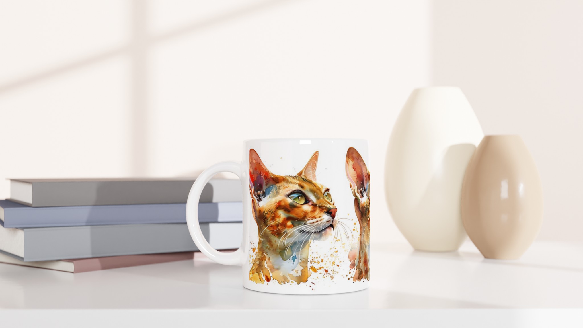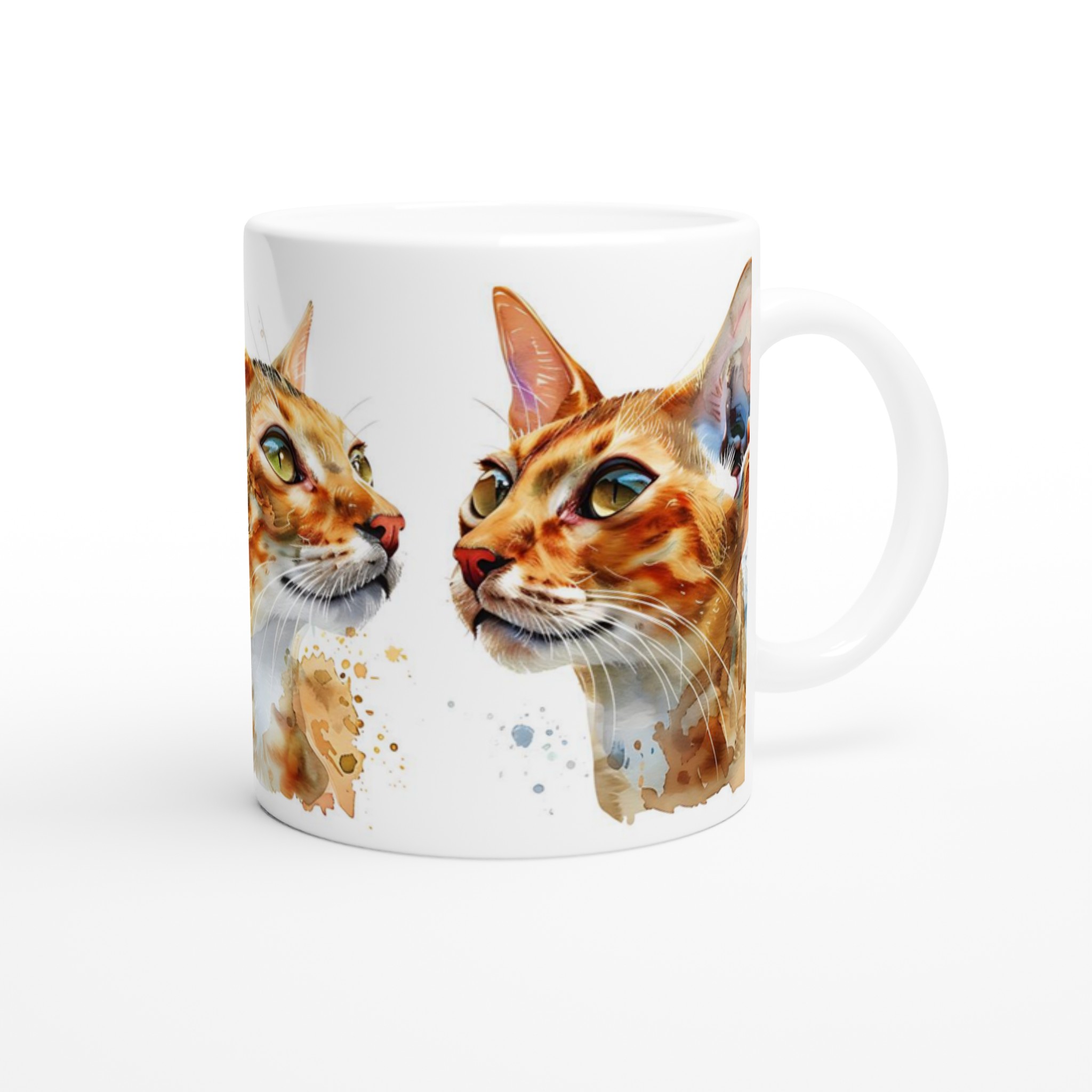 Våra charmiga kattmotiv, målade i en levande akvarellstil, fångar katternas nyfikenhet och elegans. Välj din favoritfärg för muggen för att ytterligare anpassa din unika design. Välj mellan en regnbåge av färger som Ceramic White, Ceramic Yellow, Ceramic Pink, Ceramic Green, Ceramic Red, Ceramic Black eller Ceramic Blue.