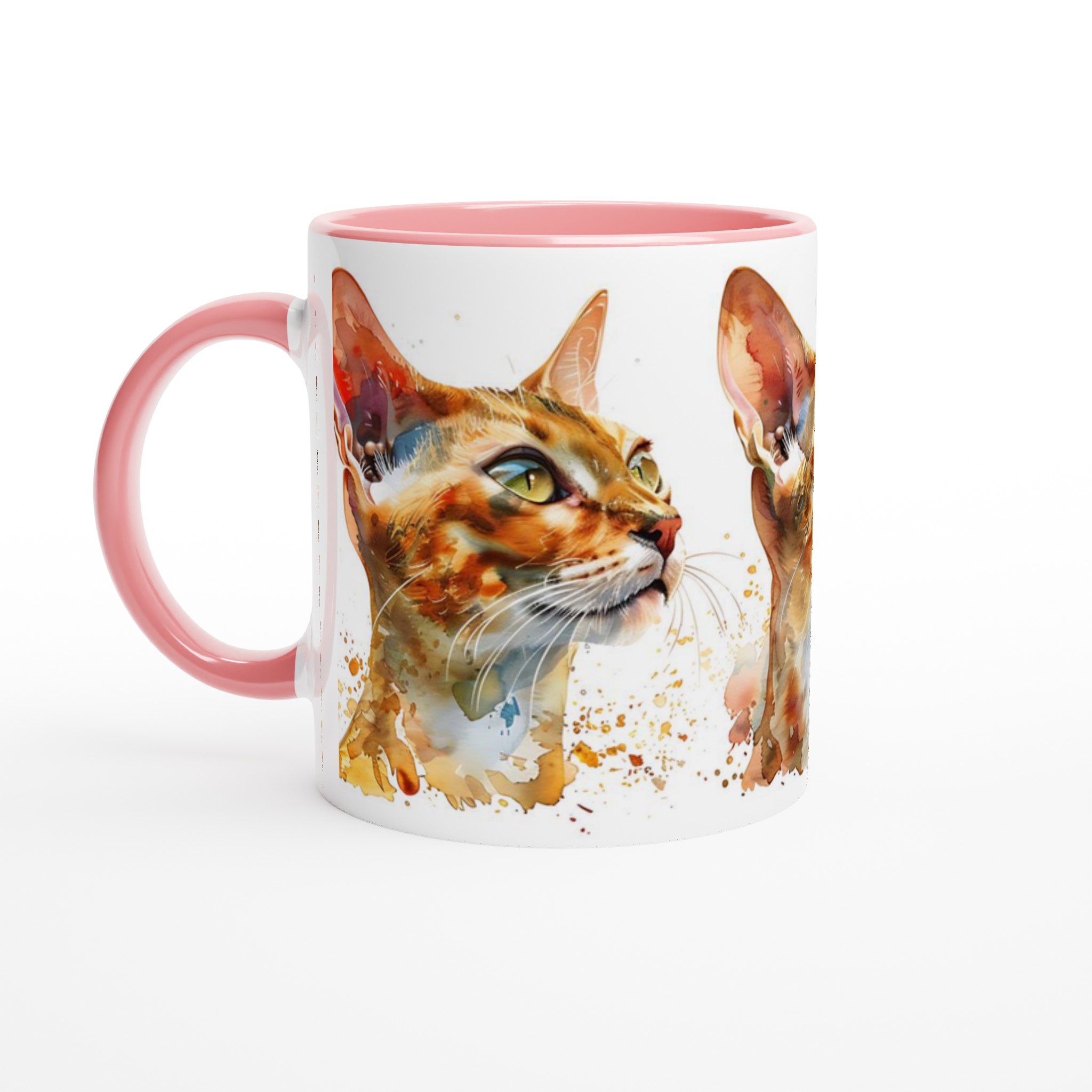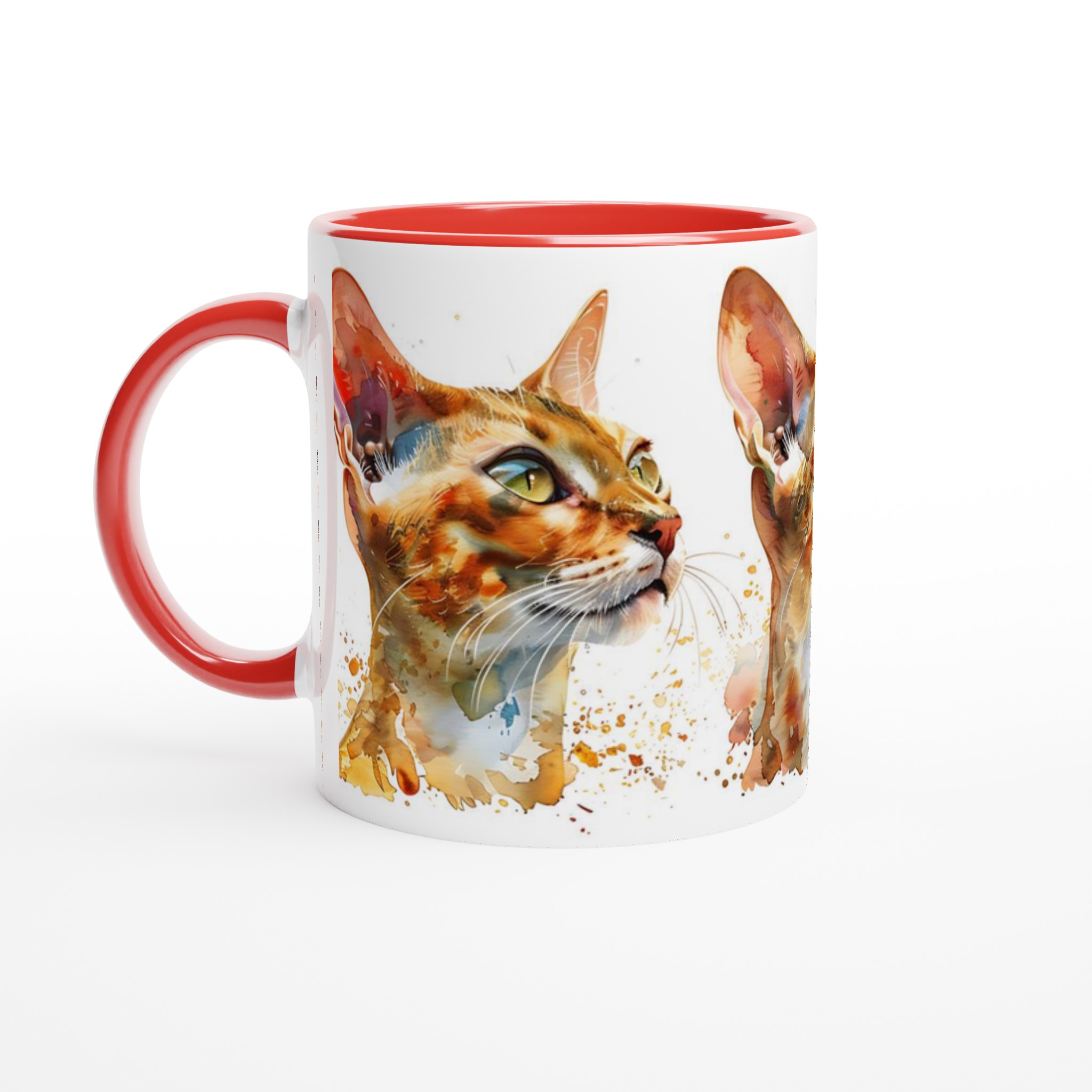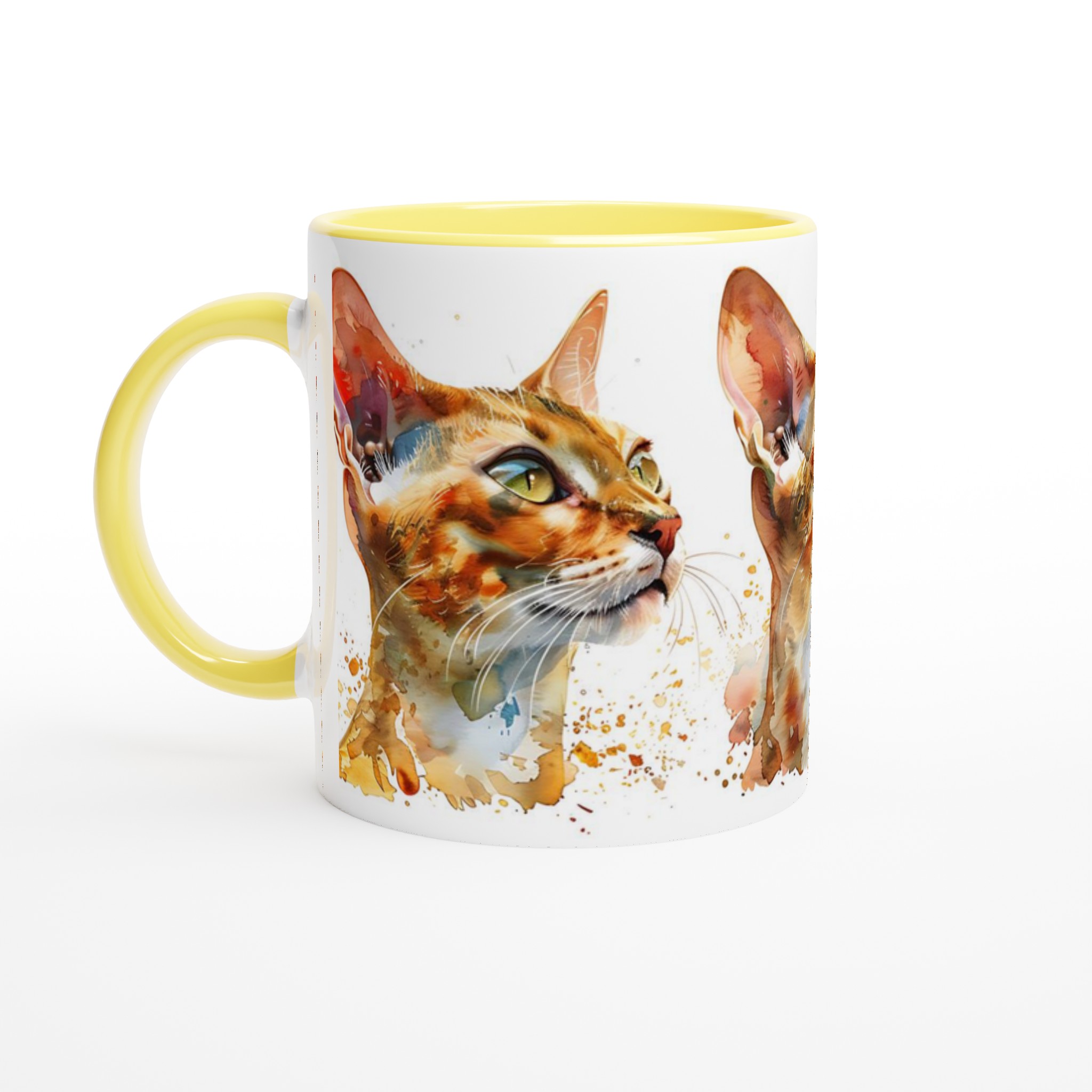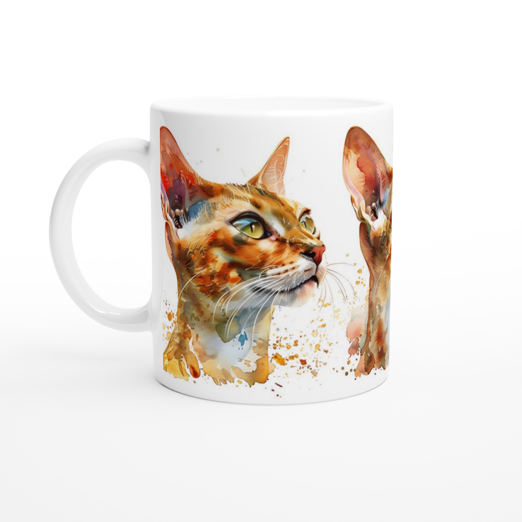 Våra charmiga kattmotiv, målade i en levande akvarellstil, fångar katternas nyfikenhet och elegans. Välj din favoritfärg för muggen för att ytterligare anpassa din unika design. Välj mellan en regnbåge av färger som Ceramic White, Ceramic Yellow, Ceramic Pink, Ceramic Green, Ceramic Red, Ceramic Black eller Ceramic Blue.