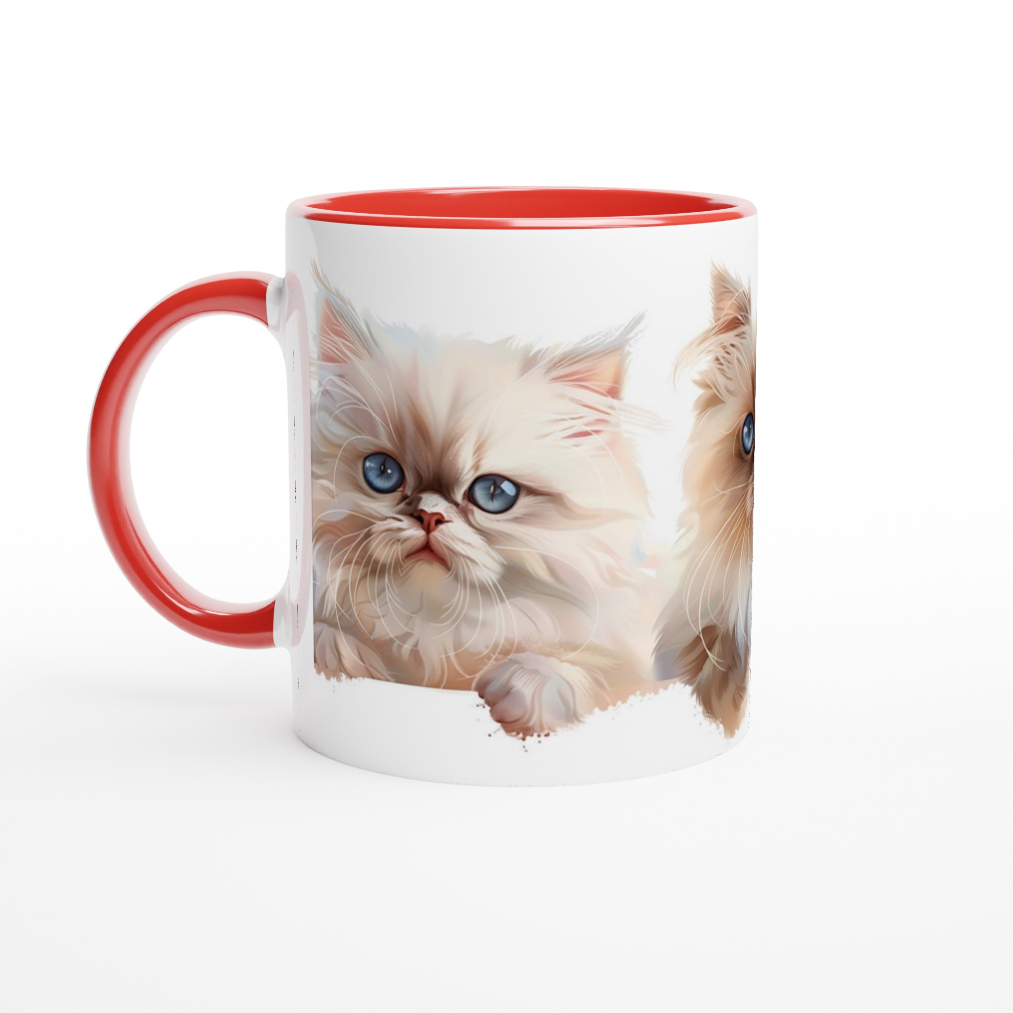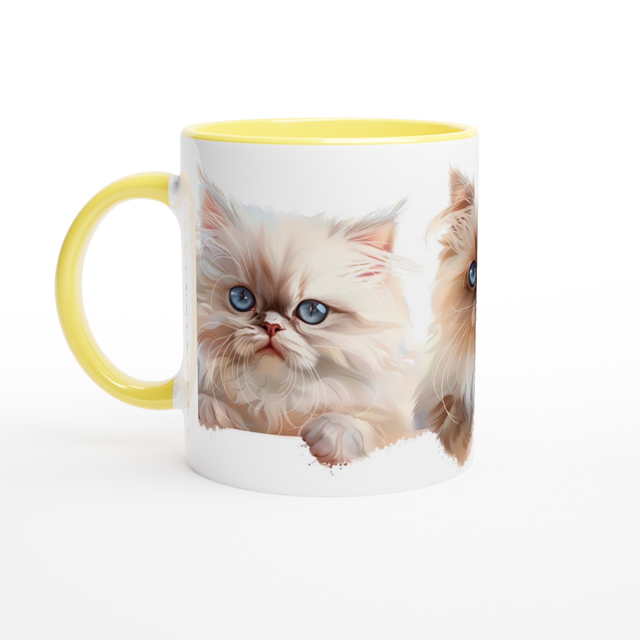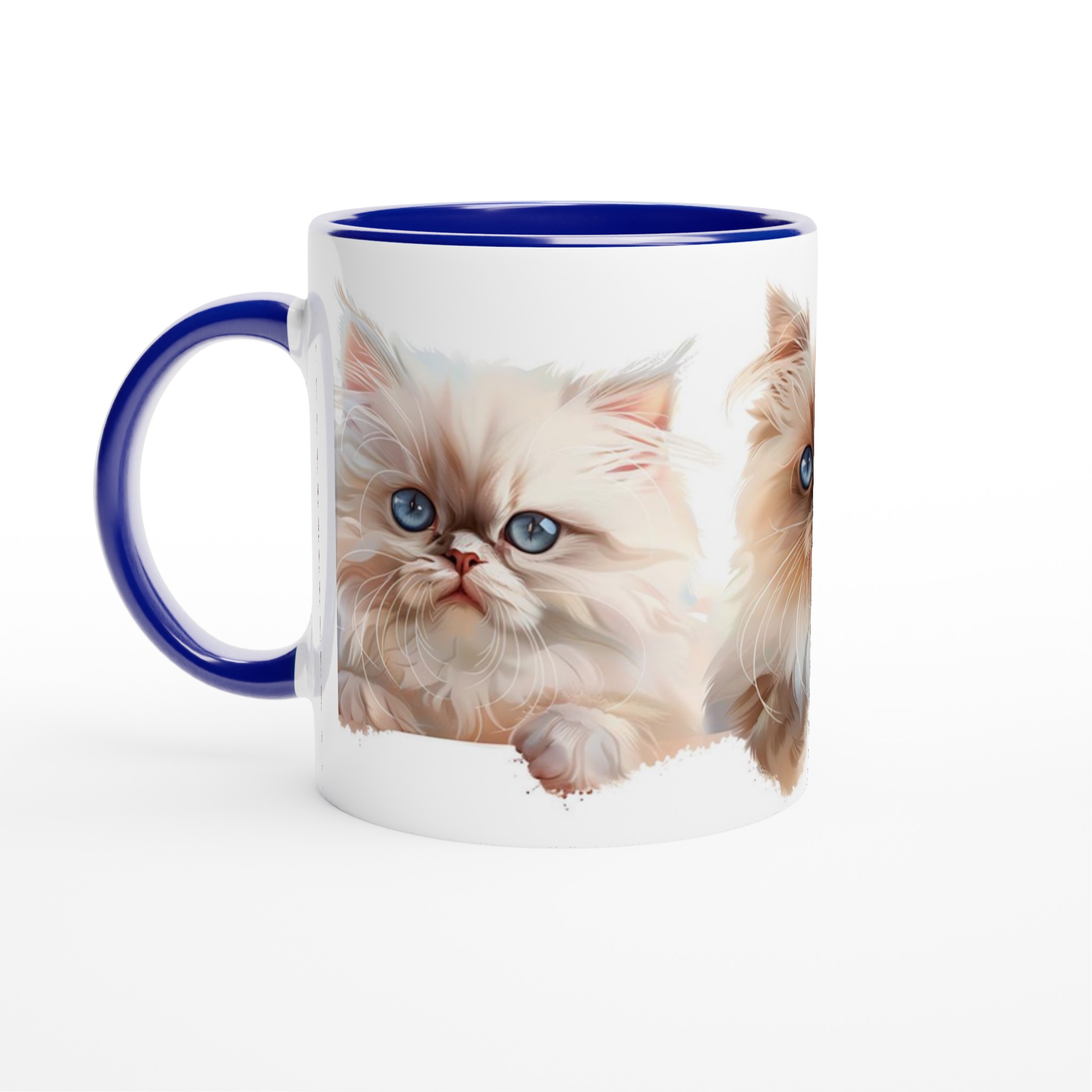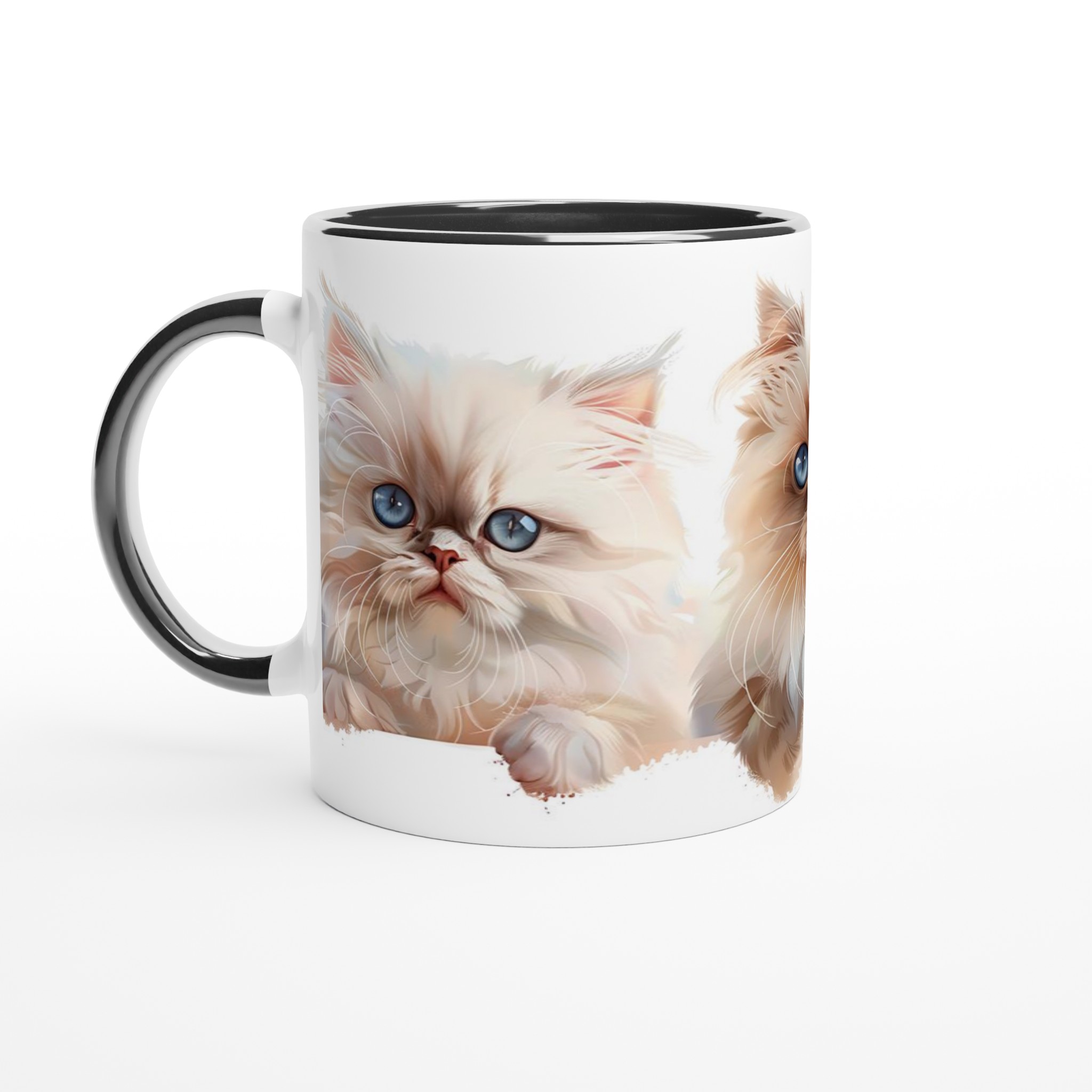 Låt dessa oemotståndliga kattungar med sina hypnotiserande blå ögon förgylla din fikapaus! Den här stilrena keramiska muggen blir snabbt en vardagsfavorit, perfekt för morgonkaffet, kvällens varma choklad eller när du bara vill njuta av en kopp te. Den blanka ytan gör att trycket med de söta kattungarna framhävs med klara och levande färger, som håller sig fina även efter många turer i mikron och diskmaskinen.