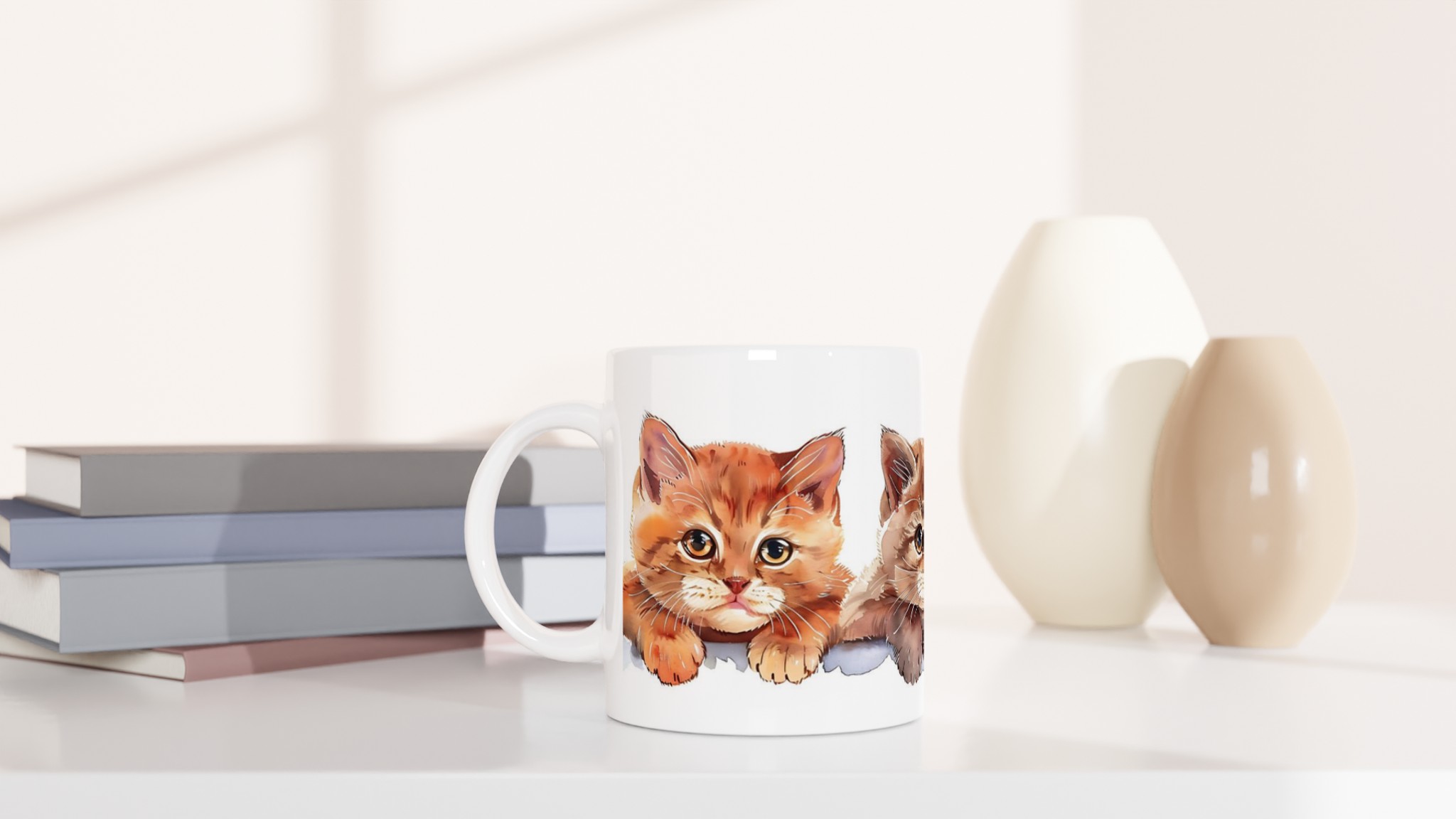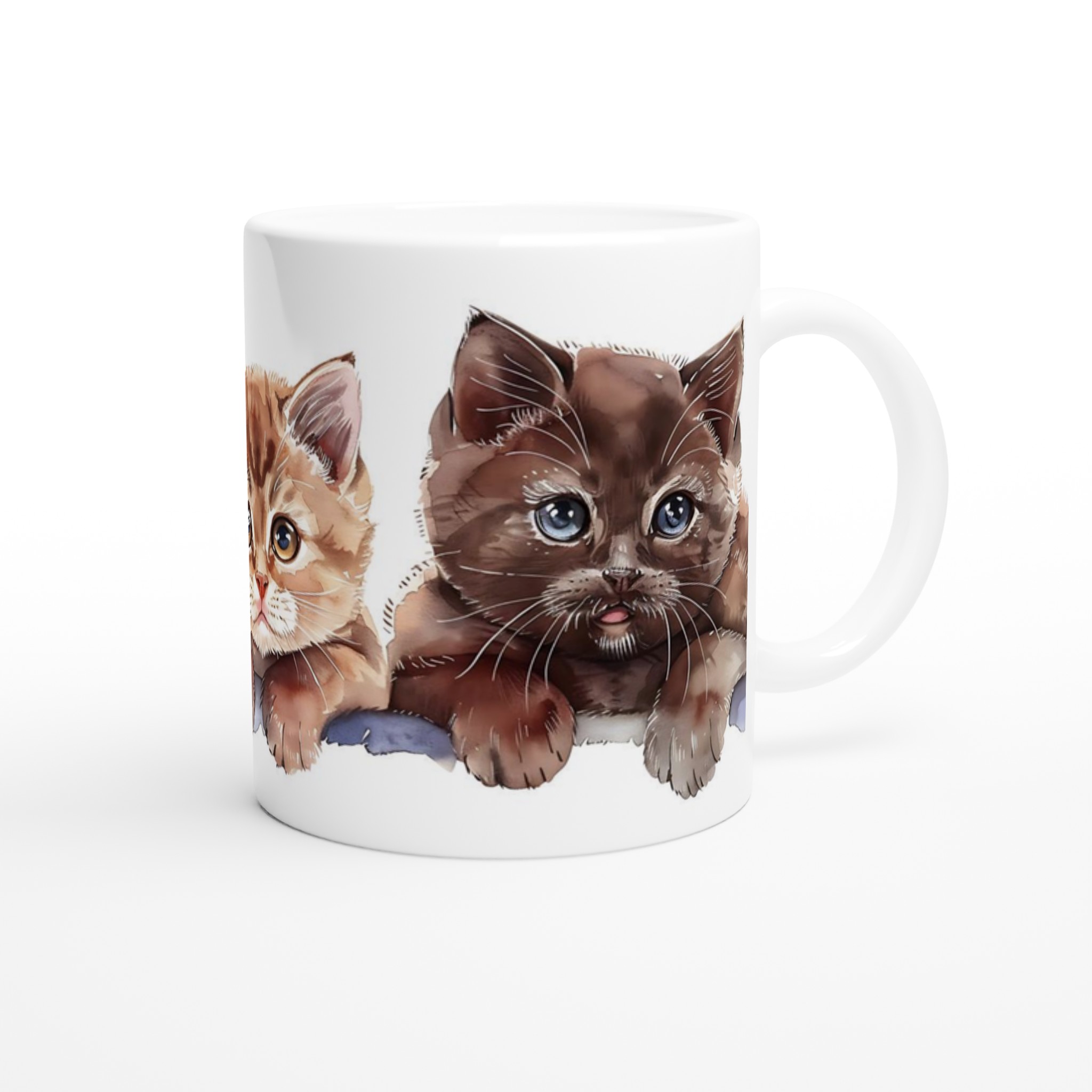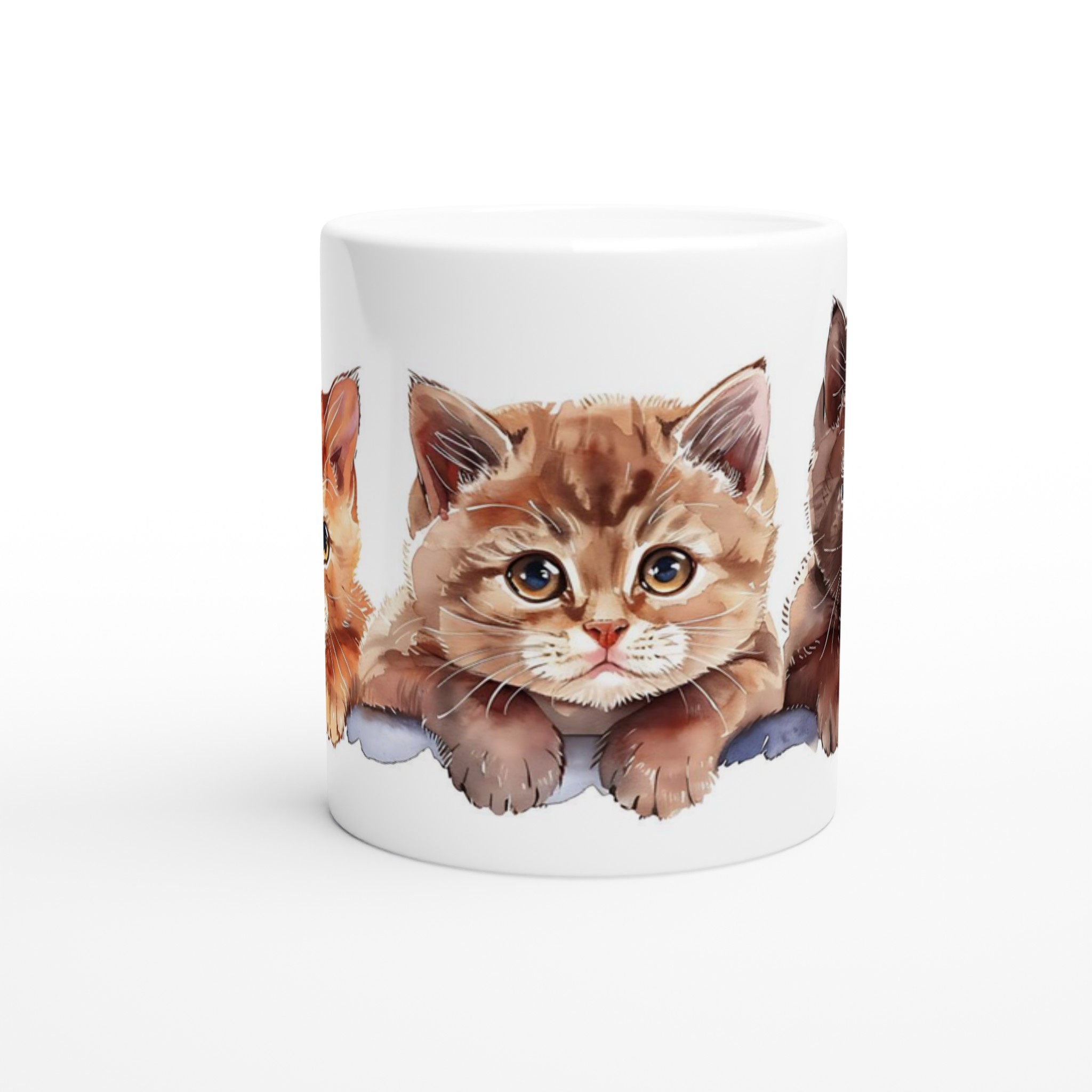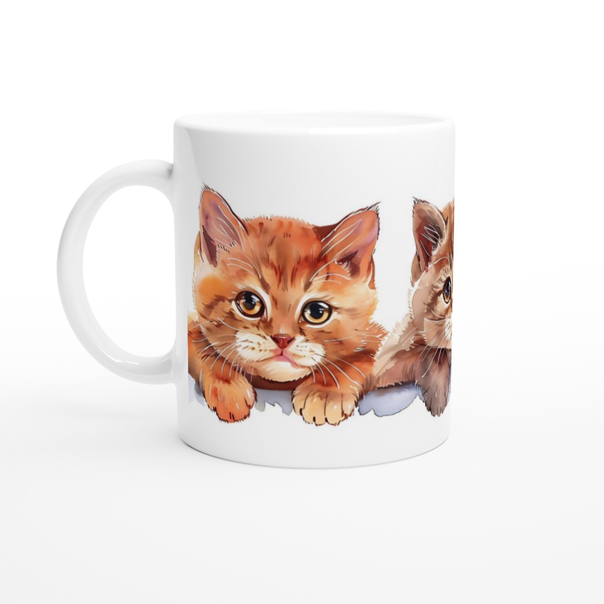 Starta dagen med ett leende med denna bedårande keramiska mugg, prydd med tre oemotståndliga kattungar som tittar fram med nyfikna ögon. Deras lekfulla charm och mjuka akvarelltoner gör varje fikapaus till en mysig stund. Den här muggen blir snabbt en vardagsfavorit – perfekt för morgonkaffet, kvällens varma choklad eller när du bara vill njuta av en kopp te.