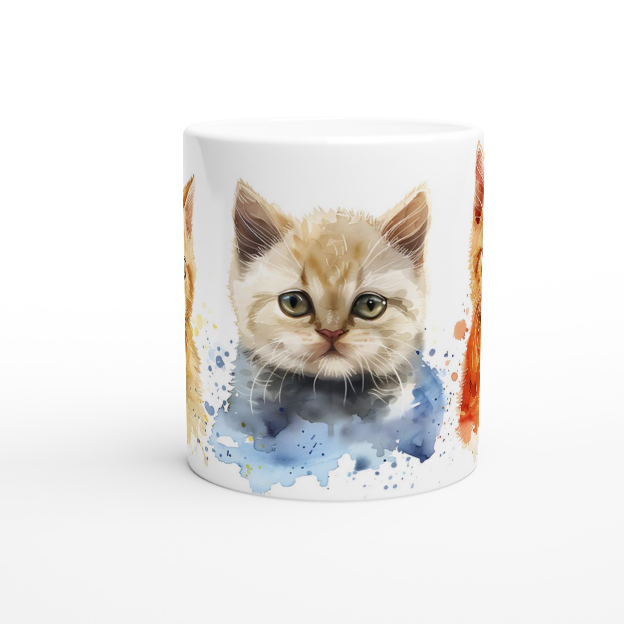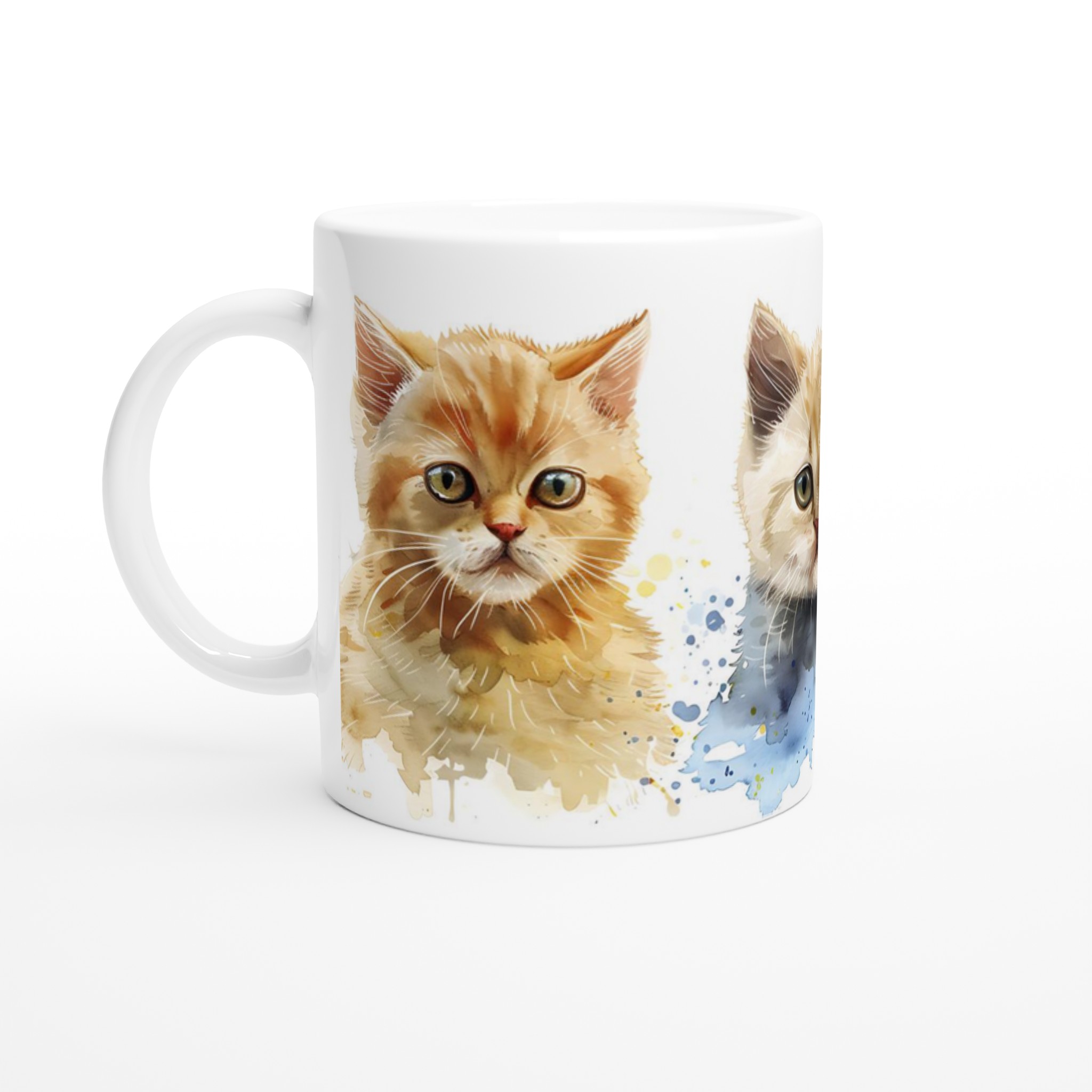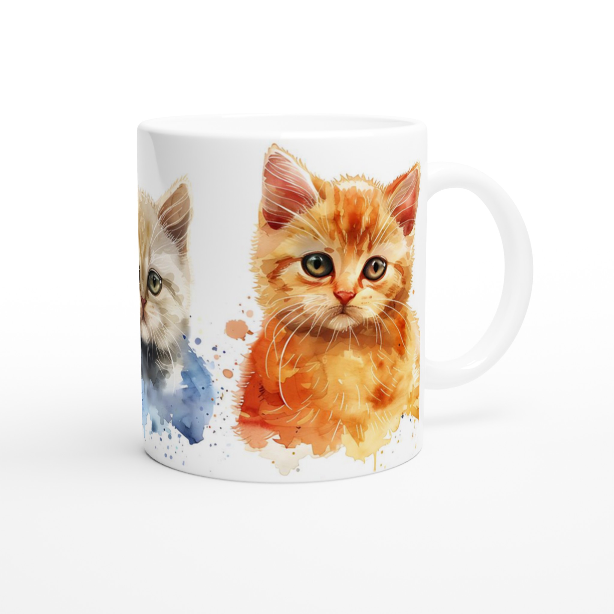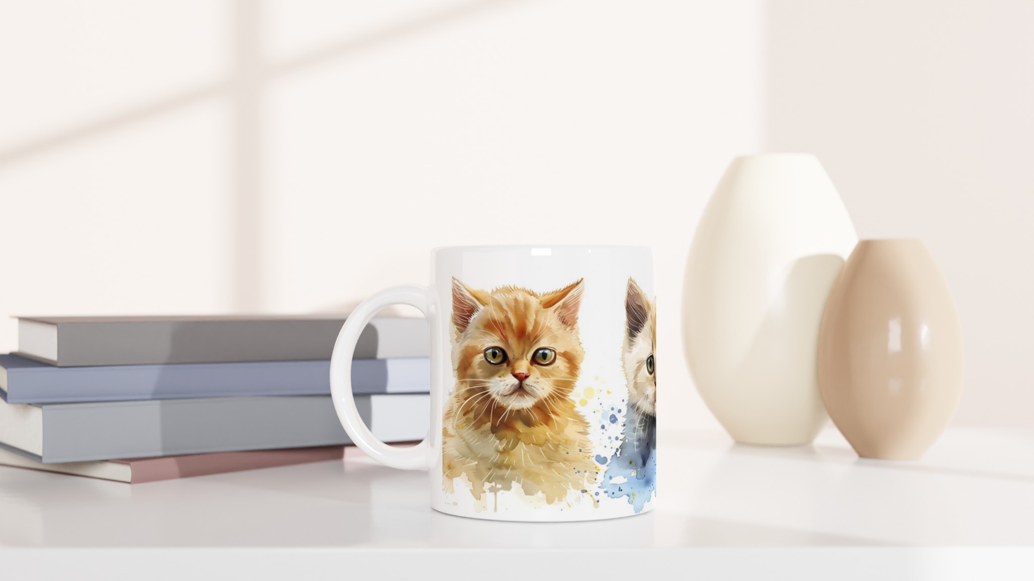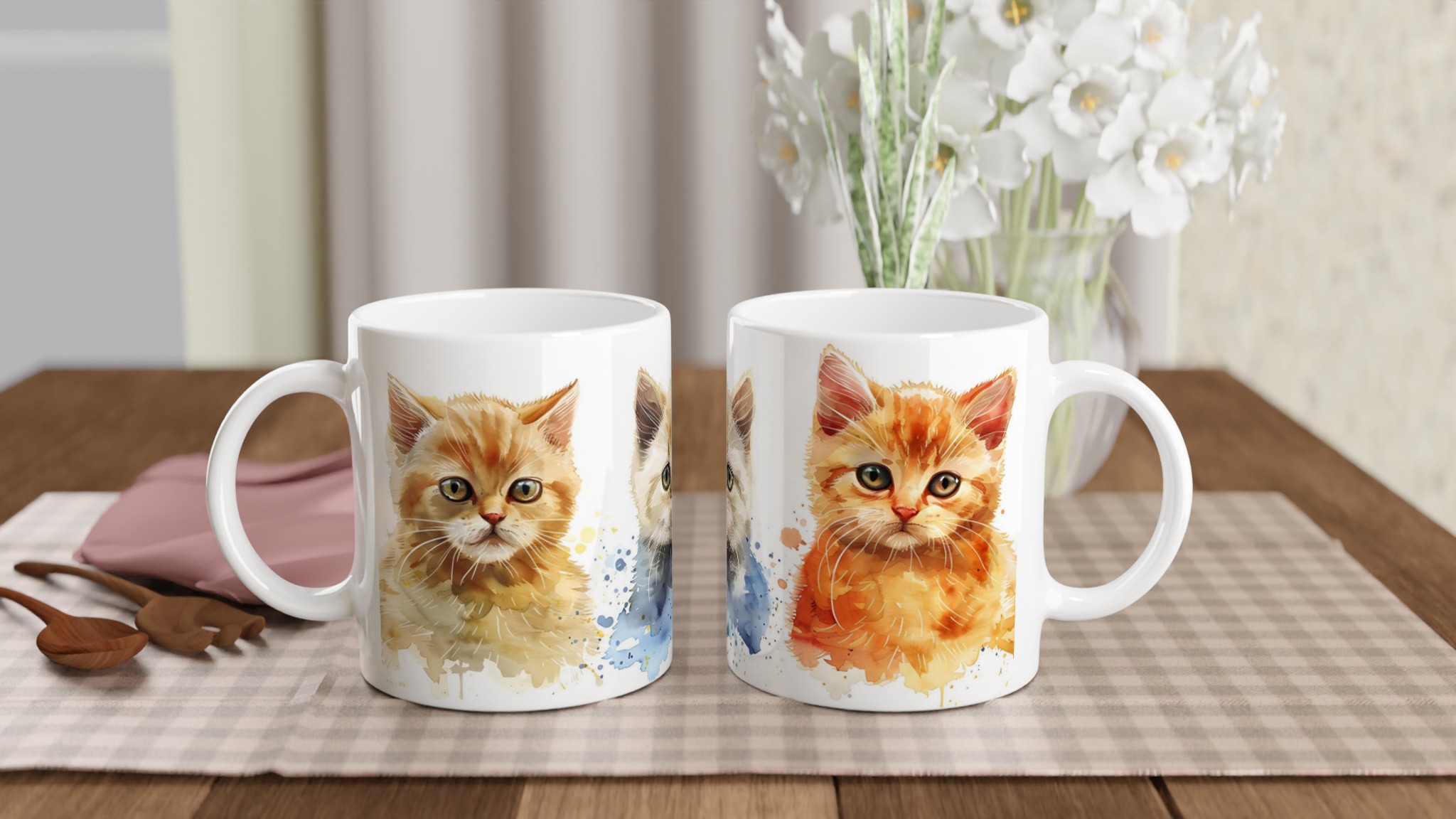Fånga hjärtat med varje klunk från denna bedårande kattungemugg. Med sitt lekfulla akvarellmotiv av söta kattungar, blir den snabbt en vardagsfavorit för alla kattälskare. Perfekt för morgonkaffet, kvällens varma choklad eller när du bara vill njuta av en kopp te i gott sällskap. Den blanka vita ytan låter kattungarnas klara och levande färger framhävas, som håller sig fina även efter många turer i mikron och diskmaskinen.