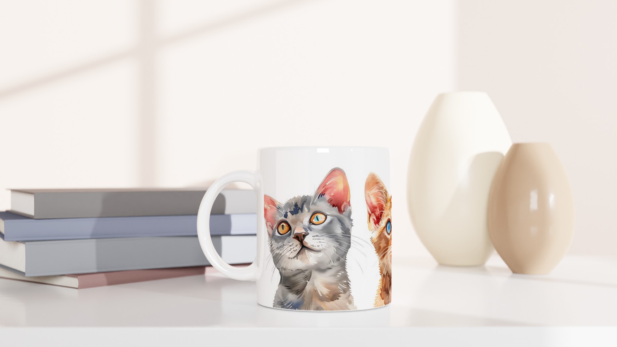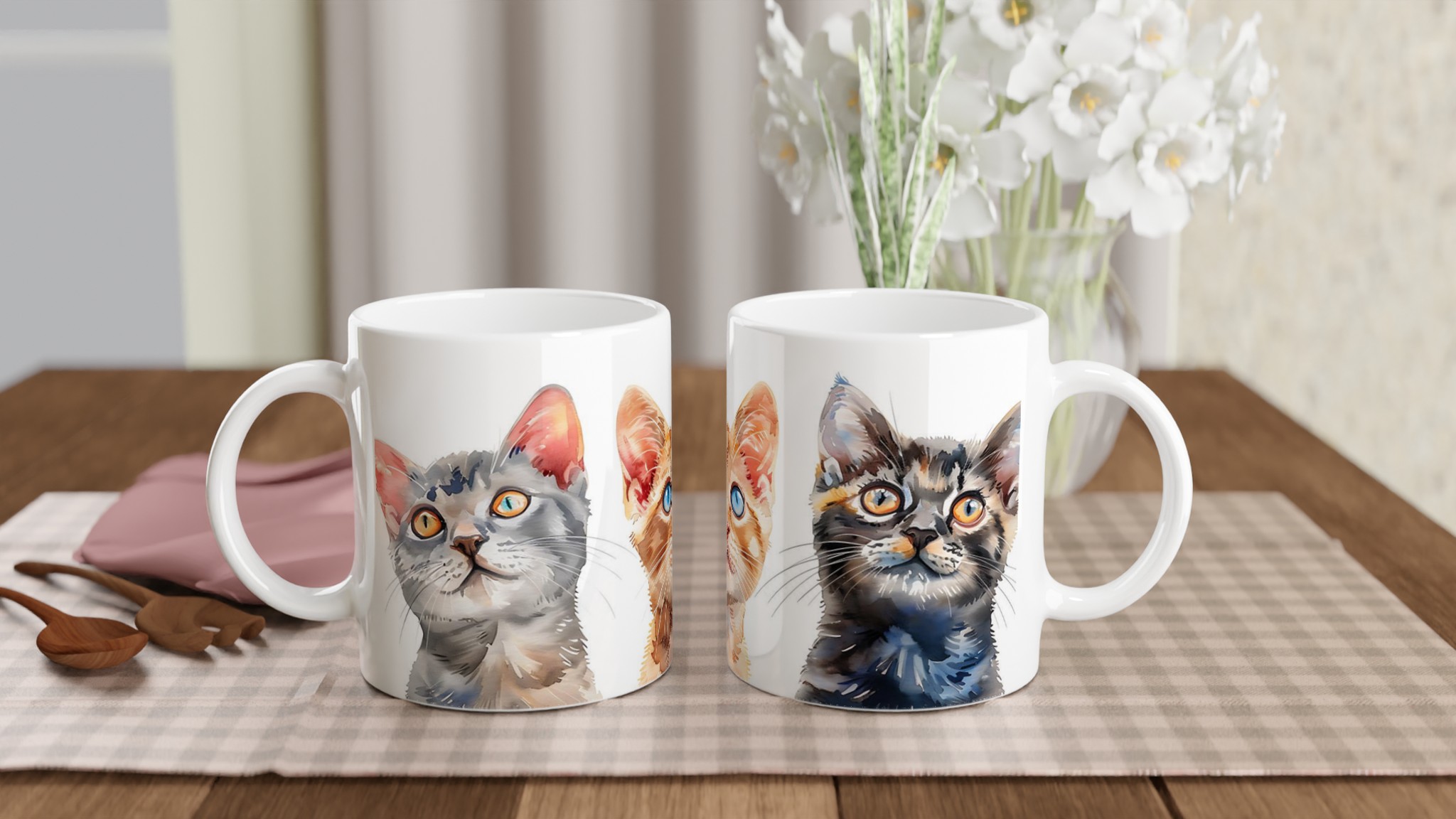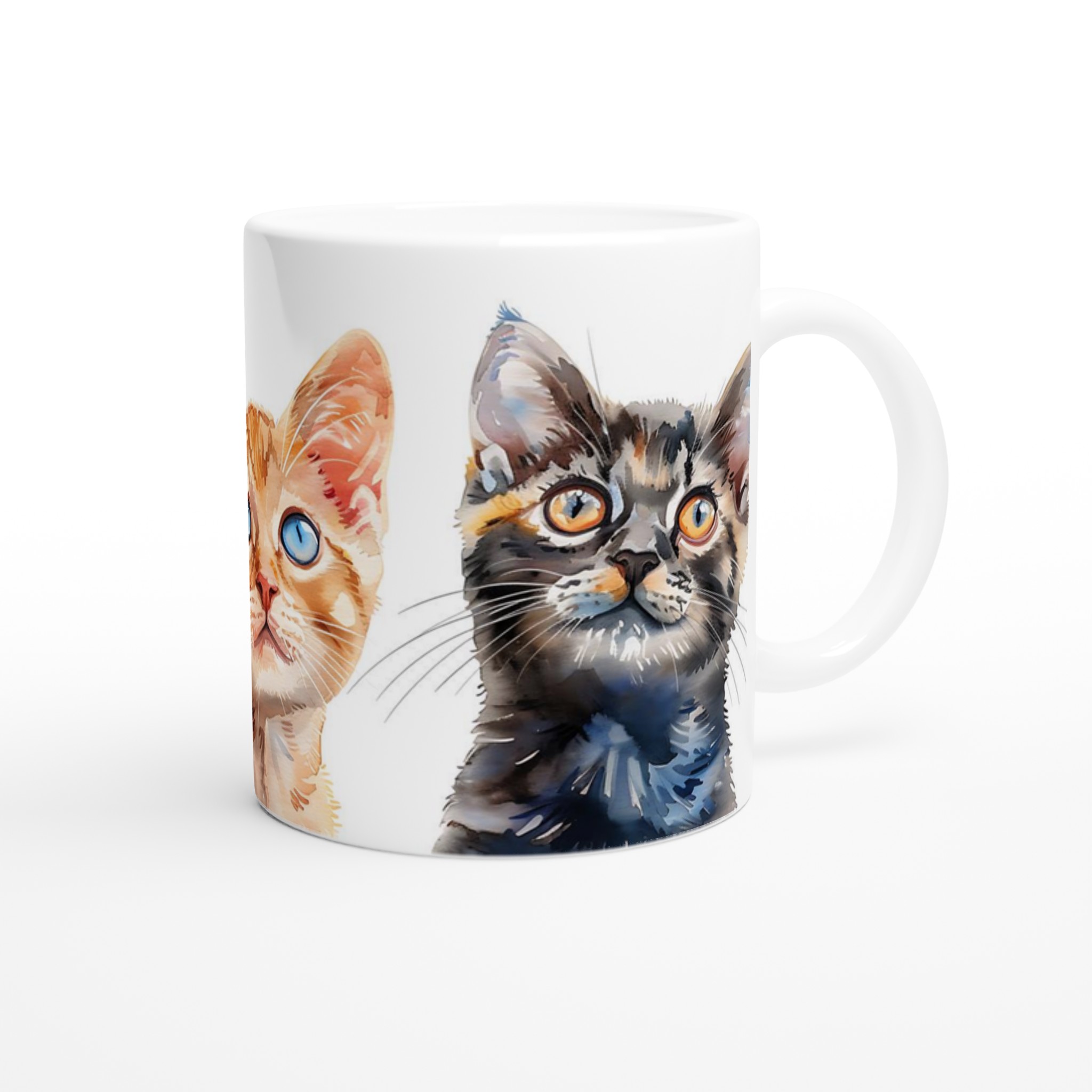 Starta dagen med ett leende med denna charmiga keramiska mugg, prydd med bedårande kattungar i en mjuk akvarellstil. Perfekt för morgonkaffet, kvällens varma choklad eller när du bara vill njuta av en kopp te. Varje kattungeuttryck är fångat med livfulla färger som framhävs vackert på den blanka ytan, och som håller sig fina även efter många turer i mikron och diskmaskinen.