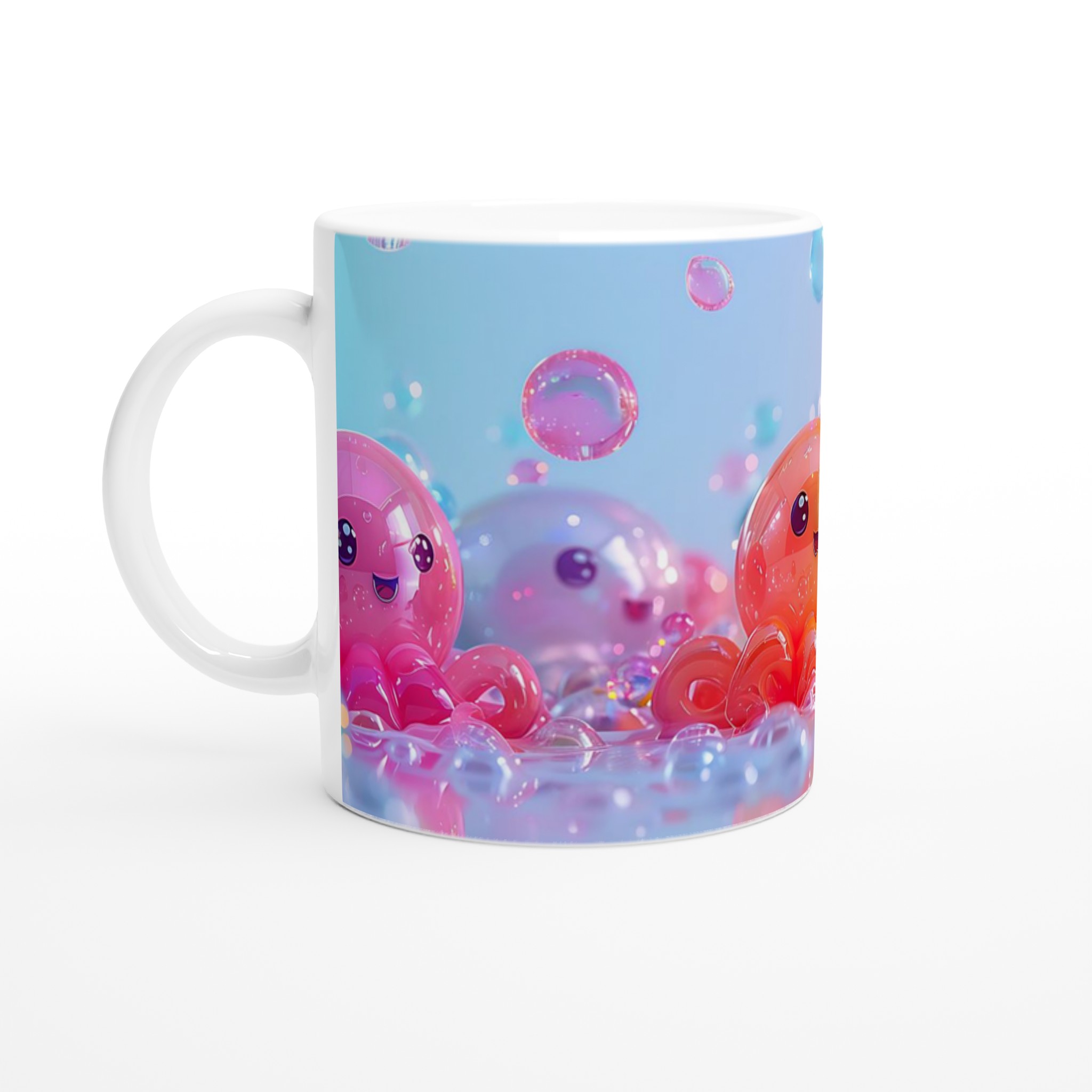 Denna bedårande Kawaii-bläckfiskmugg, med sitt glada uttryck och lekfulla bubbeldesign, förvandlar varje sipp till en stund av ren glädje. Välj din favoritfärg – från klassiskt vit till livfullt röd, gul, rosa, grön, svart eller blå – och låt den blanka ytan ge ett skarpt och levande tryck som verkligen sticker ut. Oavsett om det är en personlig design, ett roligt citat eller en present till någon du tycker om, kommer denna mugg att sprida leenden.
