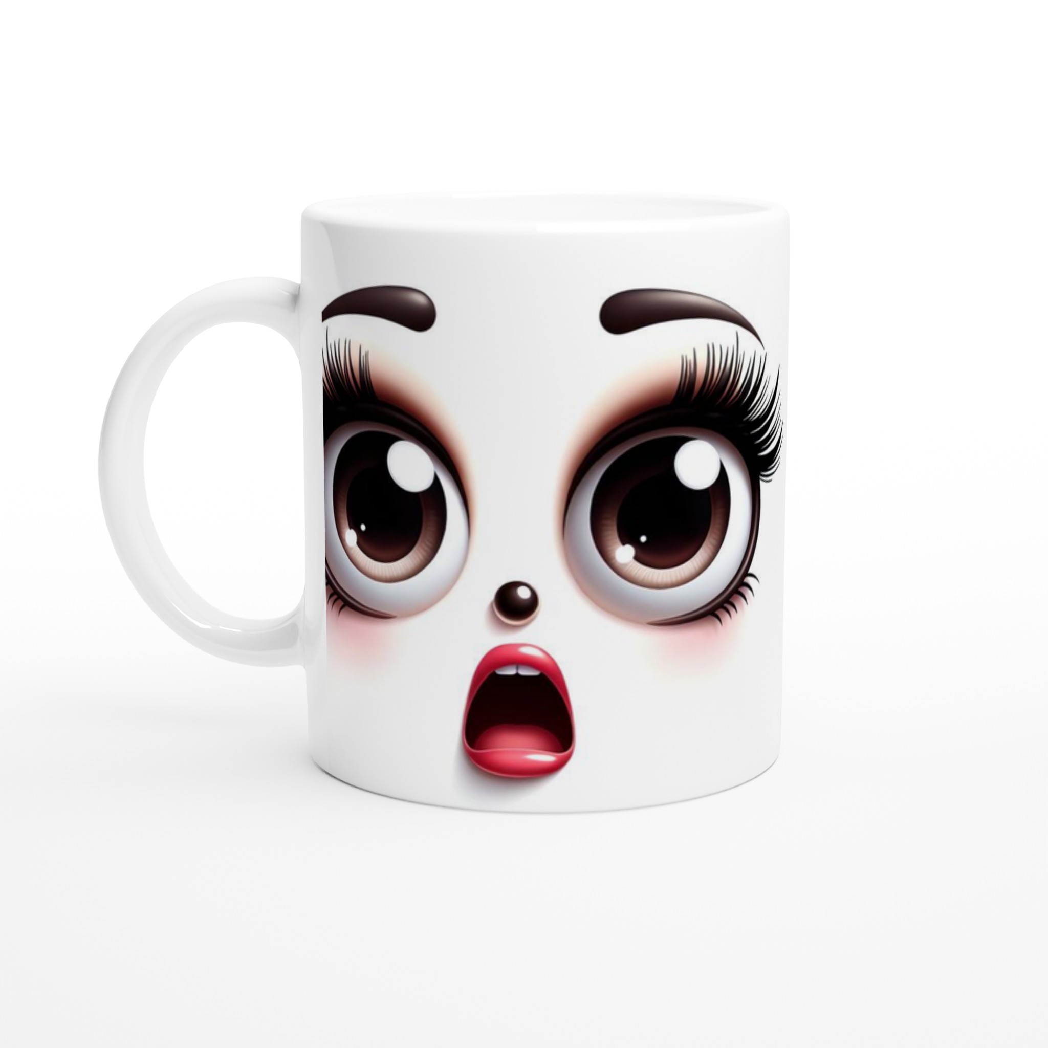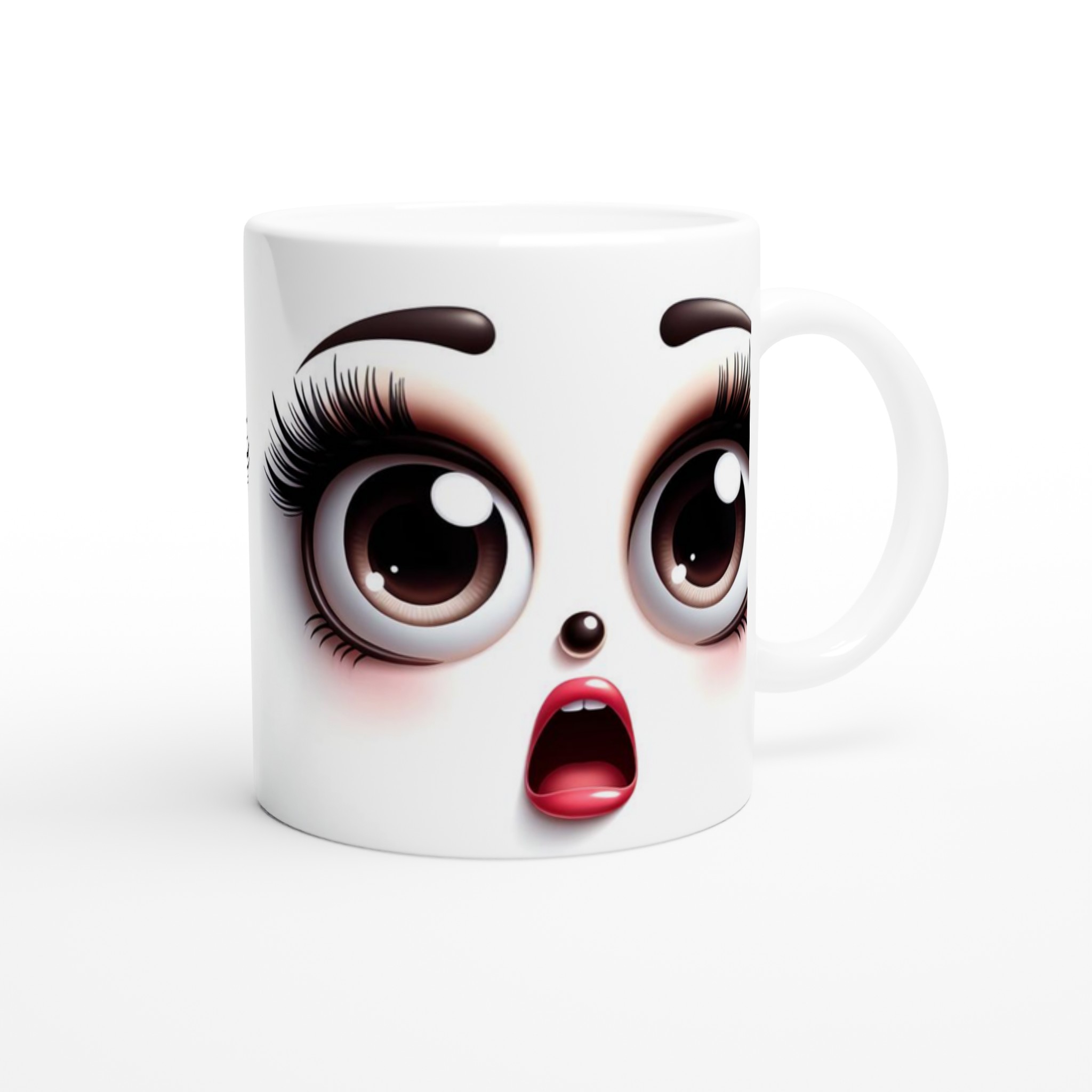 Inspirerad av den lekfulla charmen hos kawaii-estetiken, fångar denna mugg ett förvånat ansikte som garanterat sprider glädje och skratt. Den blanka vita ytan ger ett skarpt och levande tryck som verkligen sticker ut, oavsett om det är en personlig design, ett roligt citat eller en present till någon du tycker om.