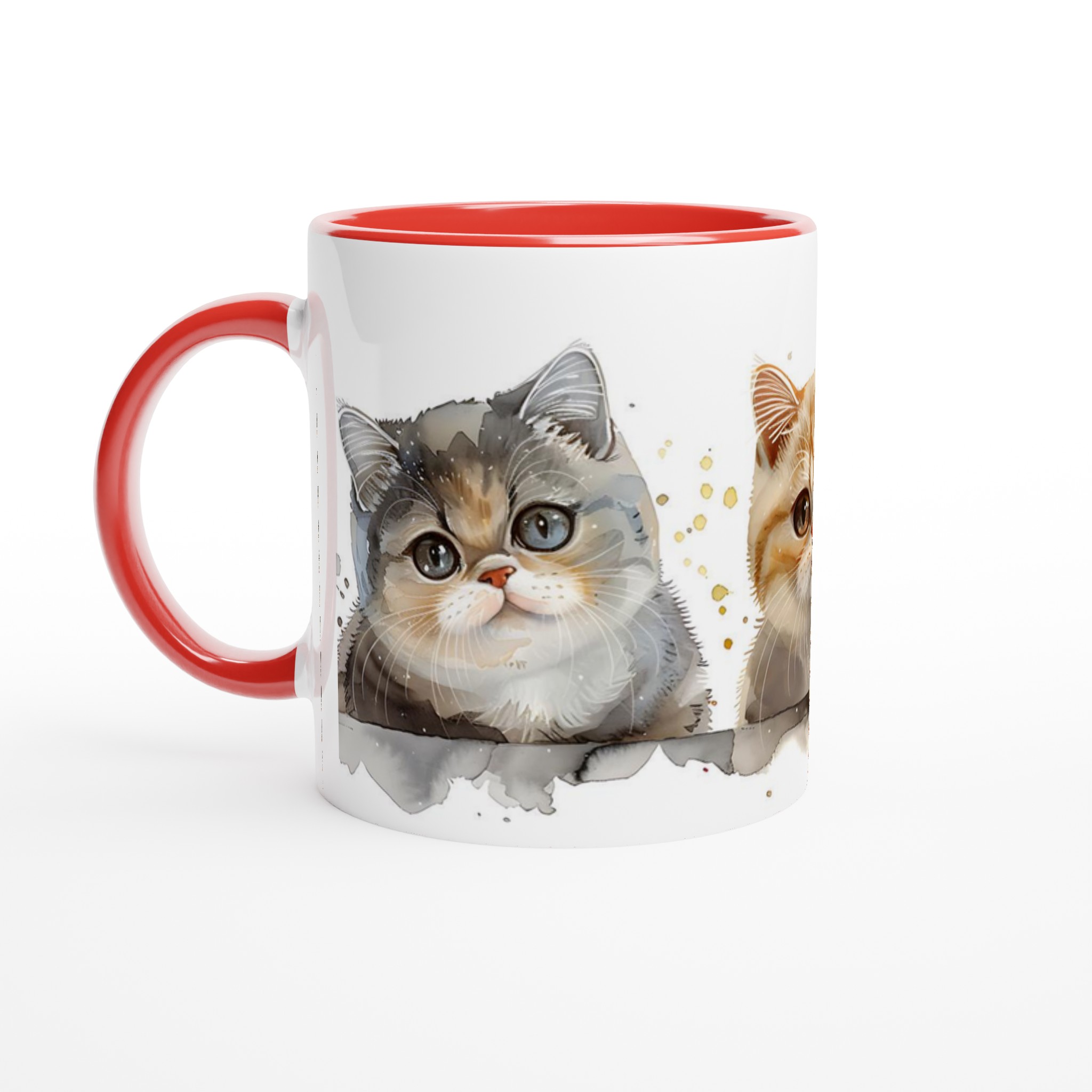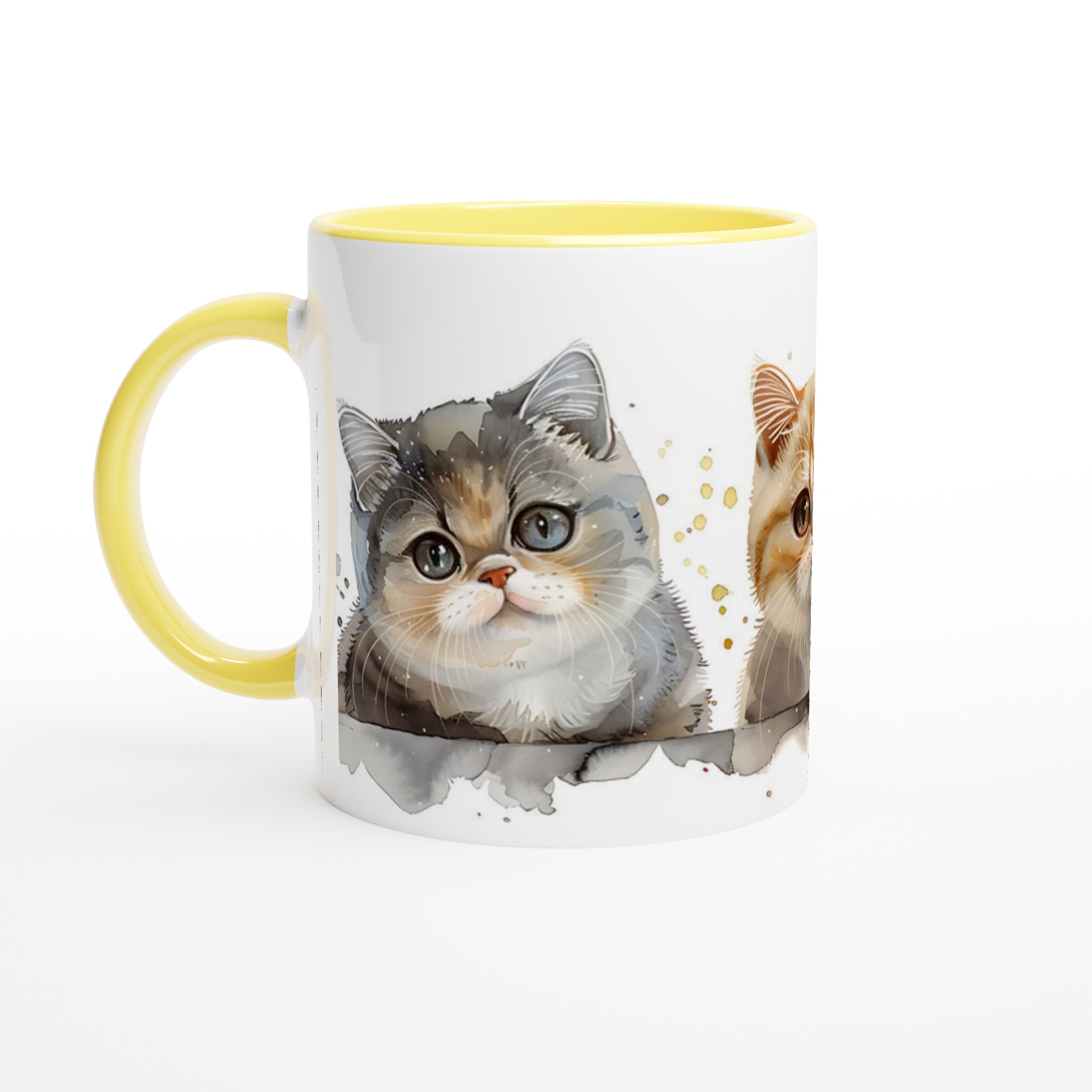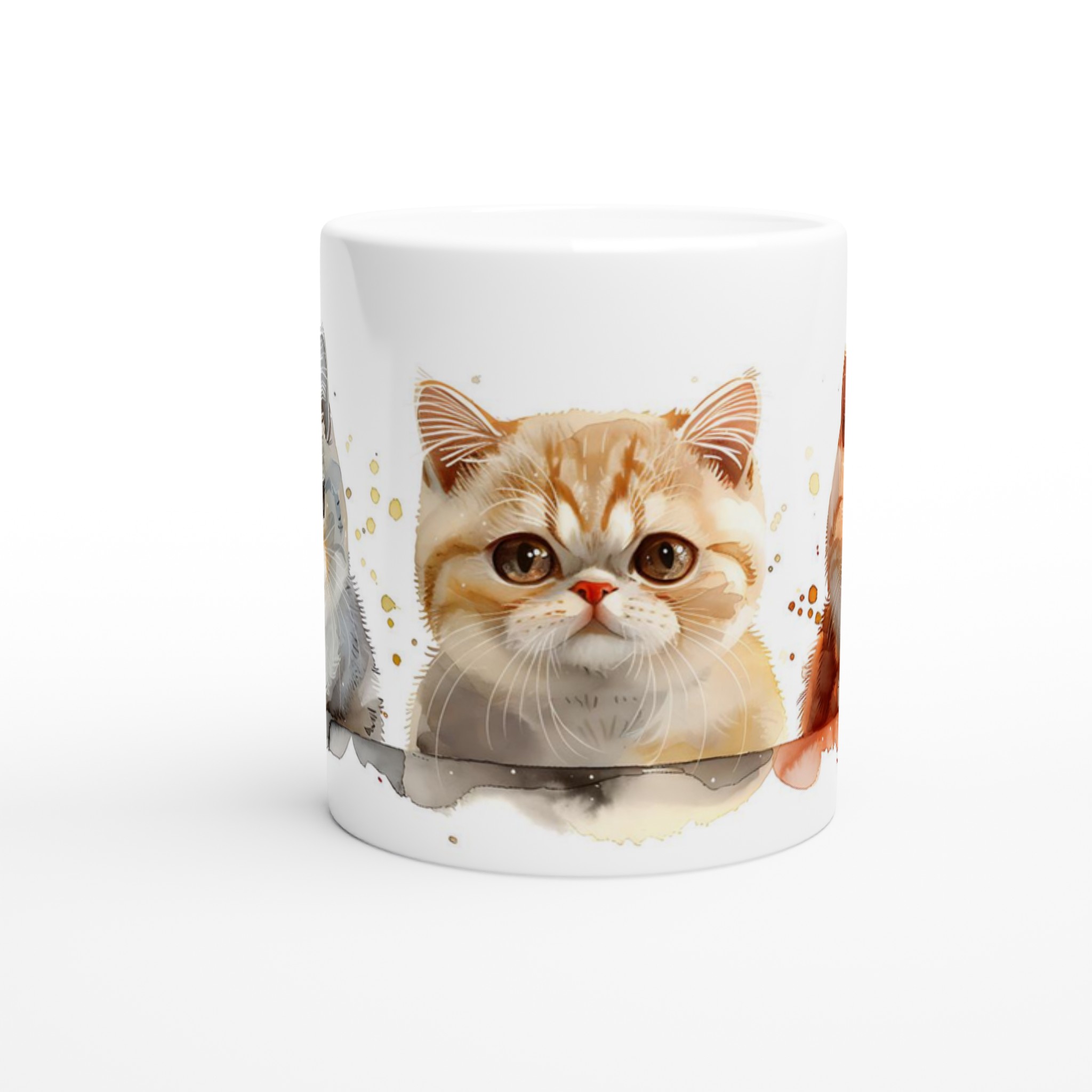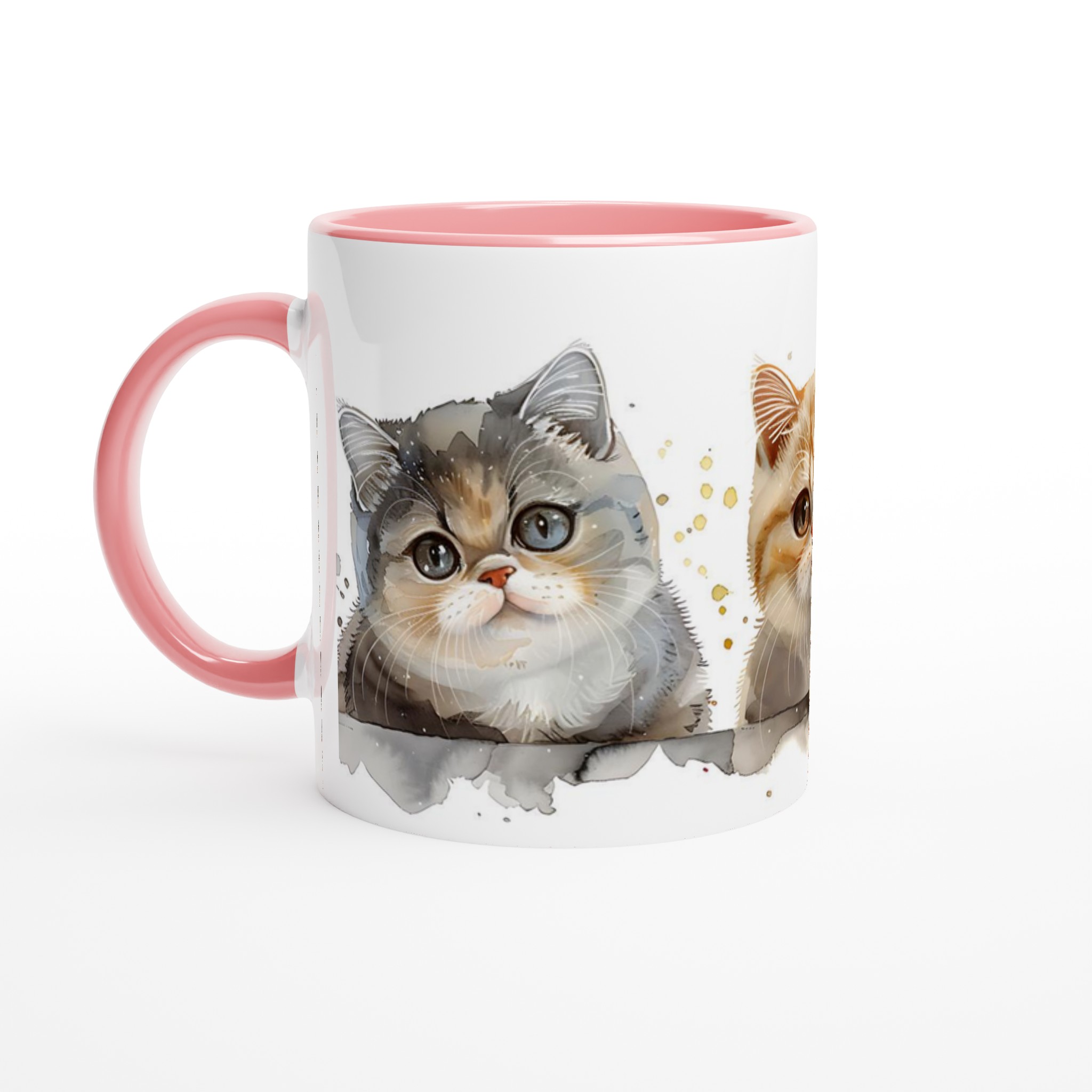 Väck liv i dina fikapauser med denna oemotståndliga keramiska mugg, prydd med en lekfull akvarellillustration av tre bedårande kattungar. Varje mugg fångar den mjuka, uttrycksfulla charmen hos dessa små lurviga vänner, med en konstnärlig touch som smälter in perfekt i varje hem. Vare sig det är för morgonkaffet, kvällens varma choklad eller en lugn stund med te, kommer denna mugg snabbt att bli din nya favorit.