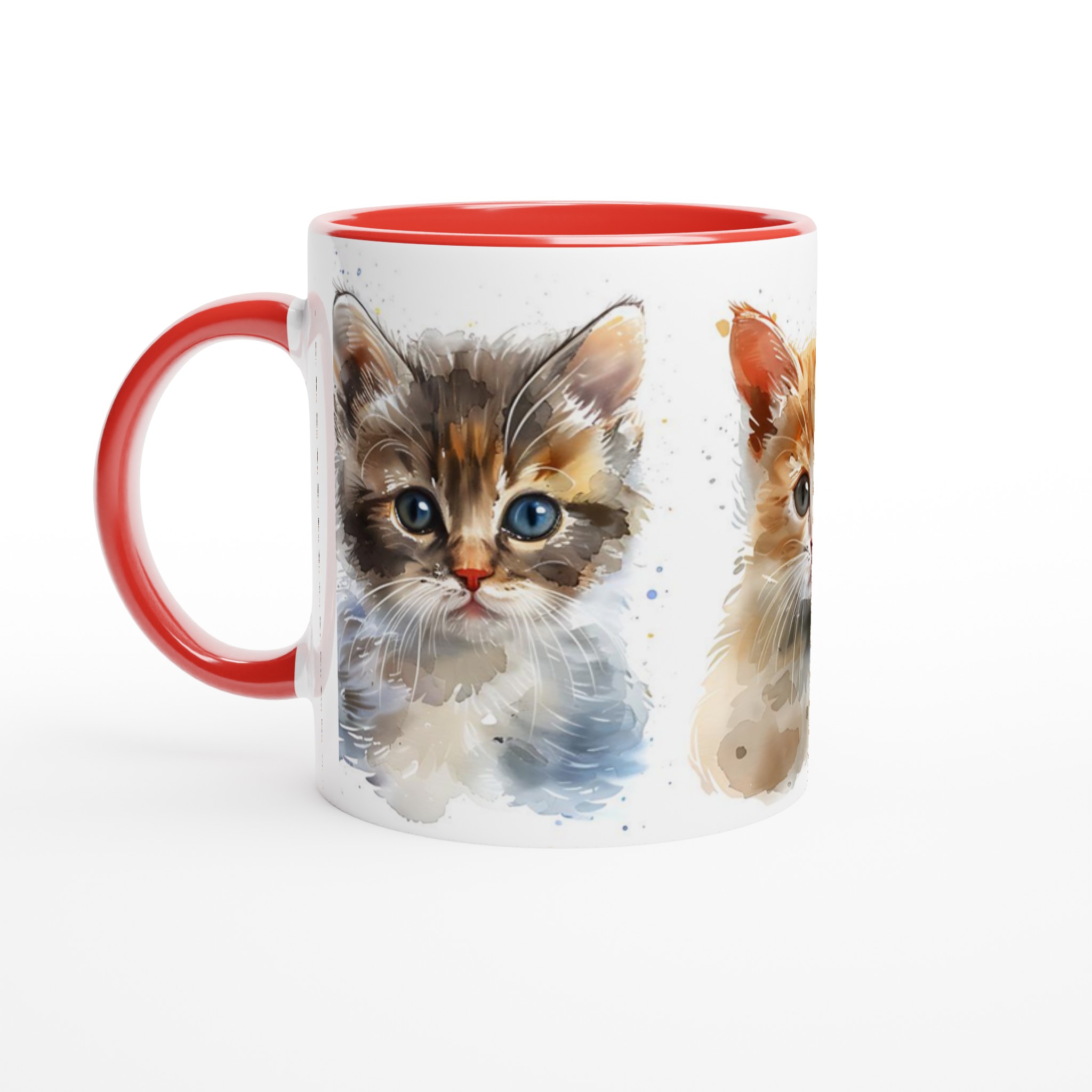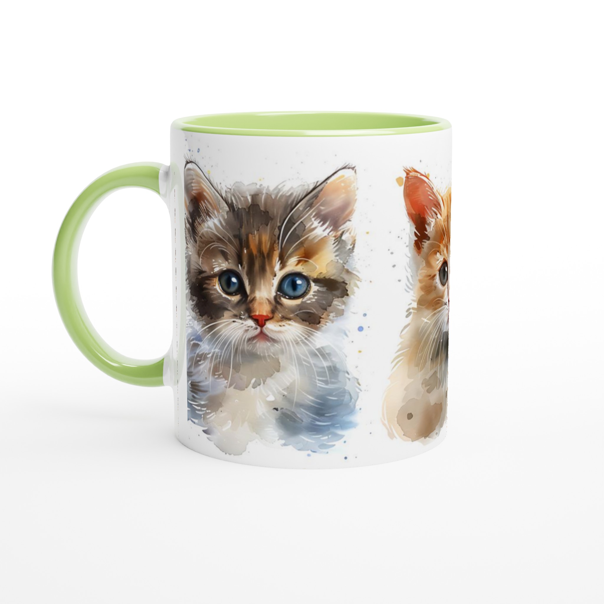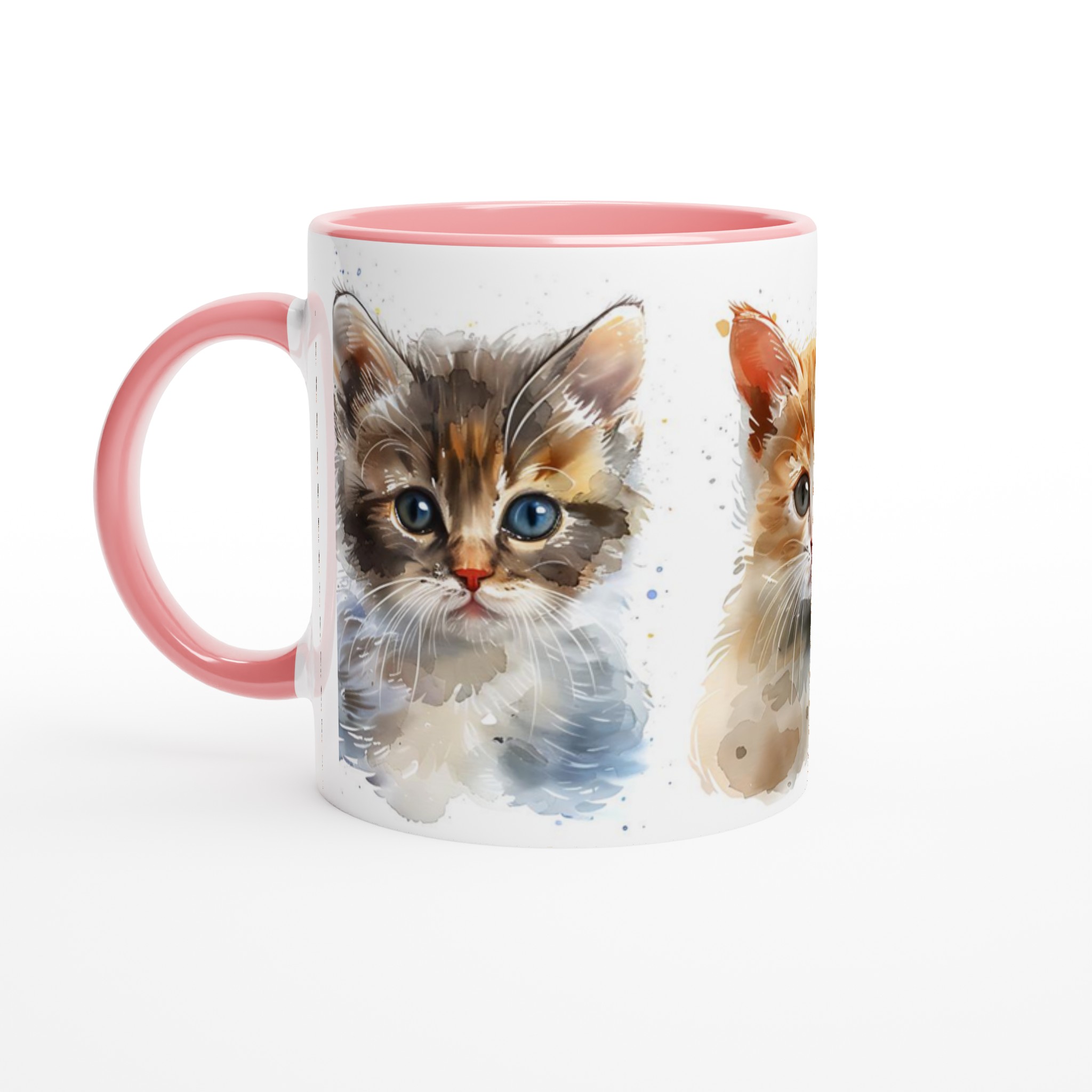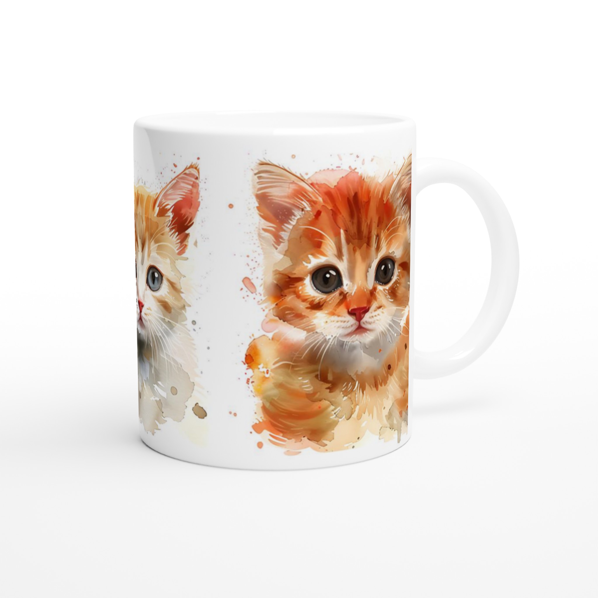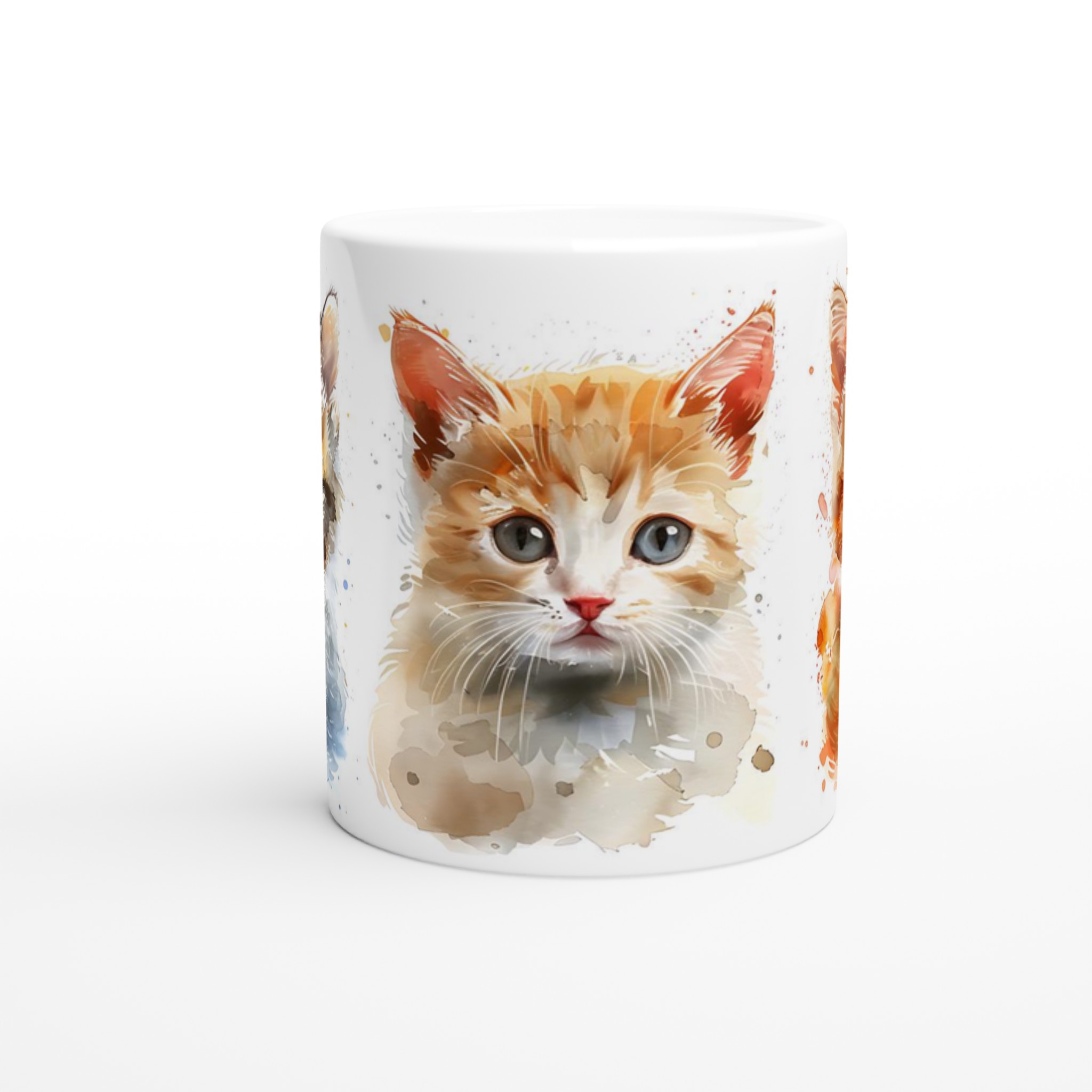 Fånga hjärtan med varje klunk! Den här stilrena keramiska muggen blir snabbt en vardagsfavorit. Med sitt bedårande tryck av akvarellmålade kattungar, fulla av liv och lekfullhet, är den perfekt för morgonkaffet, kvällens varma choklad eller när du bara vill njuta av en kopp te.