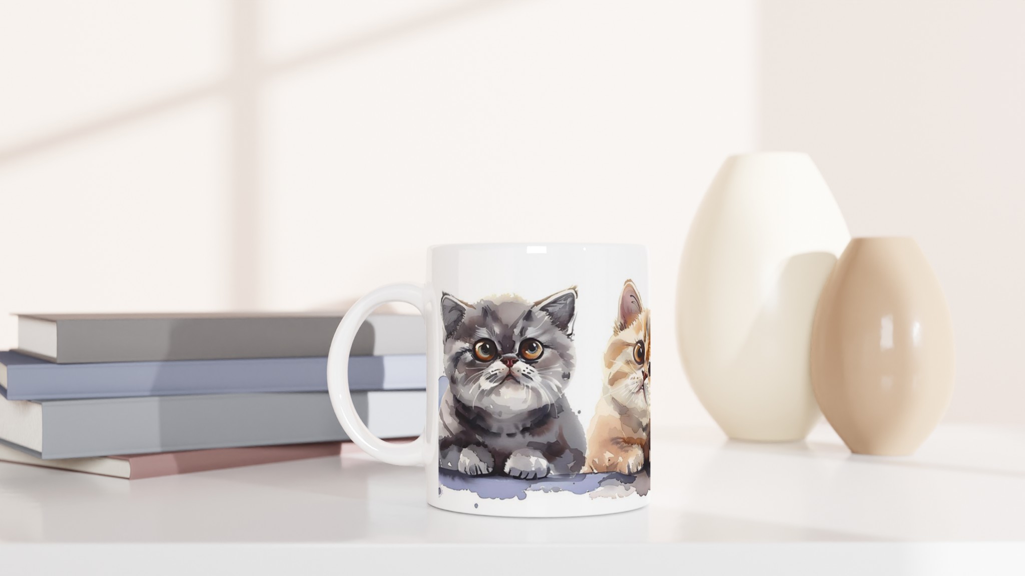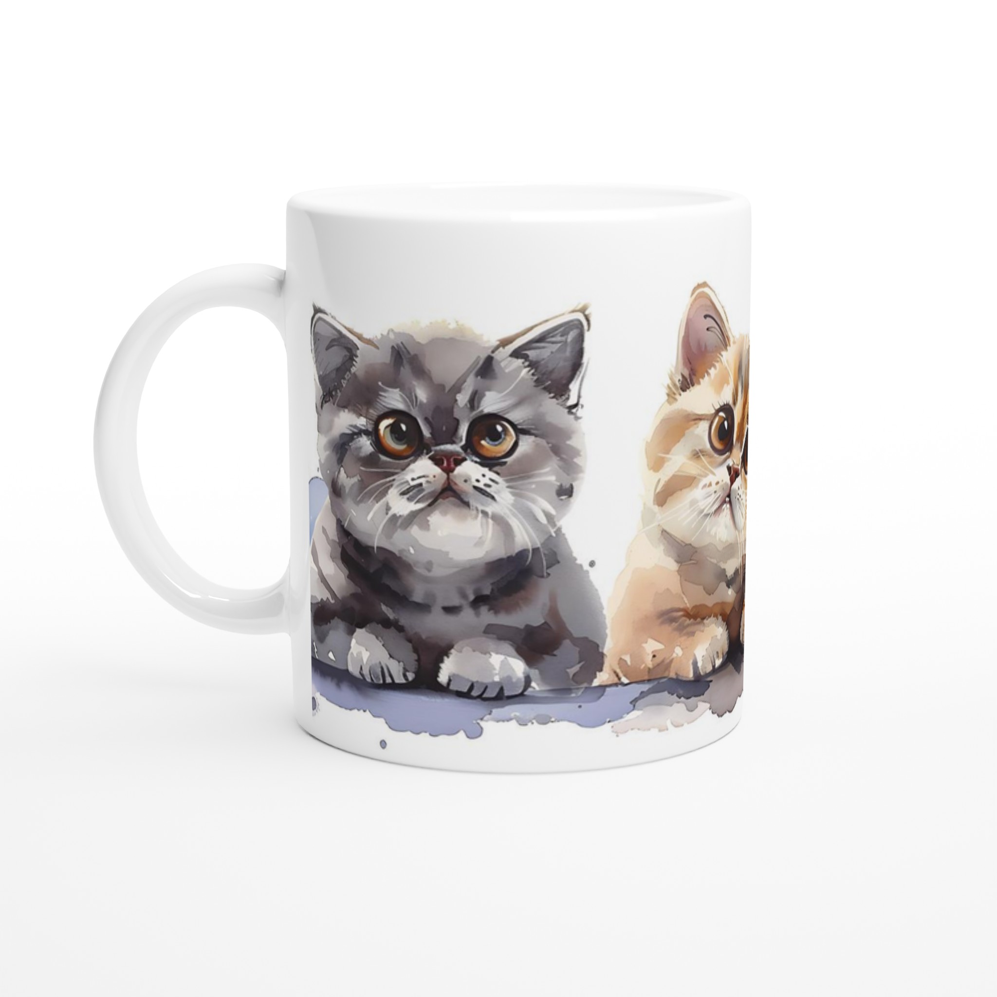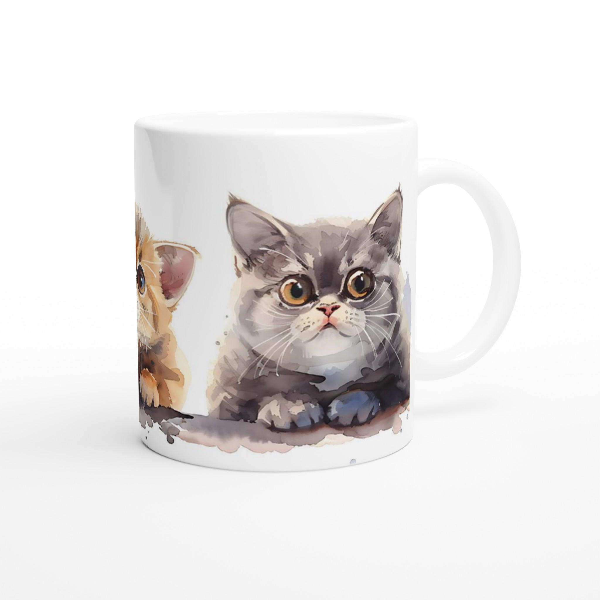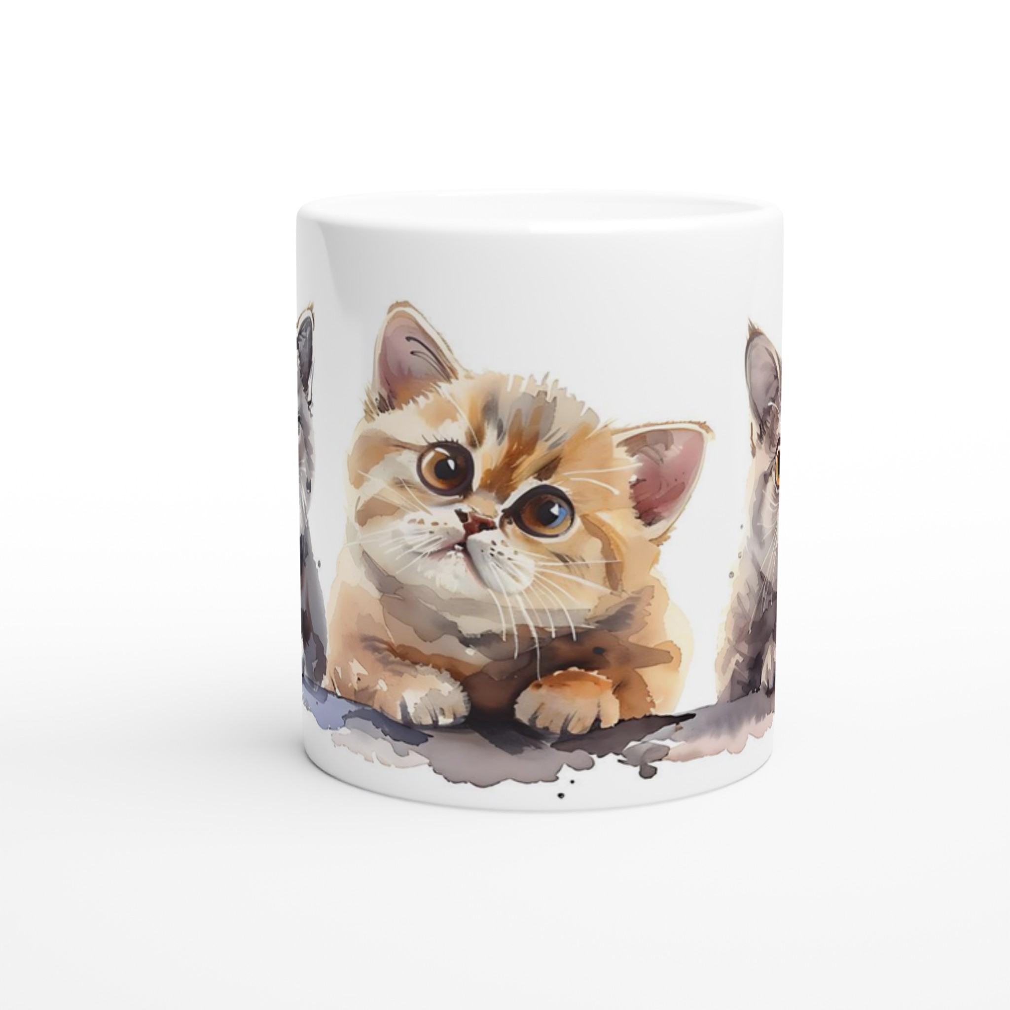 Vakna upp till ett leende med den här underbara keramiska muggen, prydd med tre bedårande kattungar målade i en charmig akvarellstil. De söta, nyfikna blickarna och den lekfulla designen kommer garanterat att förgylla din morgonrutin eller fika. Denna stilrena mugg blir snabbt en vardagsfavorit. Perfekt för morgonkaffet, kvällens varma choklad eller när du bara vill njuta av en kopp te.