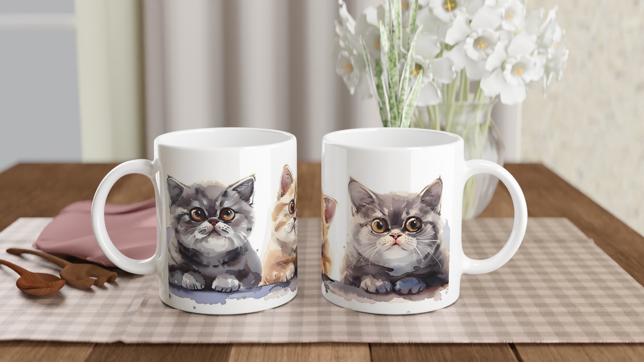 Den blanka vita ytan gör att trycken framhävs med klara och levande färger, som håller sig fina även efter många turer i mikron och diskmaskinen. Muggen är inte bara praktisk – den är också en uppskattad present till familj, vänner eller kollegor, särskilt kattälskare! En enkel men personlig gåva som alltid kommer till användning.