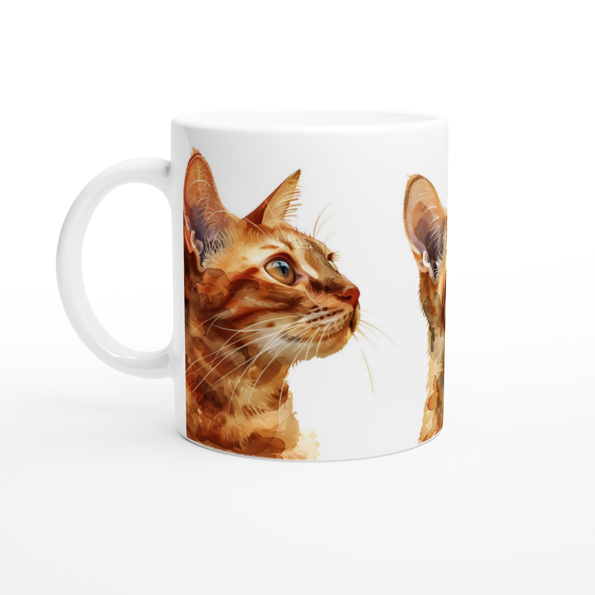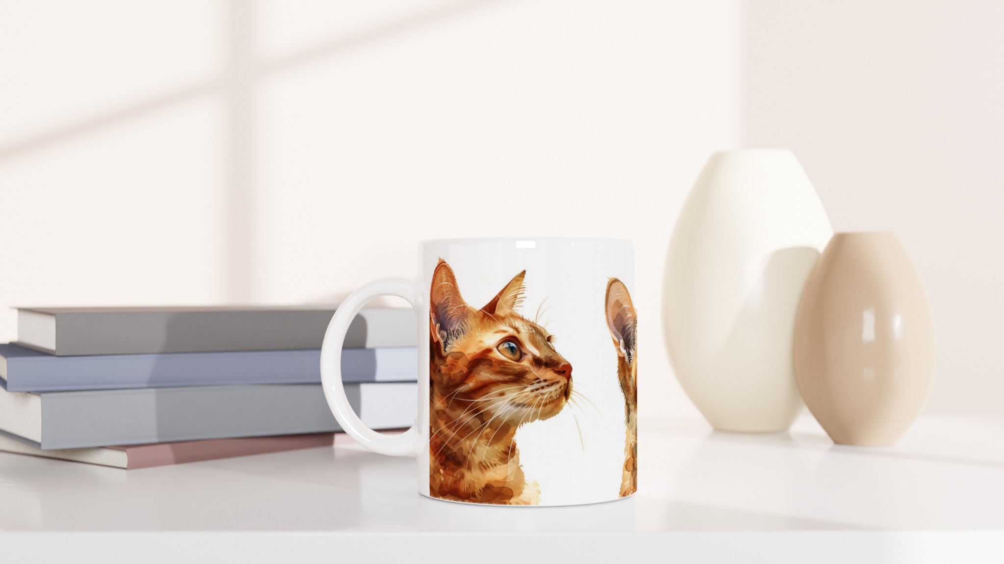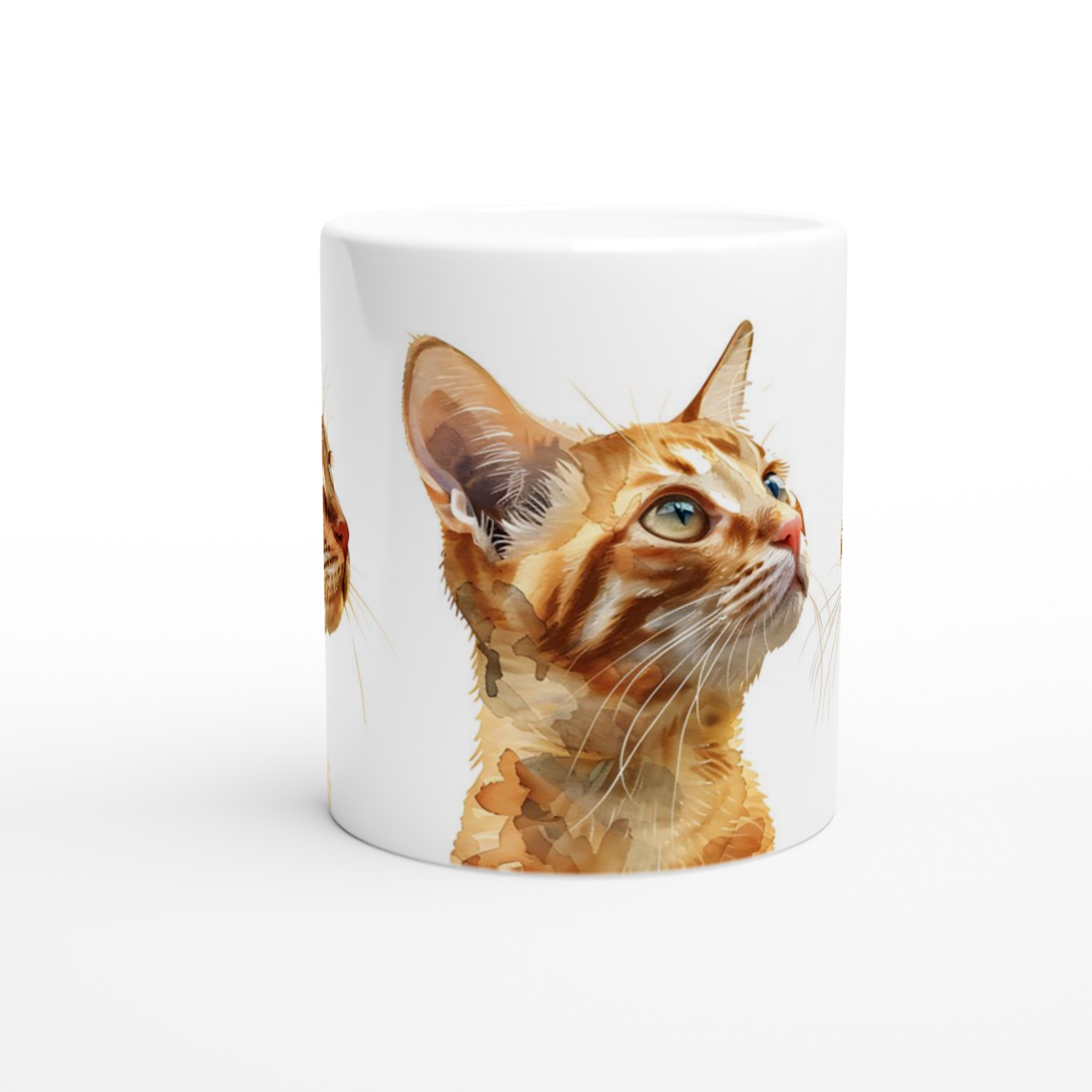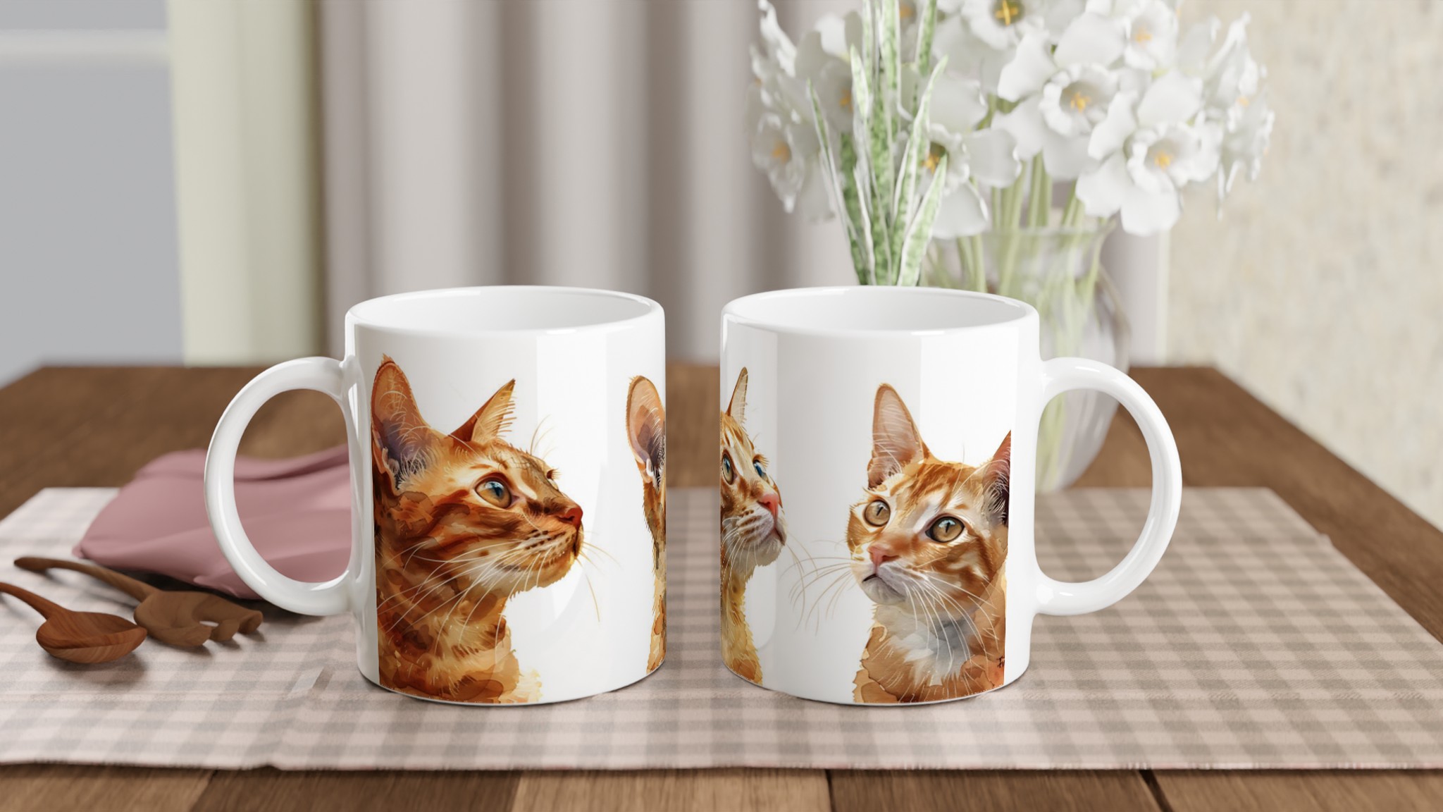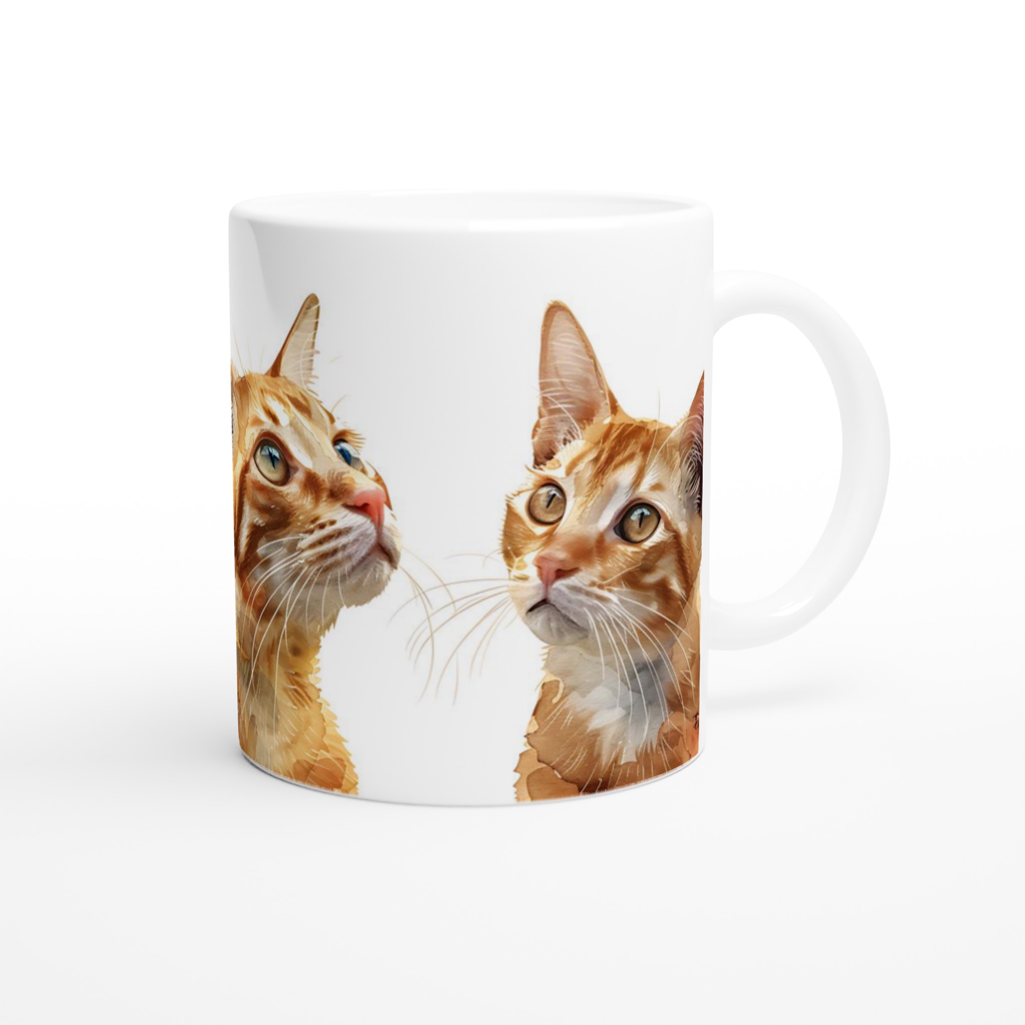 Klassisk keramikmugg, 11 oz, med förtrollande akvarellkattmotiv.