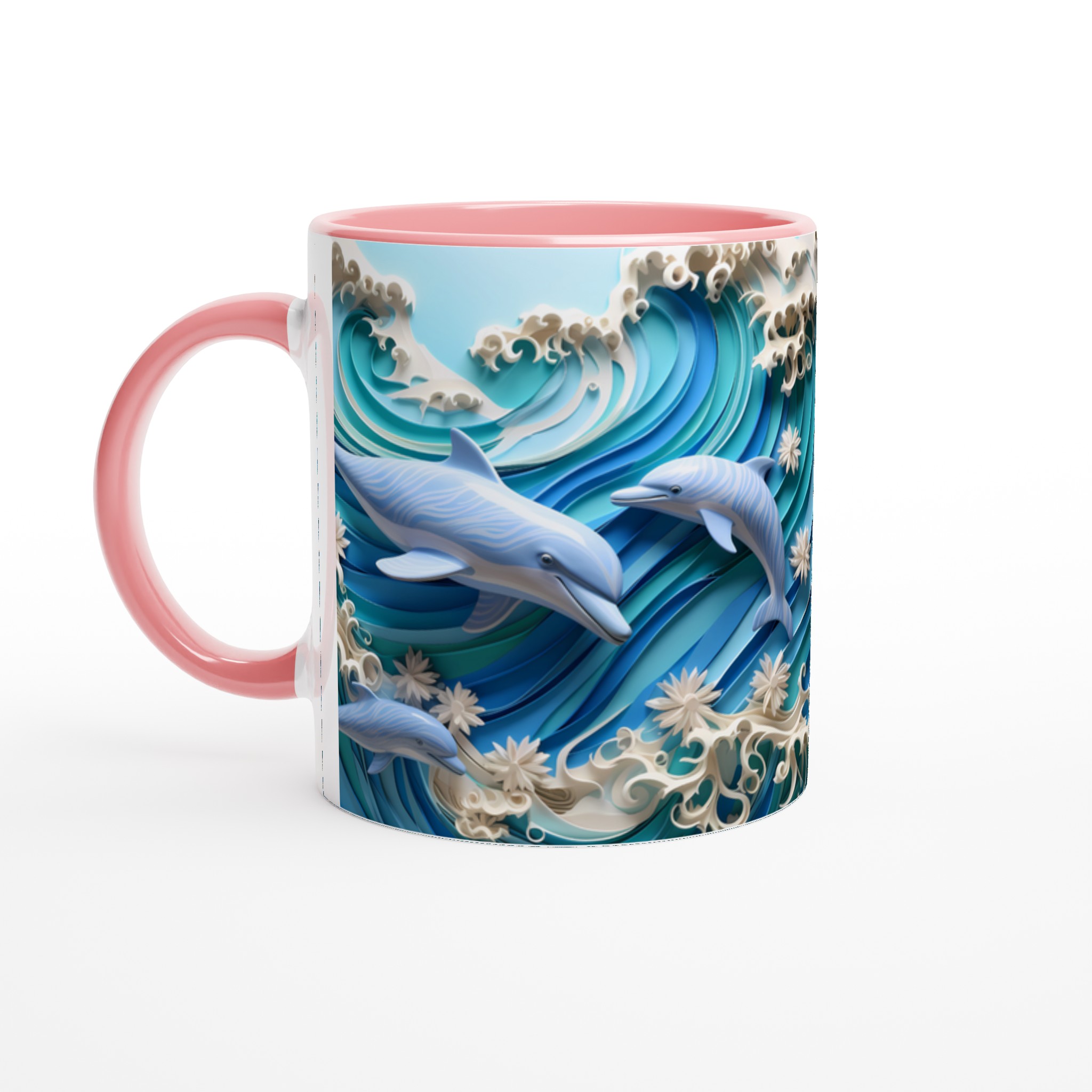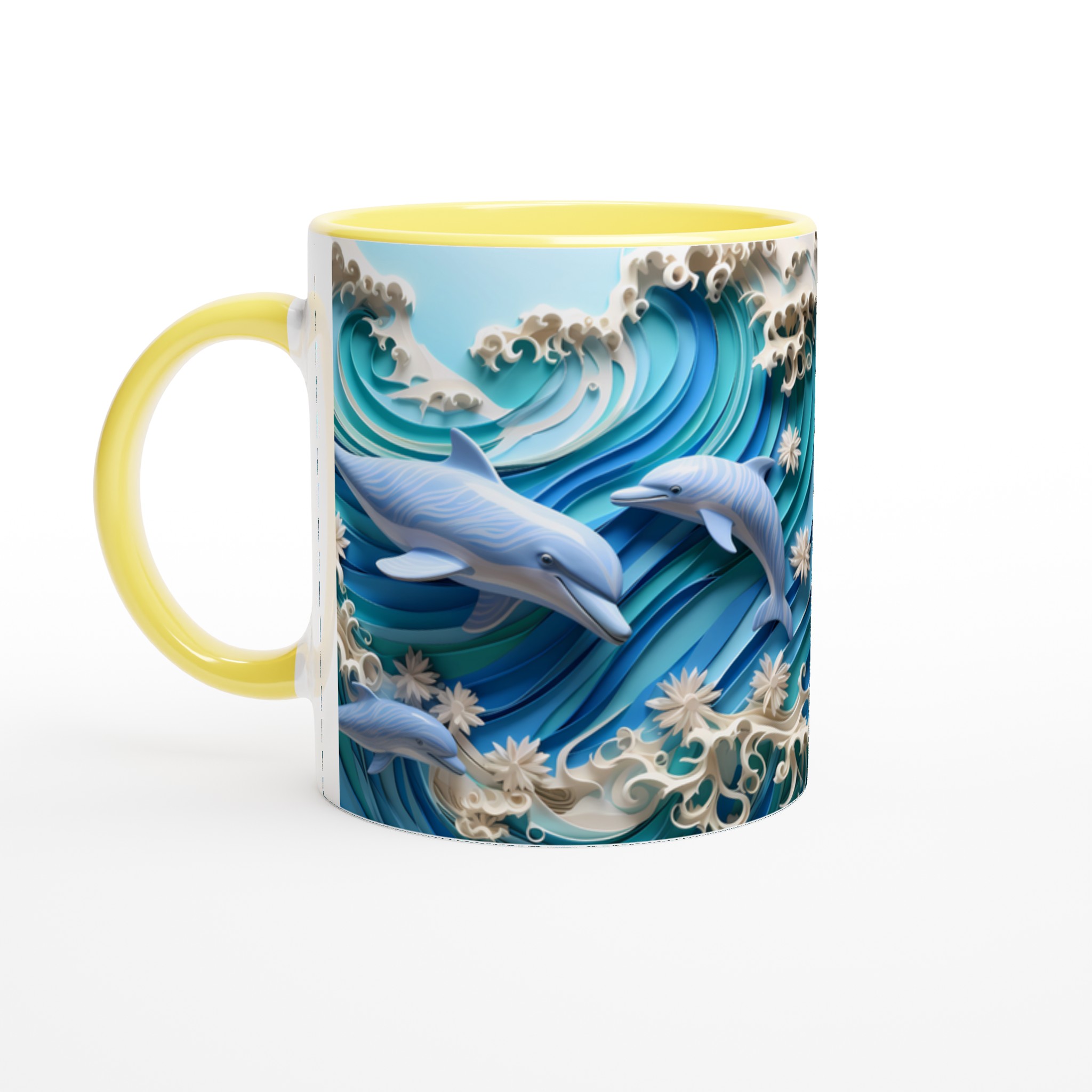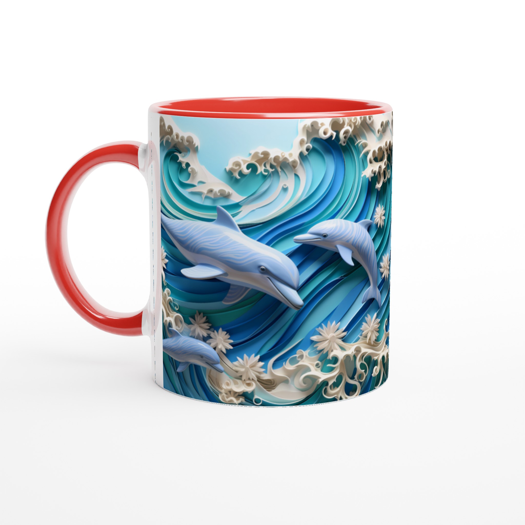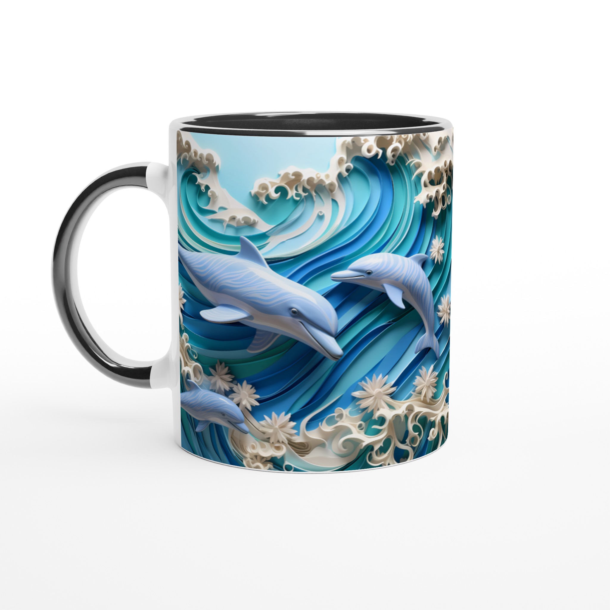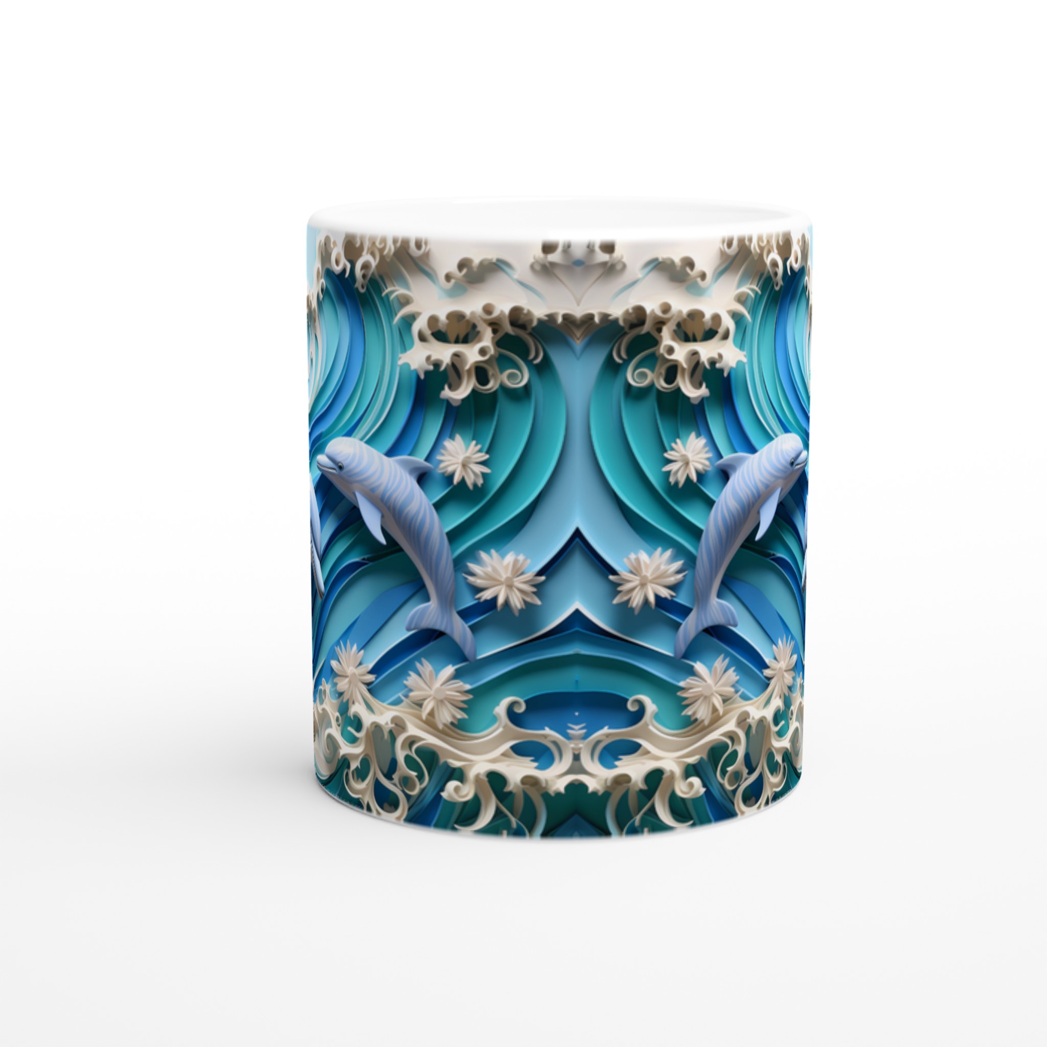 Låt dig svepas med av havets lugn med vår charmiga keramiska mugg, som fångar ögonblicket av lekfulla delfiner i turkosa, svallande vågor. Denna mugg är inte bara en behållare för din favor dryck, utan en liten konstverk som för med sig en känsla av lugn och glädje till din vardag. Med sina levande blåa nyanser och detaljerade design, blir den snabbt en favorit för alla som älskar havets magi.