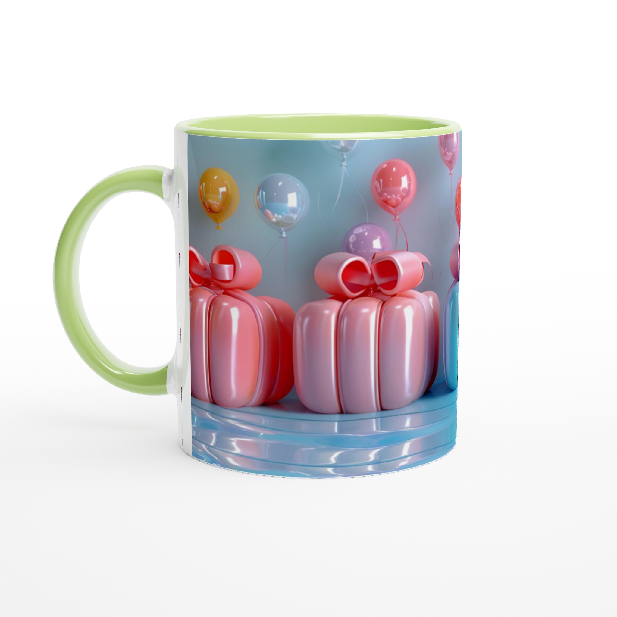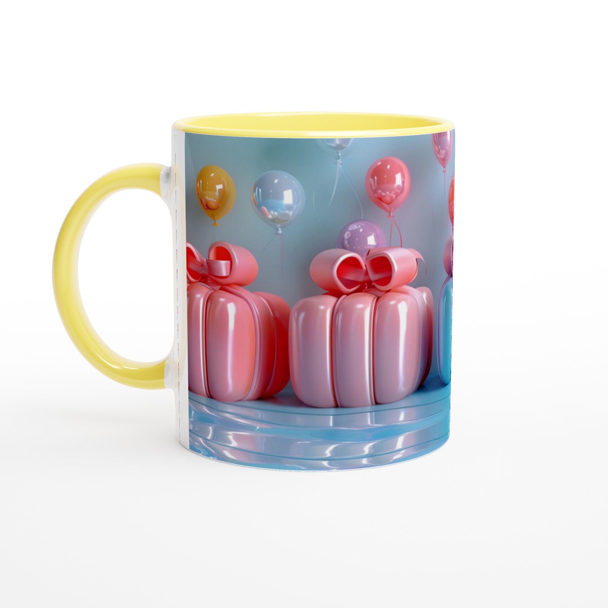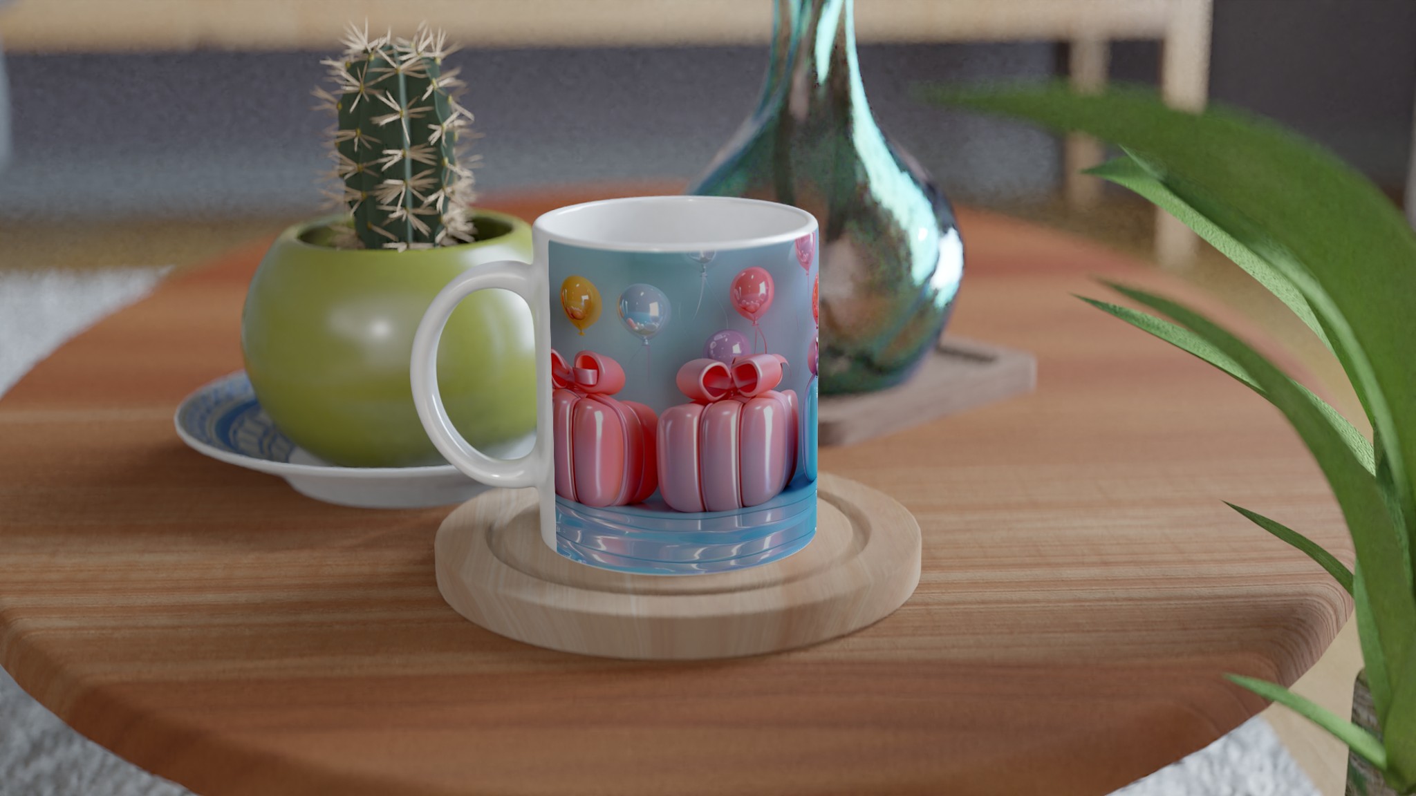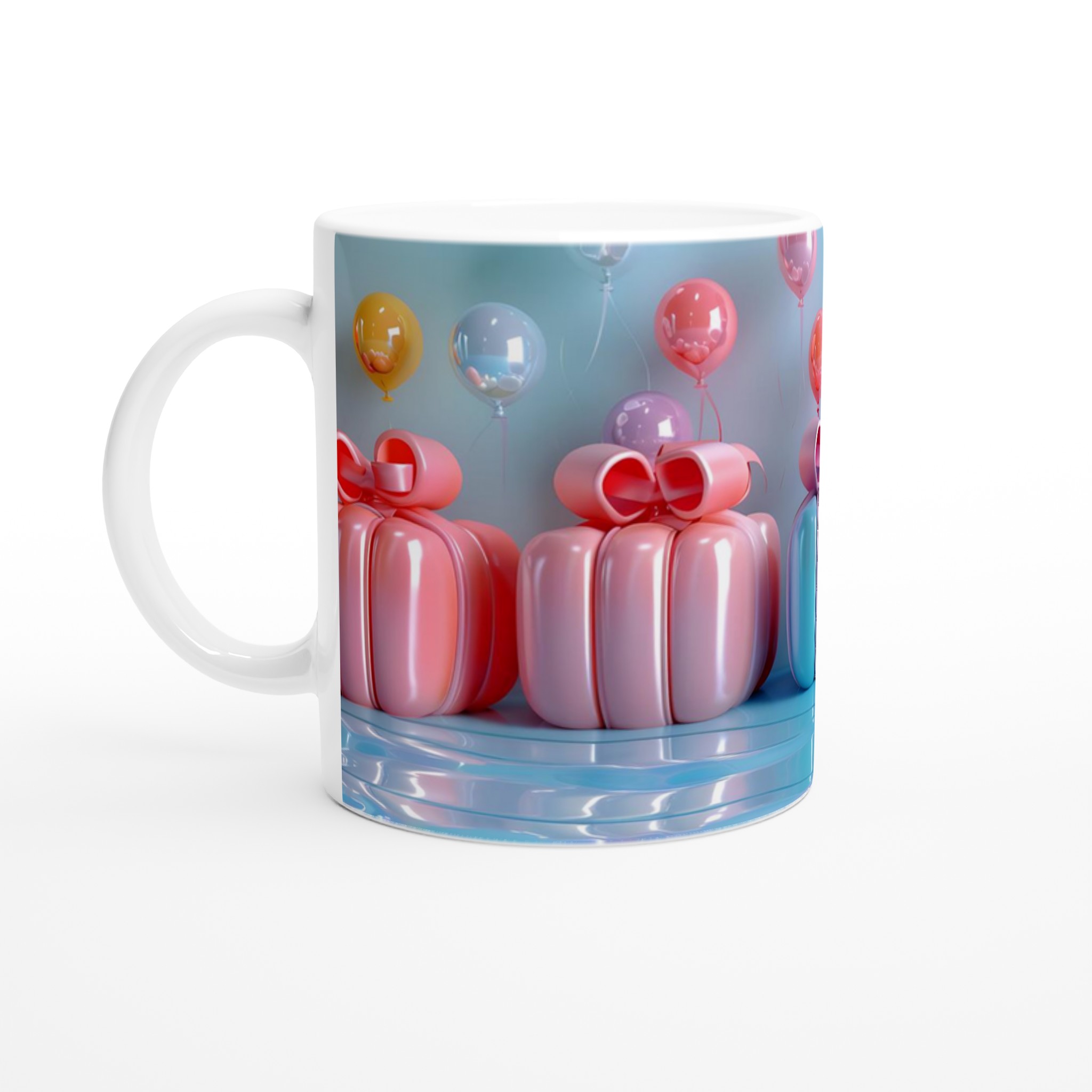 Överraska någon speciell eller unna dig själv den här förtrollande keramiska muggen, inspirerad av festliga presentaskar och glada ballonger. Med sin blanka yta och oemotståndliga charm är den mer än bara en mugg – den är en daglig påminnelse om glädje och firande. Välj bland en palett av livfulla färger som framhäver varje tryck med klara och levande toner, som håller sig fina även efter otaliga turer i mikron och diskmaskinen.