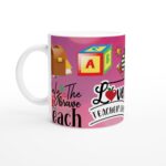 Fånga glädjen i #TeacherLife med denna unika keramiska mugg! Inspirerad av den livliga energin i klassrummet och de otaliga uppgifter en lärare jonglerar med, är denna mugg mer än bara ett dryckeskärl – det är en hyllning till engagemanget och passionen som driver lärare varje dag. Den är perfekt för morgonkaffet före första lektionen, en lugnande kopp te under rasten, eller en varm choklad efter en lång dag. Den blanka vita ytan framhäver de färgglada pennorna och de lekfulla skolrelaterade motiven med exceptionell klarhet, vilket garanterar att designen förblir levande och inspirerande även efter otaliga användningar.