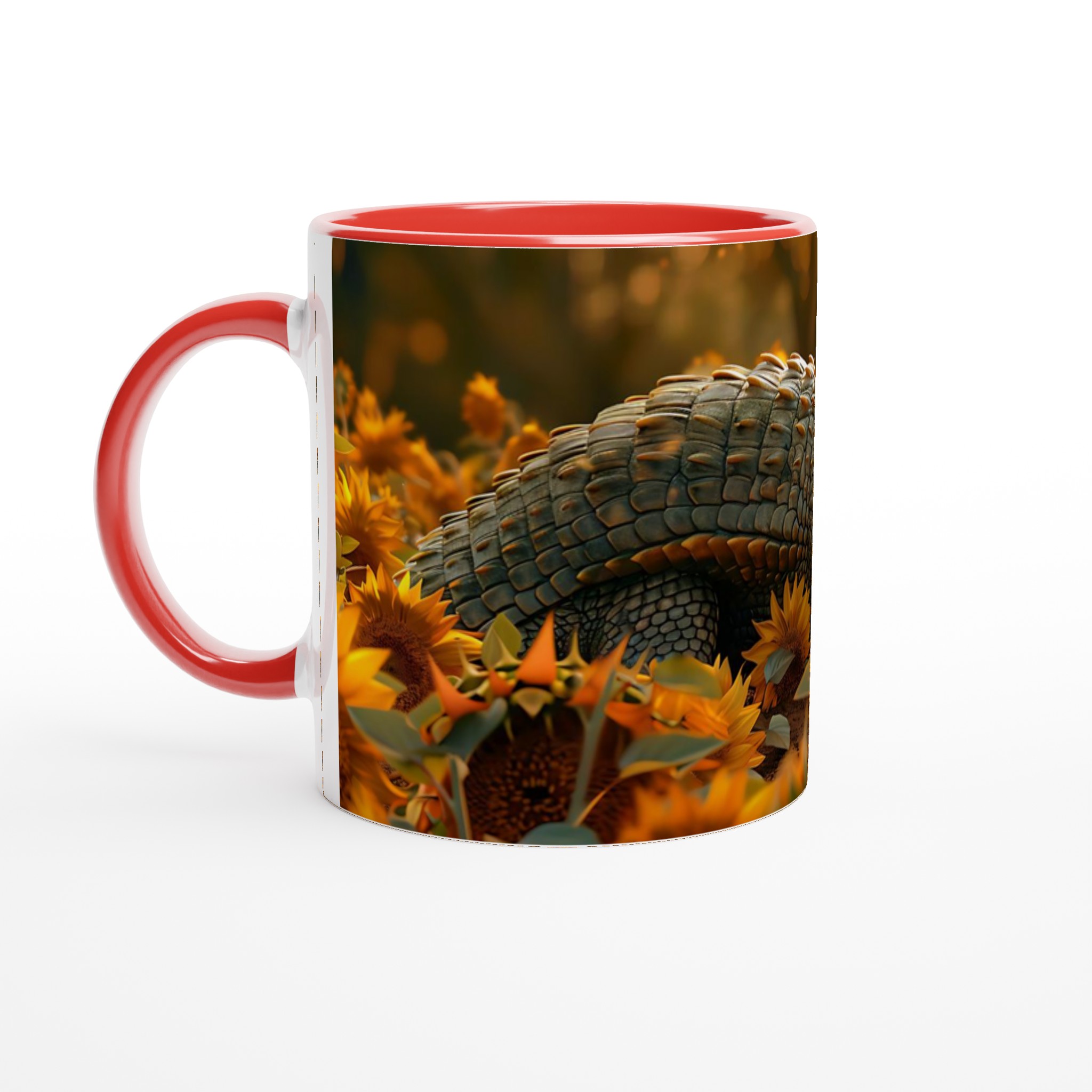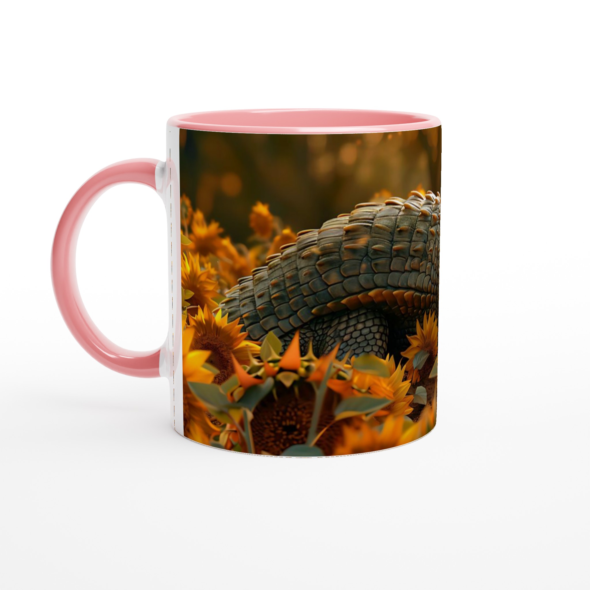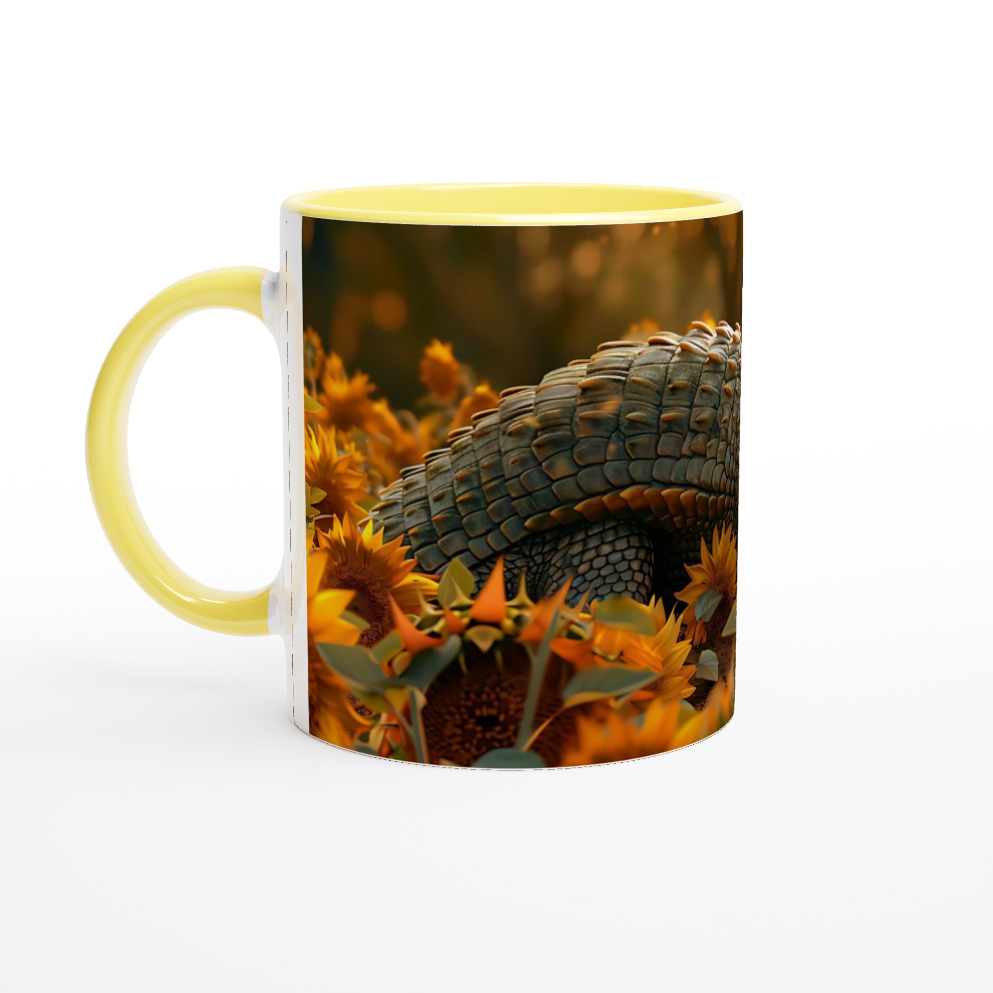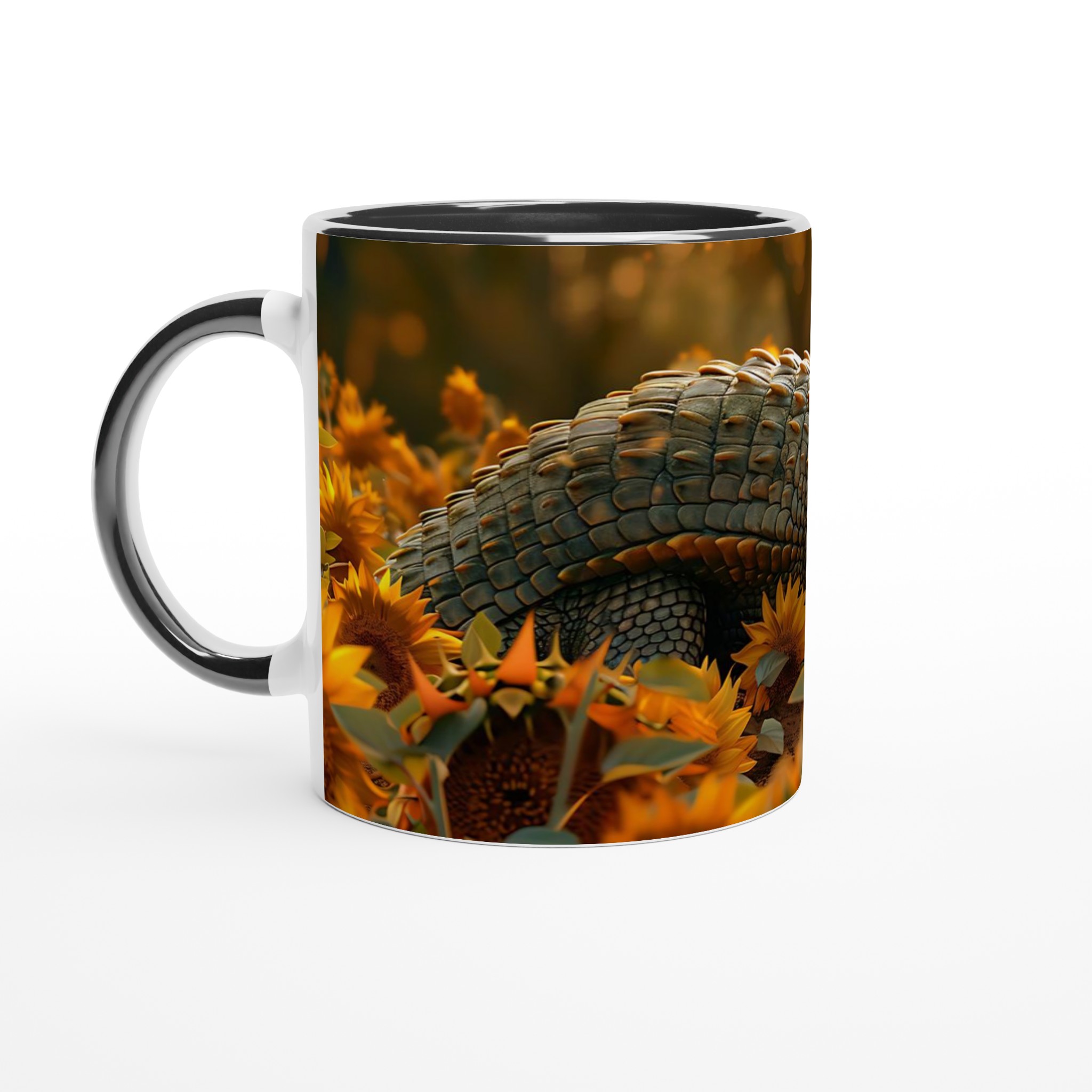 Låt dig förtrollas varje dag med vår charmiga keramiska mugg, som fångar den lugna och drömlika atmosfären av ett pansardjur vilande i ett gyllene solrosfält. Denna mugg blir snabbt en vardagsfavorit, perfekt för morgonkaffet, kvällens varma choklad eller när du bara vill njuta av en kopp te.