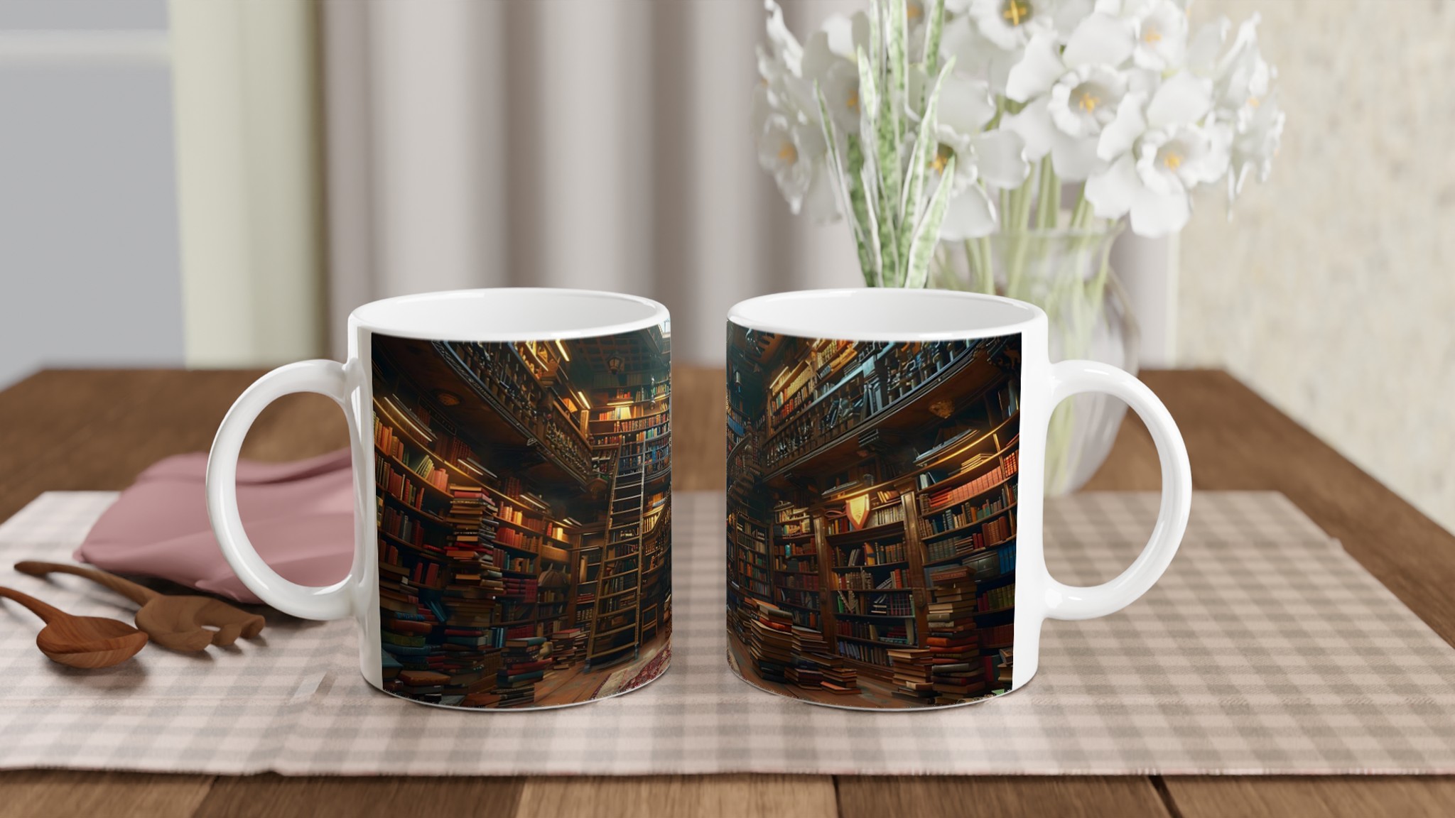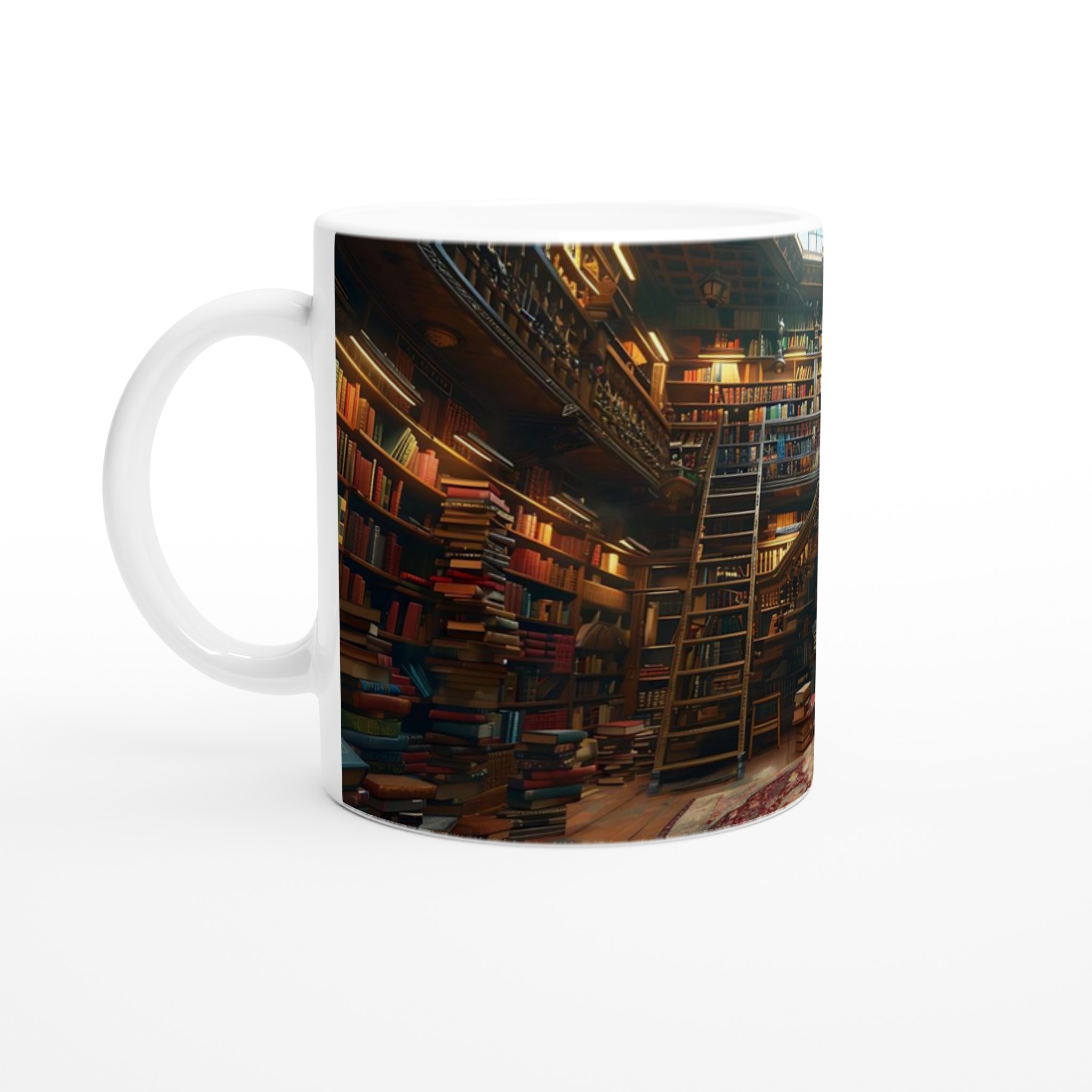 Föreställ dig att krypa upp med din favoritdryck i en magisk miljö, omgiven av berättelser och visdom. Denna Keramiska Mugg fångar den varma, inbjudande känslan av ett klassiskt bibliotek, där varje kopp blir en stund för eftertanke och njutning. Med sin tidlösa design och det inspirerande trycket blir den snabbt en vardagsfavorit – perfekt för morgonkaffet, kvällens varma choklad eller när du bara vill njuta av en kopp te.
