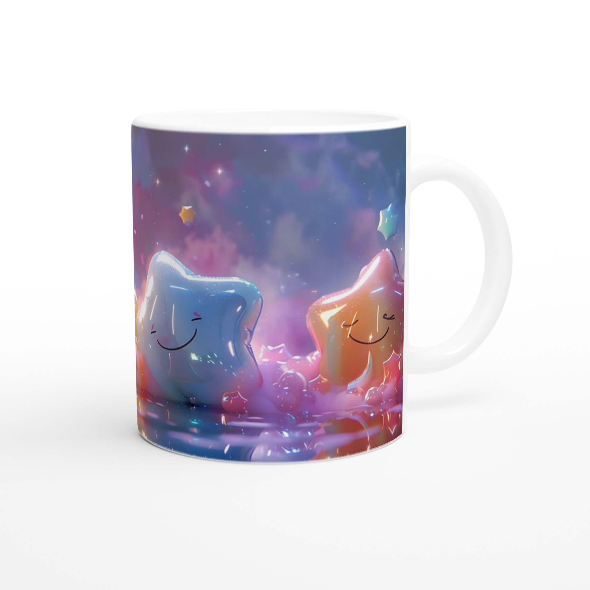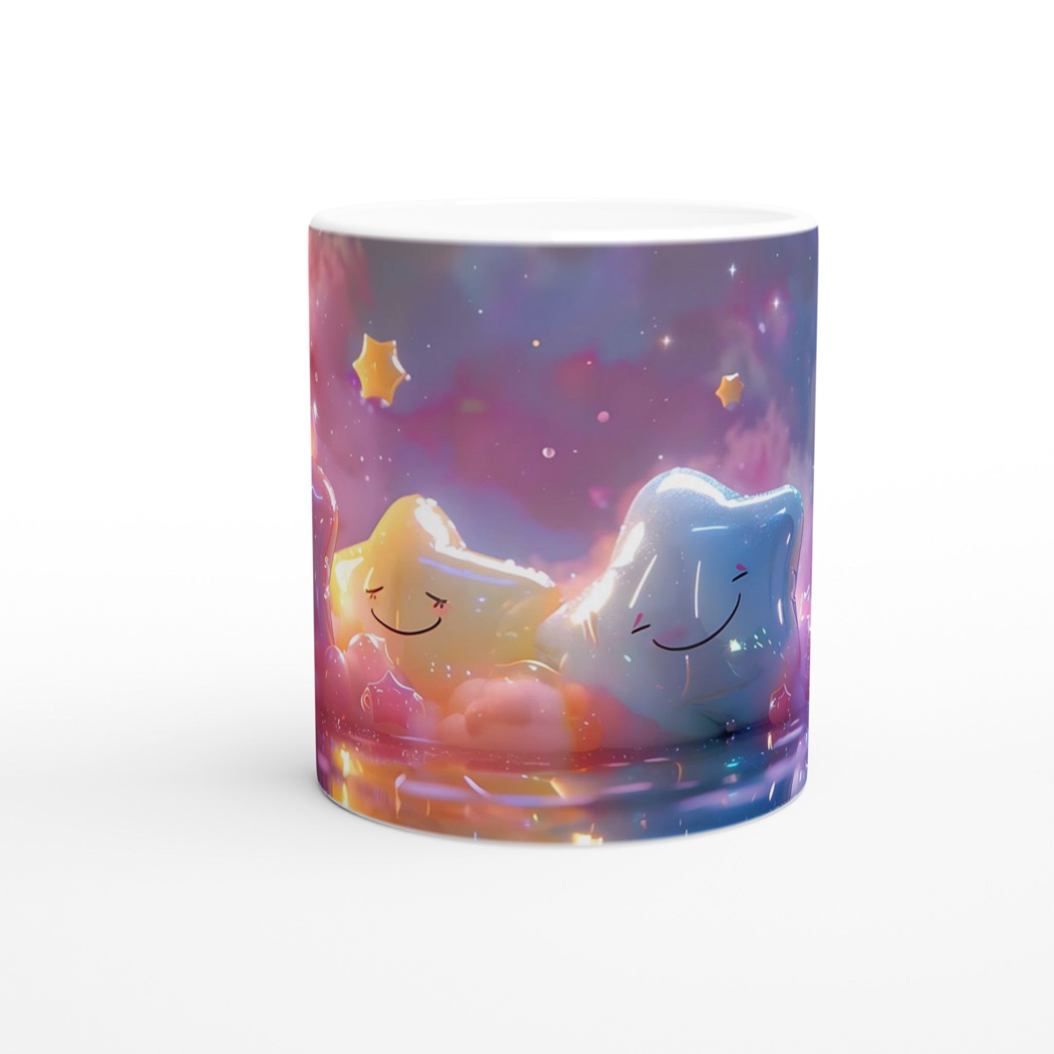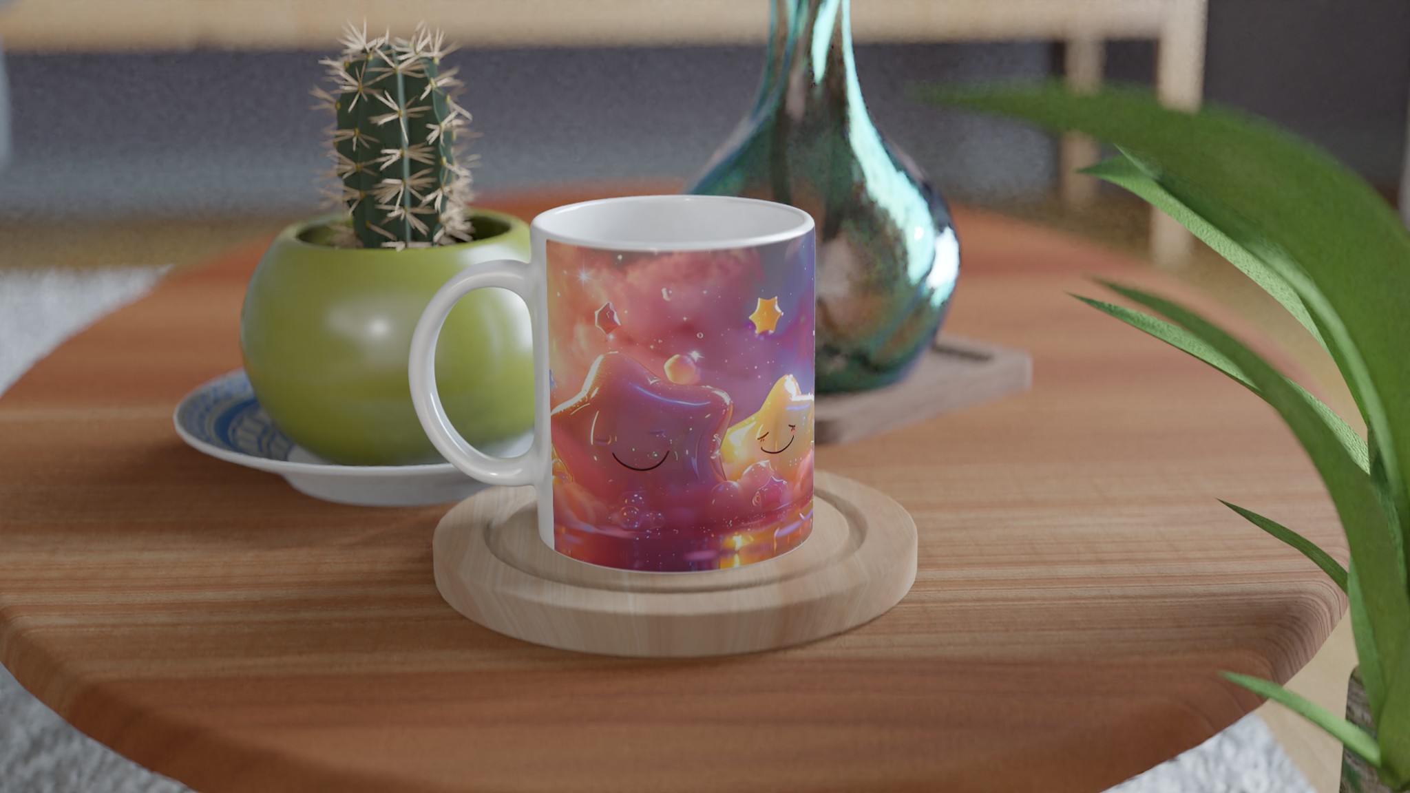 Låt varje klunk bli en resa till en magisk stjärnhimmel med vår underbara keramiska mugg! Med en design inspirerad av drömmiga moln, glittrande stjärnor och lekfulla, leende stjärnfigurer i mjuka pastellfärger, blir den här muggen inte bara en vardagsfavorit – den blir en liten bit lycka i din hand. Perfekt för morgonkaffet, kvällens varma choklad eller när du bara vill njuta av en kopp te och drömma dig bort.
