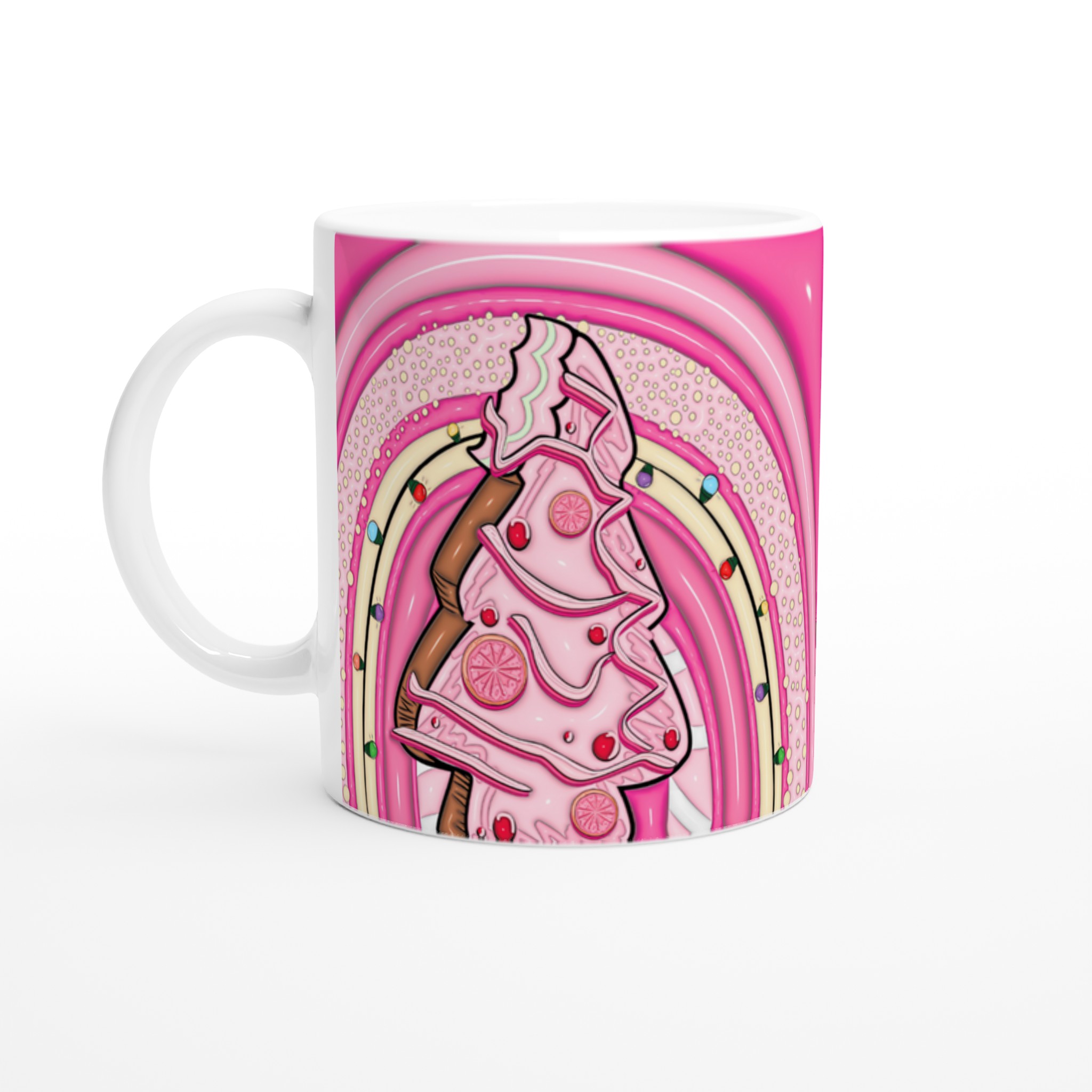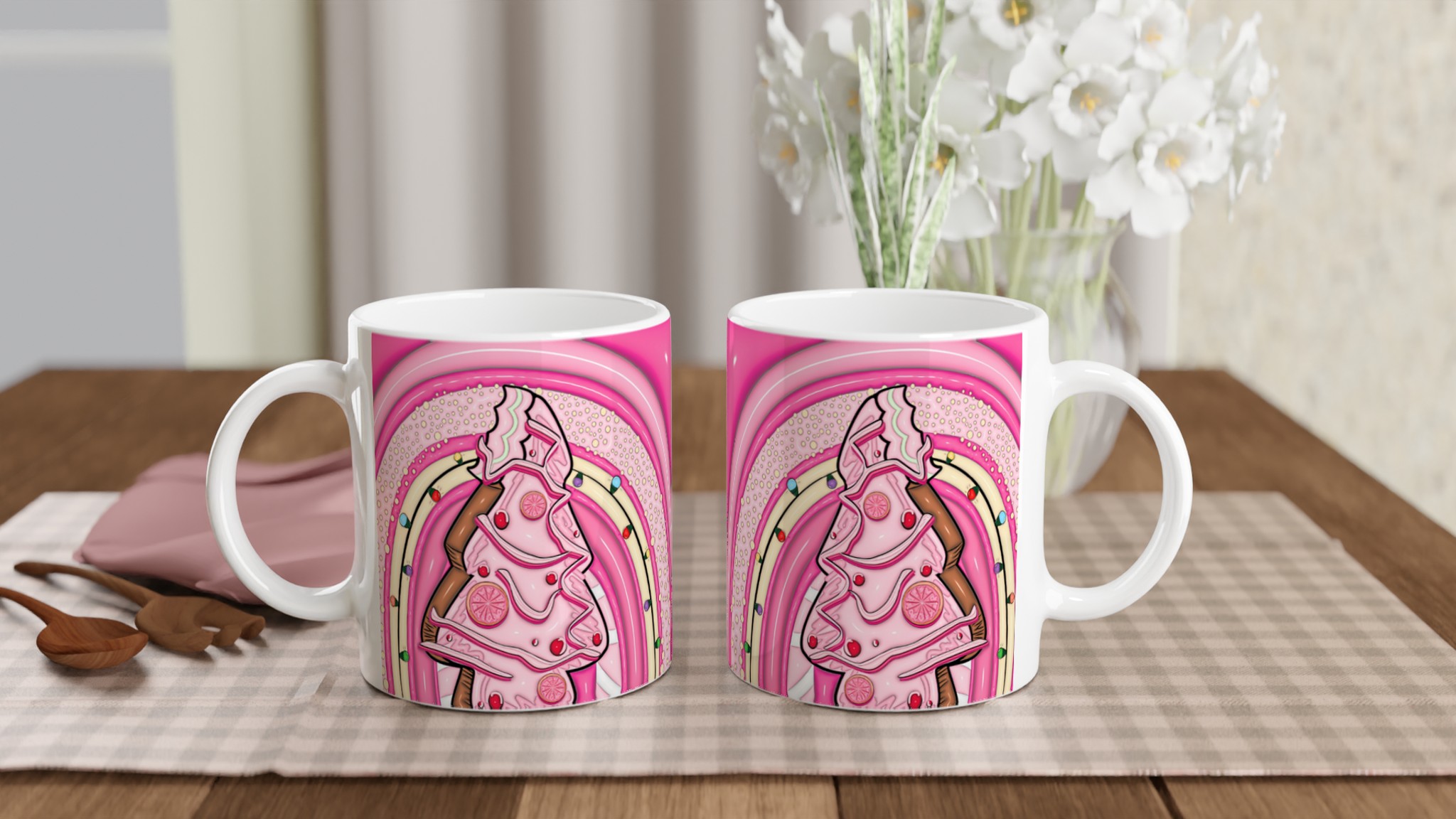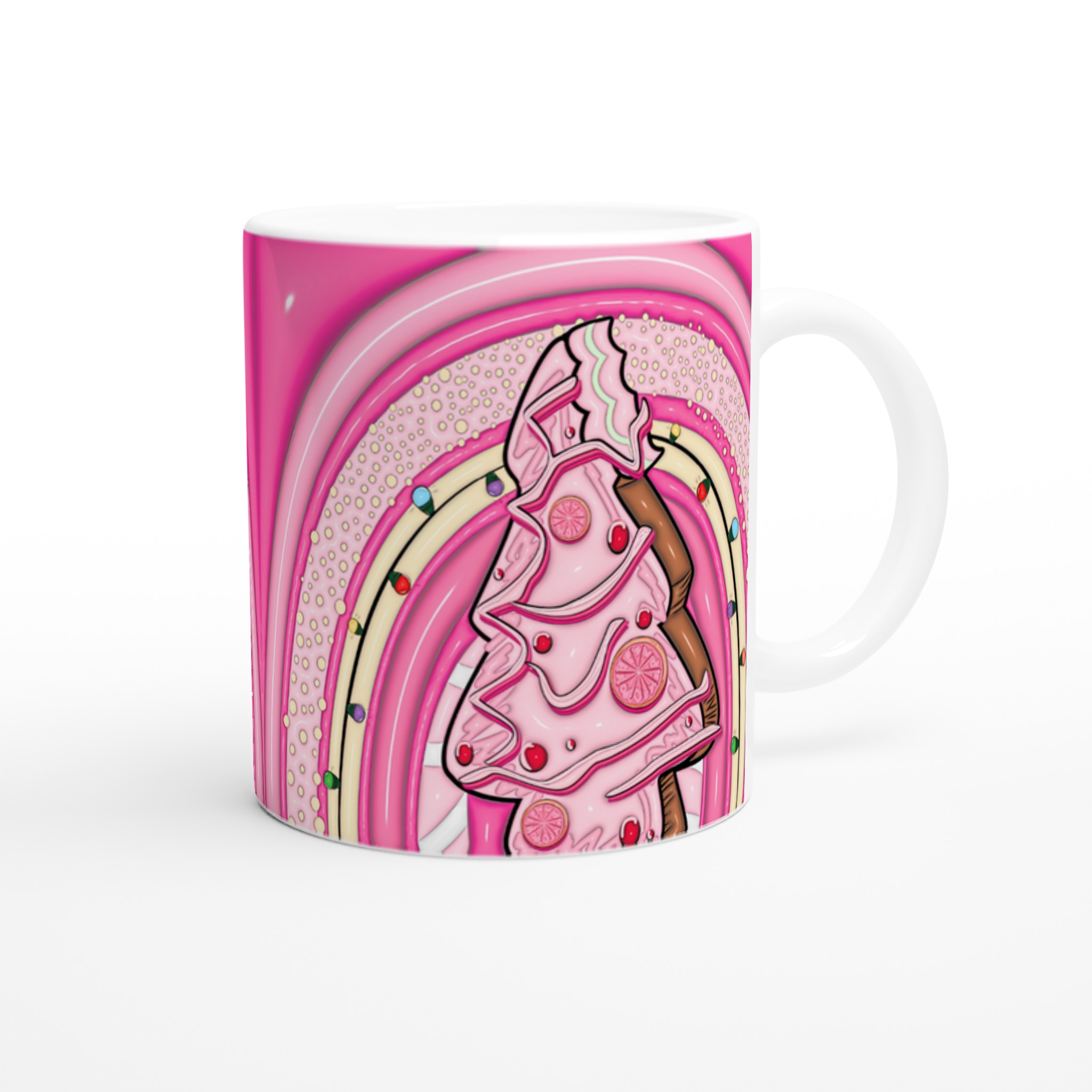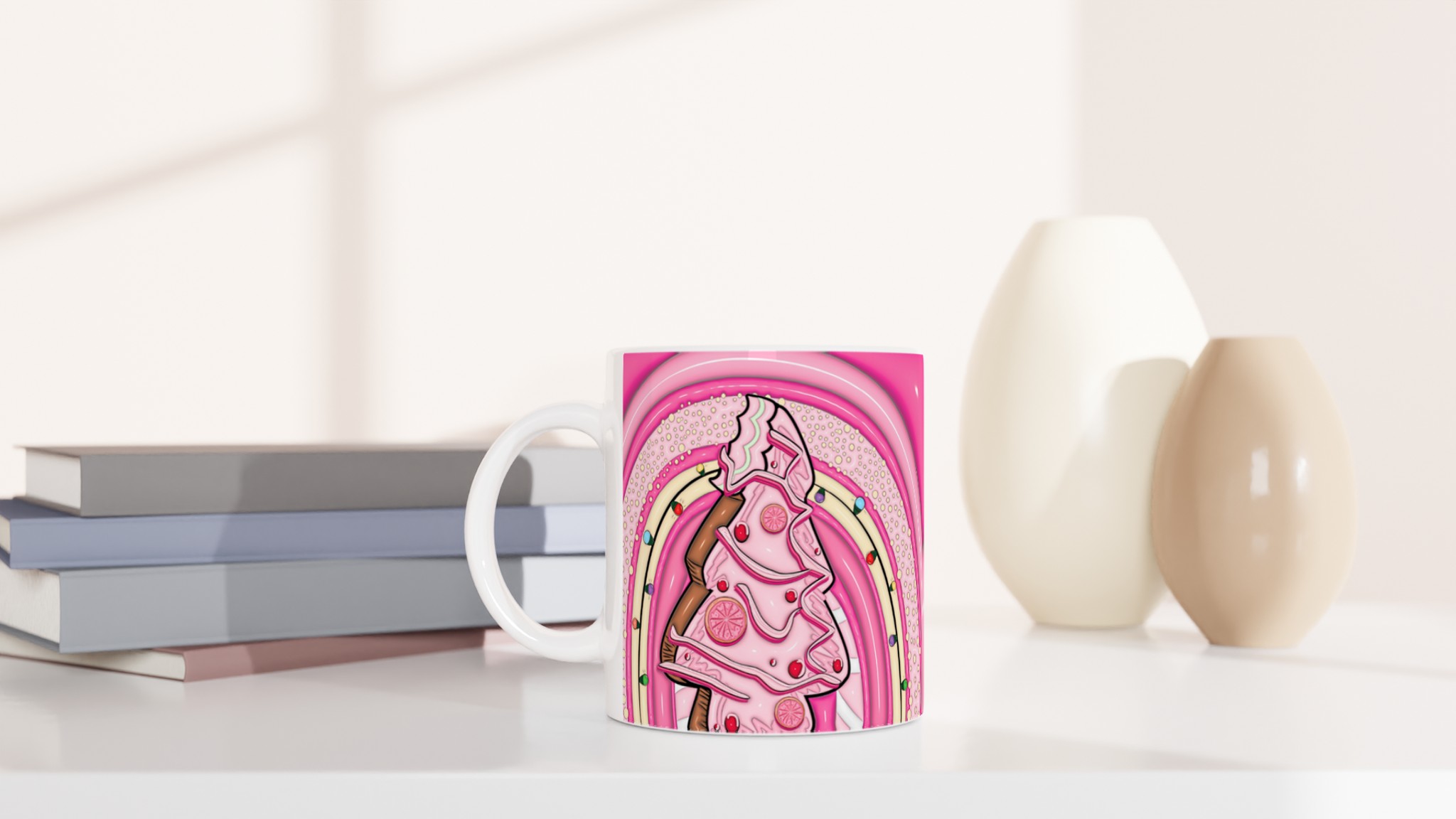 Kliva in i en värld av sötma och festlig charm med denna drömska keramiska mugg! Prydd med en underbar, godisinspirerad julgran i mjuka rosa nyanser och lekfulla detaljer, blir den snabbt en vardagsfavorit. Perfekt för morgonkaffet, kvällens varma choklad eller när du bara vill njuta av en kopp te – den här muggen tillför en touch av magi till varje stund. Den blanka vita ytan gör att trycken framhävs med klara och levande färger, som håller sig fina även efter många turer i mikron och diskmaskinen.