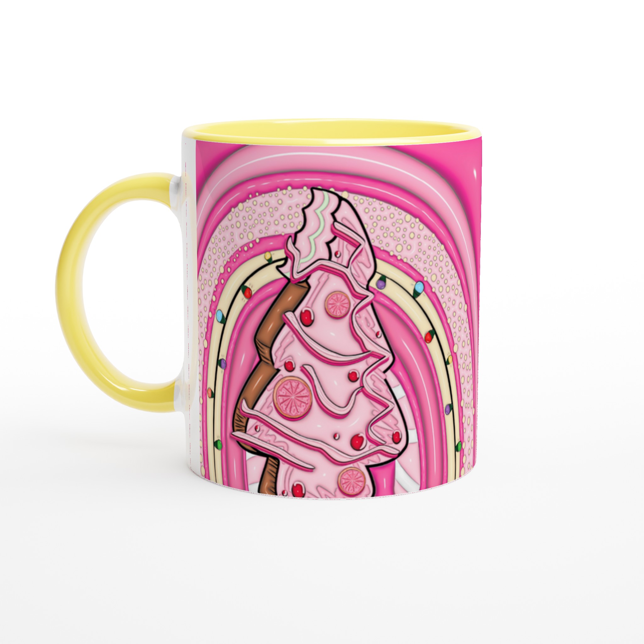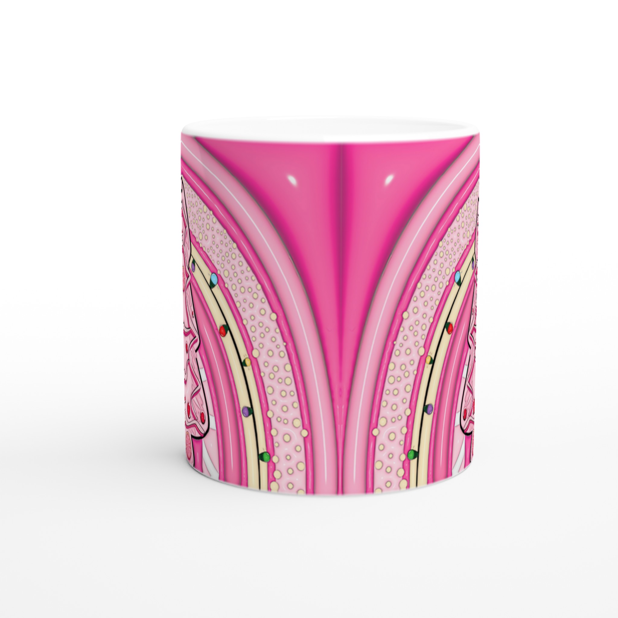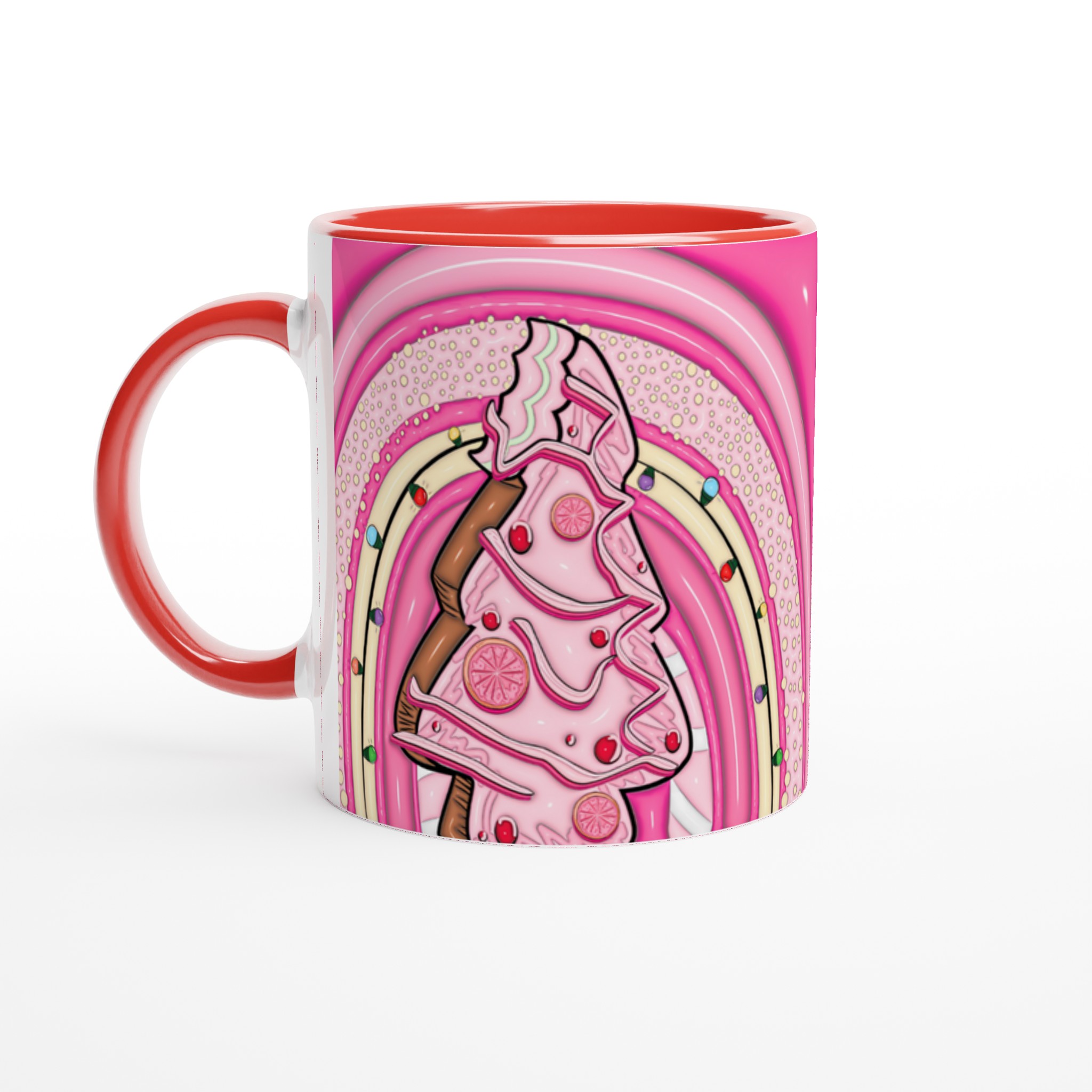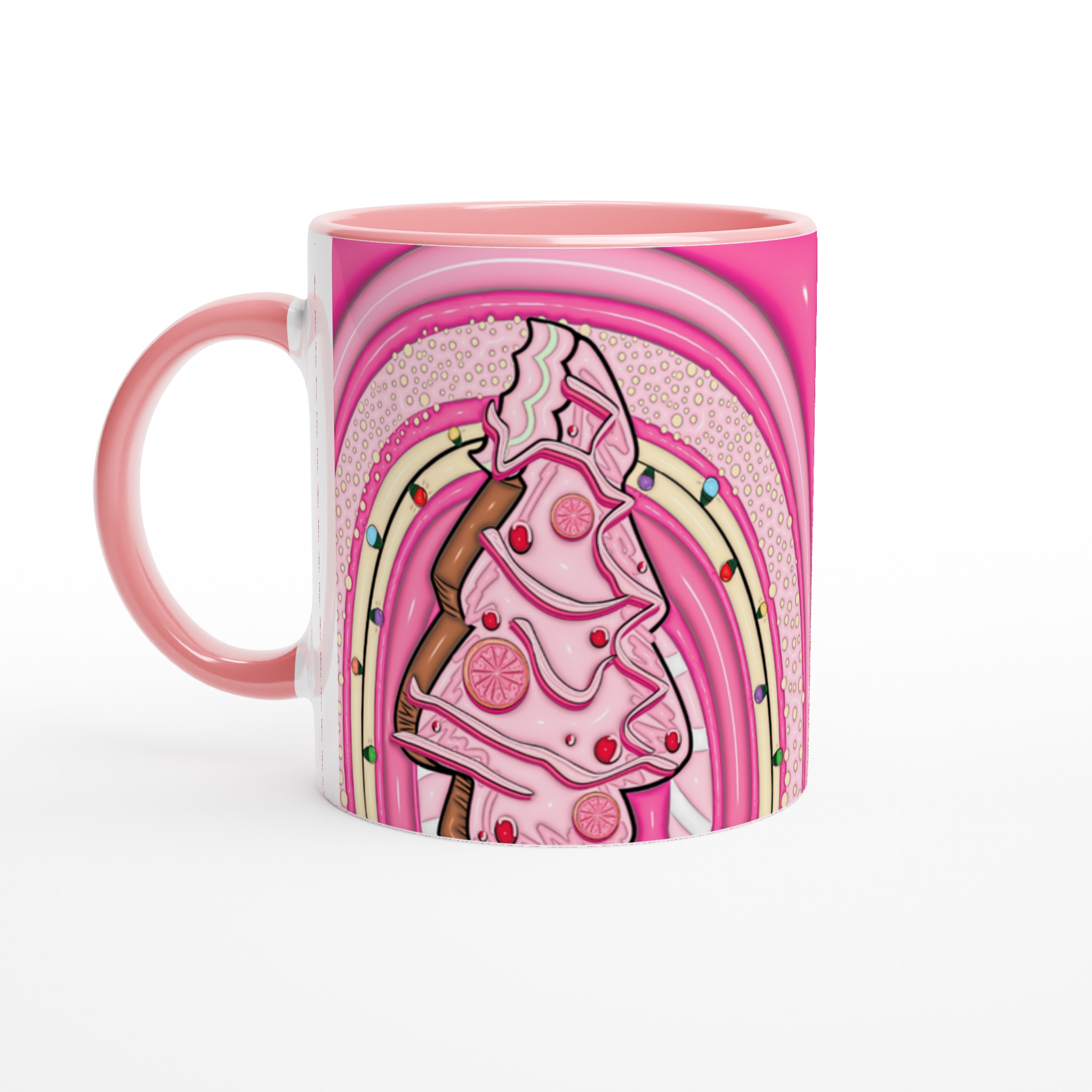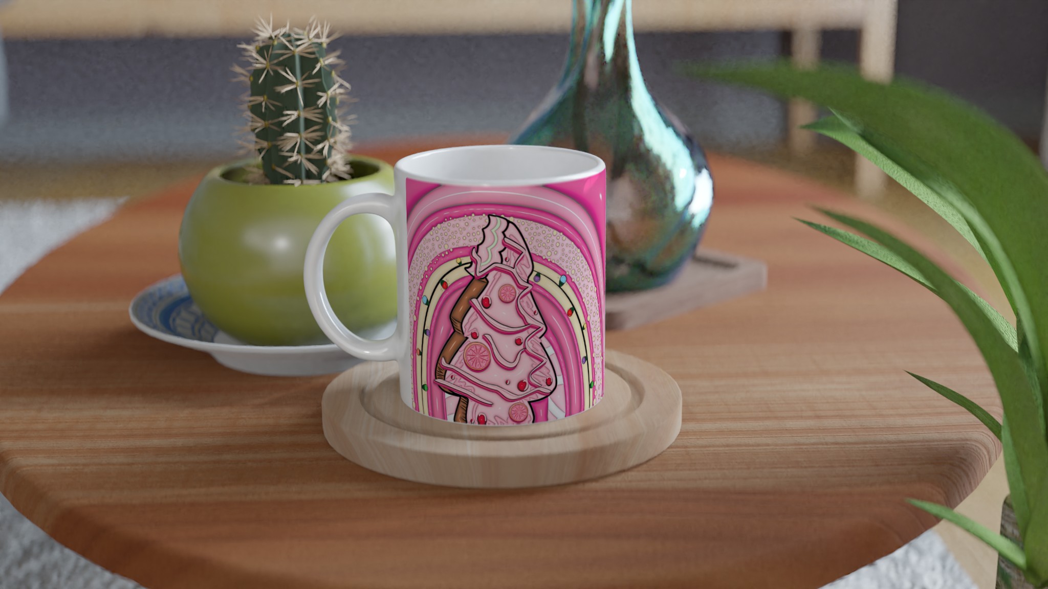 Kliva in i en värld av sötma och festlig charm med denna drömska keramiska mugg! Prydd med en underbar, godisinspirerad julgran i mjuka rosa nyanser och lekfulla detaljer, blir den snabbt en vardagsfavorit. Perfekt för morgonkaffet, kvällens varma choklad eller när du bara vill njuta av en kopp te – den här muggen tillför en touch av magi till varje stund. Den blanka vita ytan gör att trycken framhävs med klara och levande färger, som håller sig fina även efter många turer i mikron och diskmaskinen.