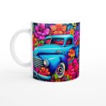 Låt varje klunk bli en konstupplevelse med denna drömska keramiska mugg. Med sitt levande akvarellinspirerade blomstermotiv, badat i fuchsia, lila och turkosblå toner som tycks smälta och flöda, blir den här muggen snabbt en vardagsfavorit. Perfekt för morgonkaffet, kvällens varma choklad eller när du bara vill njuta av en kopp te. Den blanka vita ytan framhäver tryckets klara och levande färger, som håller sig fina även efter många turer i mikron och diskmaskinen.