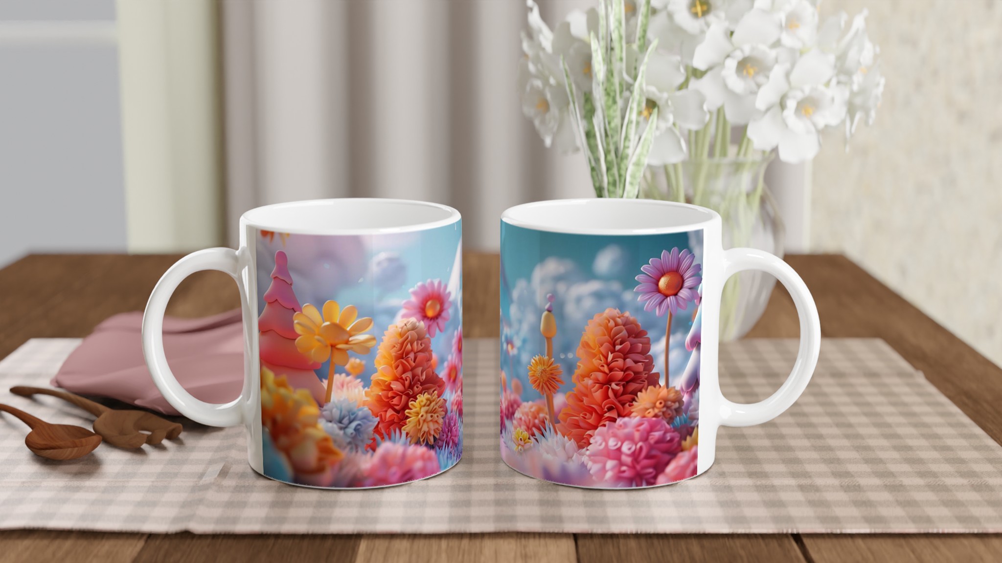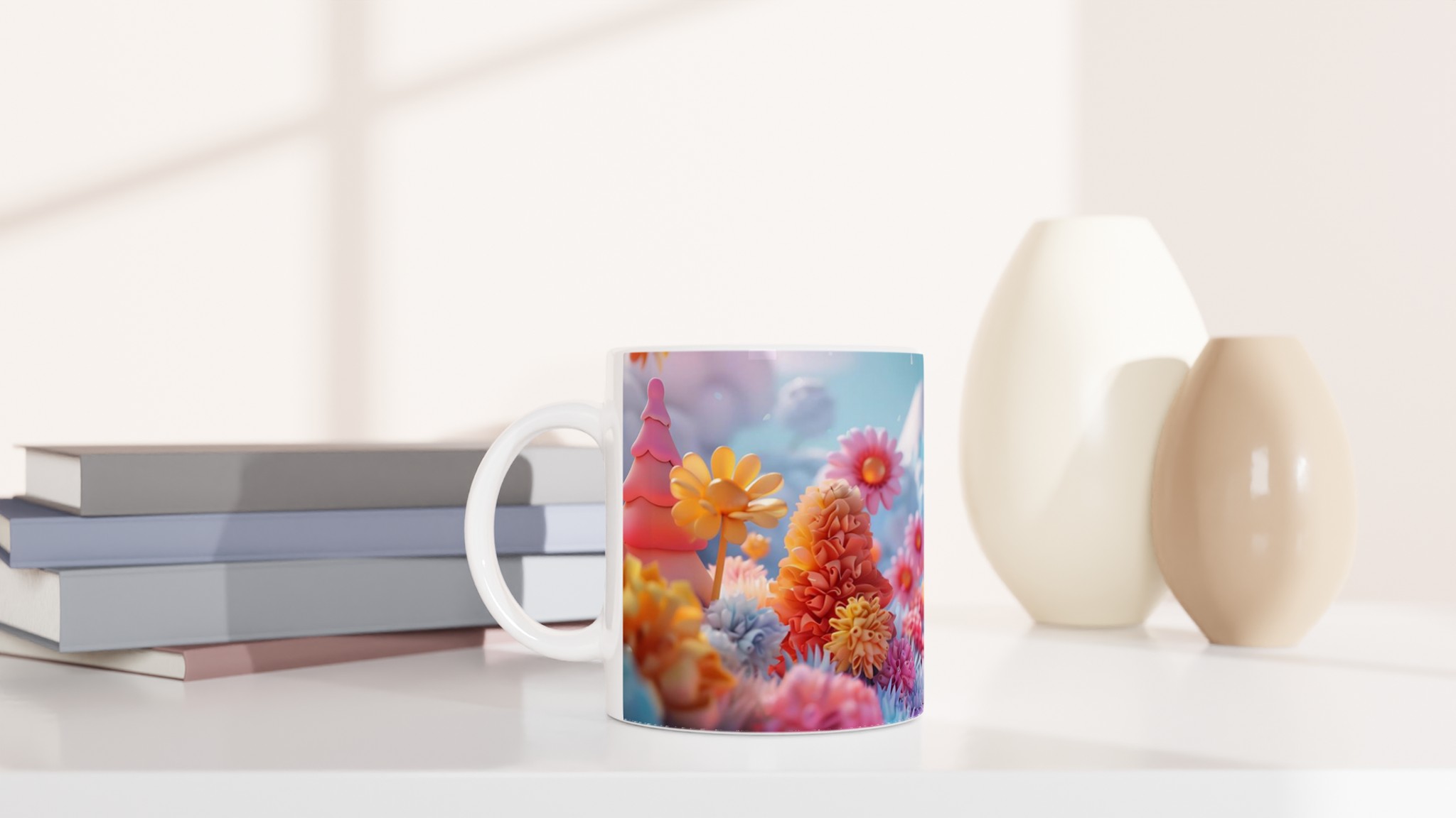 Väck din inre glädje med vår Keramiska Mugg – Drömsk Blomsteräng. Inspirerad av en lekfull värld av mjuka pasteller och fantasifulla blommor, blir denna mugg snabbt en vardagsfavorit. Perfekt för morgonkaffet, kvällens varma choklad eller när du bara vill njuta av en kopp te i en värld av lugn och harmoni.